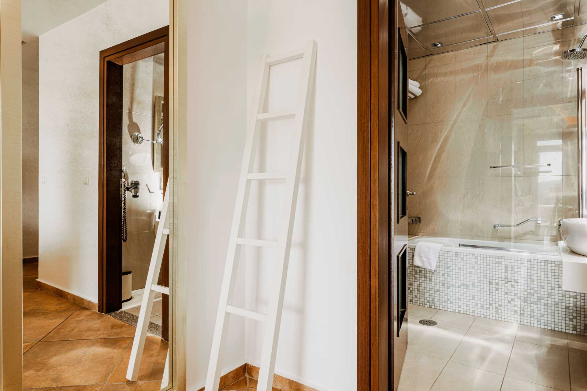 Juniorsvit med balkong. En dubbelsäng eller två enkelsängar. Möjlighet till extrabädd i bäddsoffa. Wifi, luftkonditionering och deponering ingår. I juniorsviterna finns en eldstad. Kylskåp. Vattenkokare. Kaffemaskin. Brödrost. Tv med internationella kanaler. Badrockar och tofflor. Hårtork. Badrum med badkar eller dusch samt wc. Städning 7 ggr/vecka.