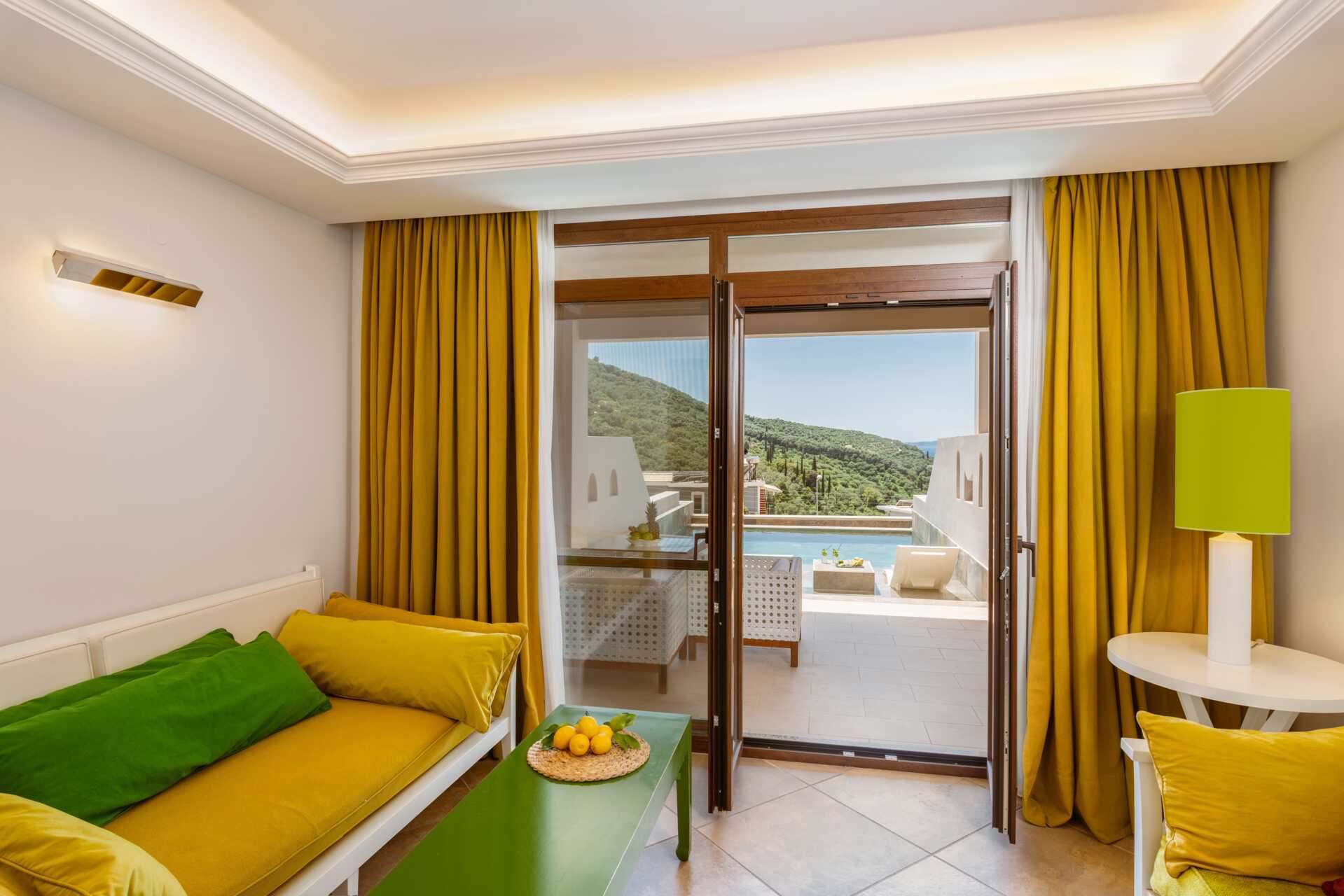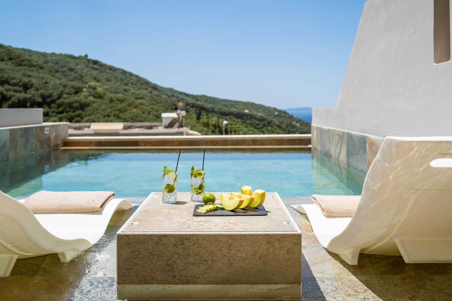 Superiorsvit med markterrass och privat pool. En dubbelsäng. Möjlighet till extrabädd i bäddsoffa. Wifi, luftkonditionering och deponering ingår. Kylskåp. Vattenkokare. Kaffemaskin. Brödrost. Tv med internationella kanaler. Badrockar och tofflor. Hårtork. Badrum med badkar eller dusch samt wc. Städning 7 ggr/vecka.