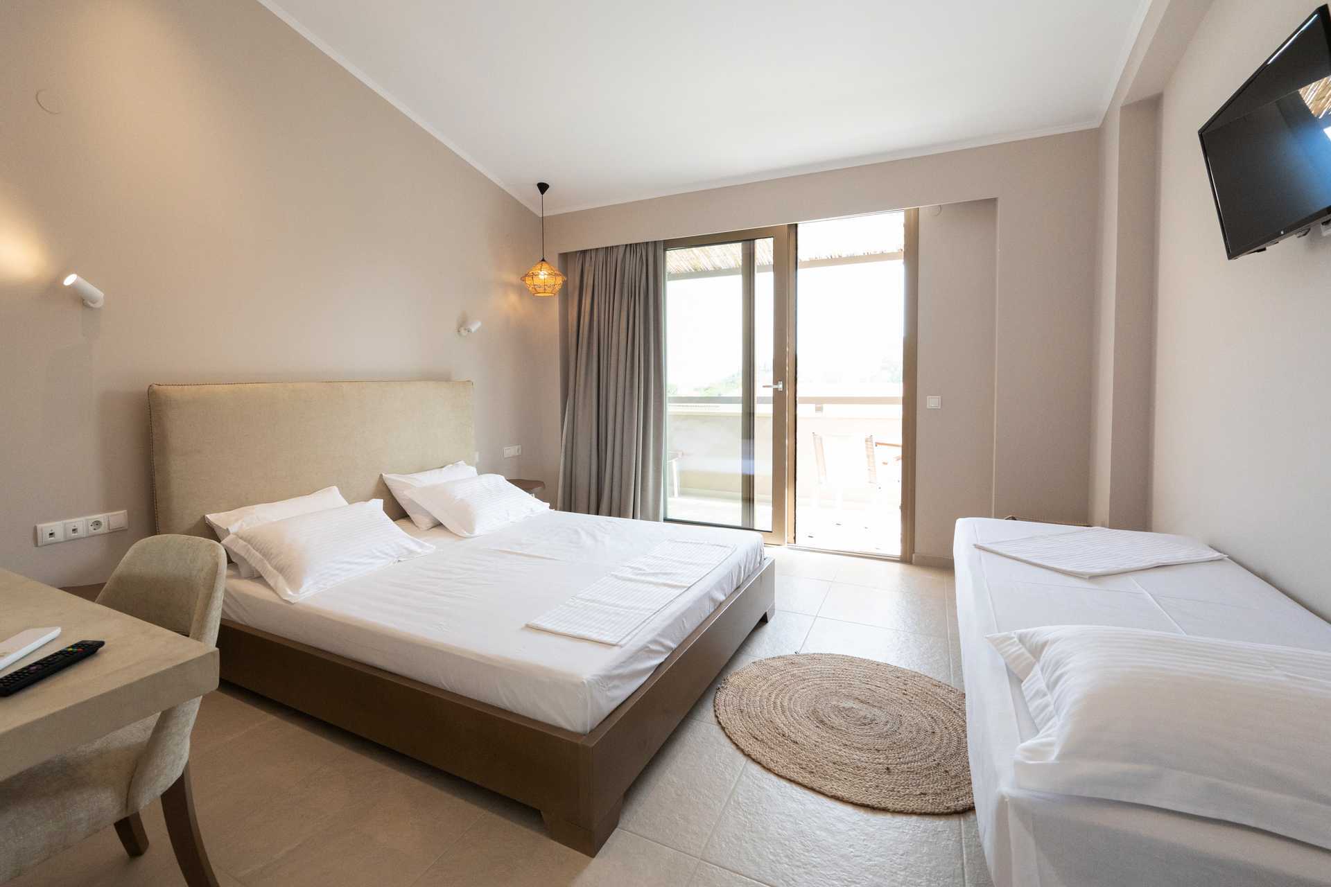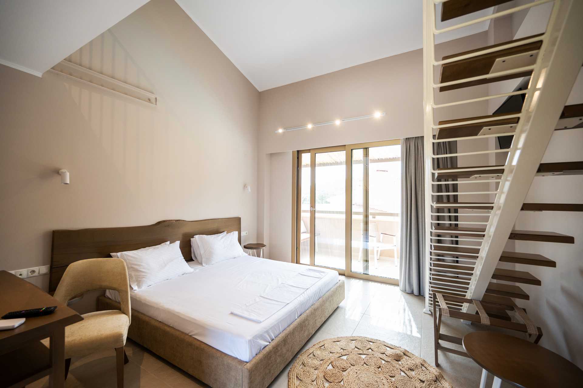 Superiorrum med balkong eller terrass. Rummen ligger i en byggnad som byggdes till sommaren 2025. En dubbelsäng. Wifi, luftkonditionering och deponering ingår. Kylskåp. Vattenkokare med kaffe och te. Tv med internationella kanaler. Bluetooth-högtalare. Strykjärn och strykbräda. Badrockar och tofflor. Hårtork. Badrum med dusch och wc. Städning 7 ggr/vecka.