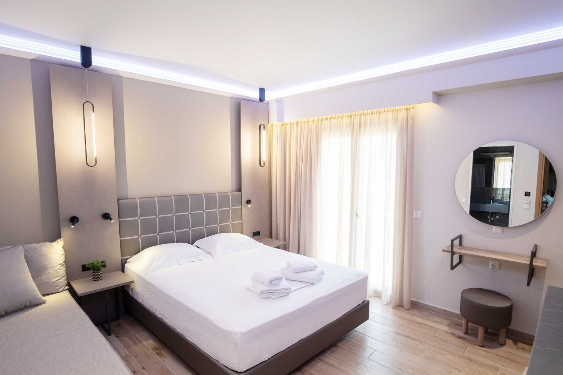 Renoverade dubbelrum med balkong. En dubbelsäng. Möjlighet till extrabädd i bäddsoffa/dagbädd. Wifi och luftkonditionering ingår. Kylskåp, vattenkokare, kaffebryggare och smörgåsgrill. Tv med lokala kanaler. Hårtork. Badrum med dusch och wc. Städning 7 ggr/vecka.
