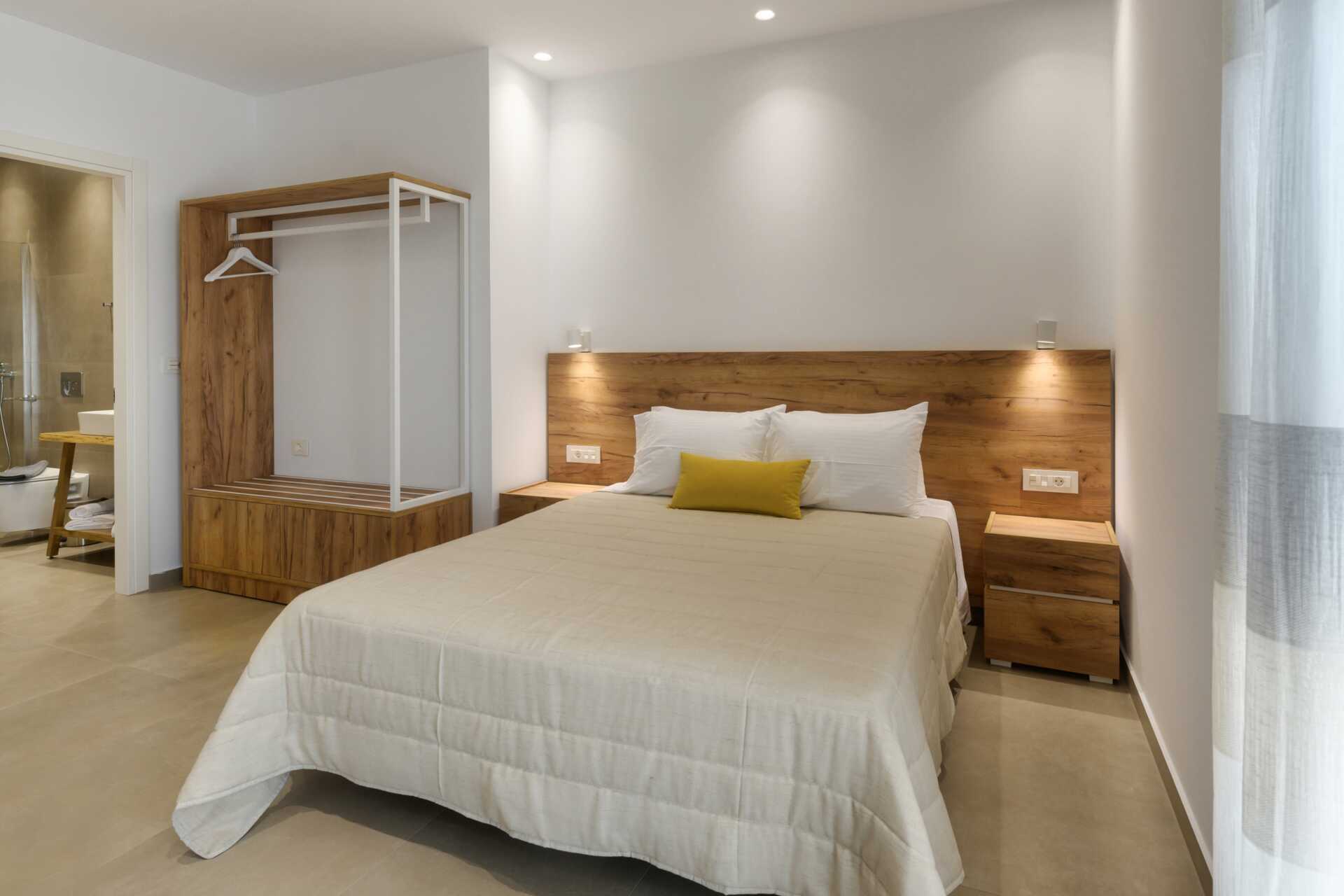 Enrumslägenhet superior med balkong. Sovrum kombinerat med minikök. En dubbelsäng. Möjlighet till extrabädd i bäddsoffa. Minikök med kokplattor, ugn, kylskåp, kaffebryggare, vattenkokare, Espresso kaffemaskin - kapslar ingår och enkel köksutrustning. Wifi, luftkonditionering och deponering ingår. Tv med internationella kanaler. Badrockar och tofflor. Hårtork. Badrum med dusch och wc. Städning 6 ggr/vecka.