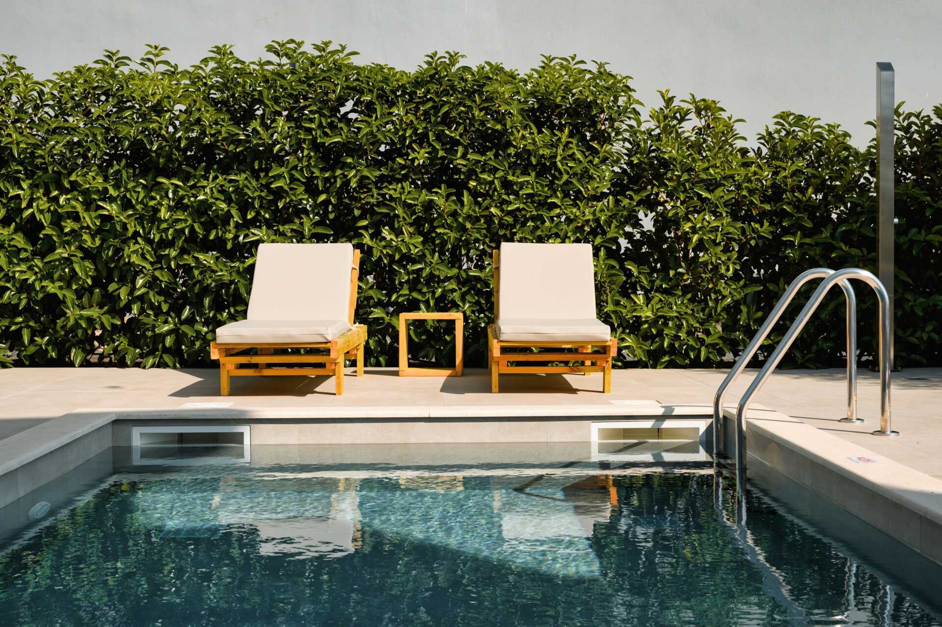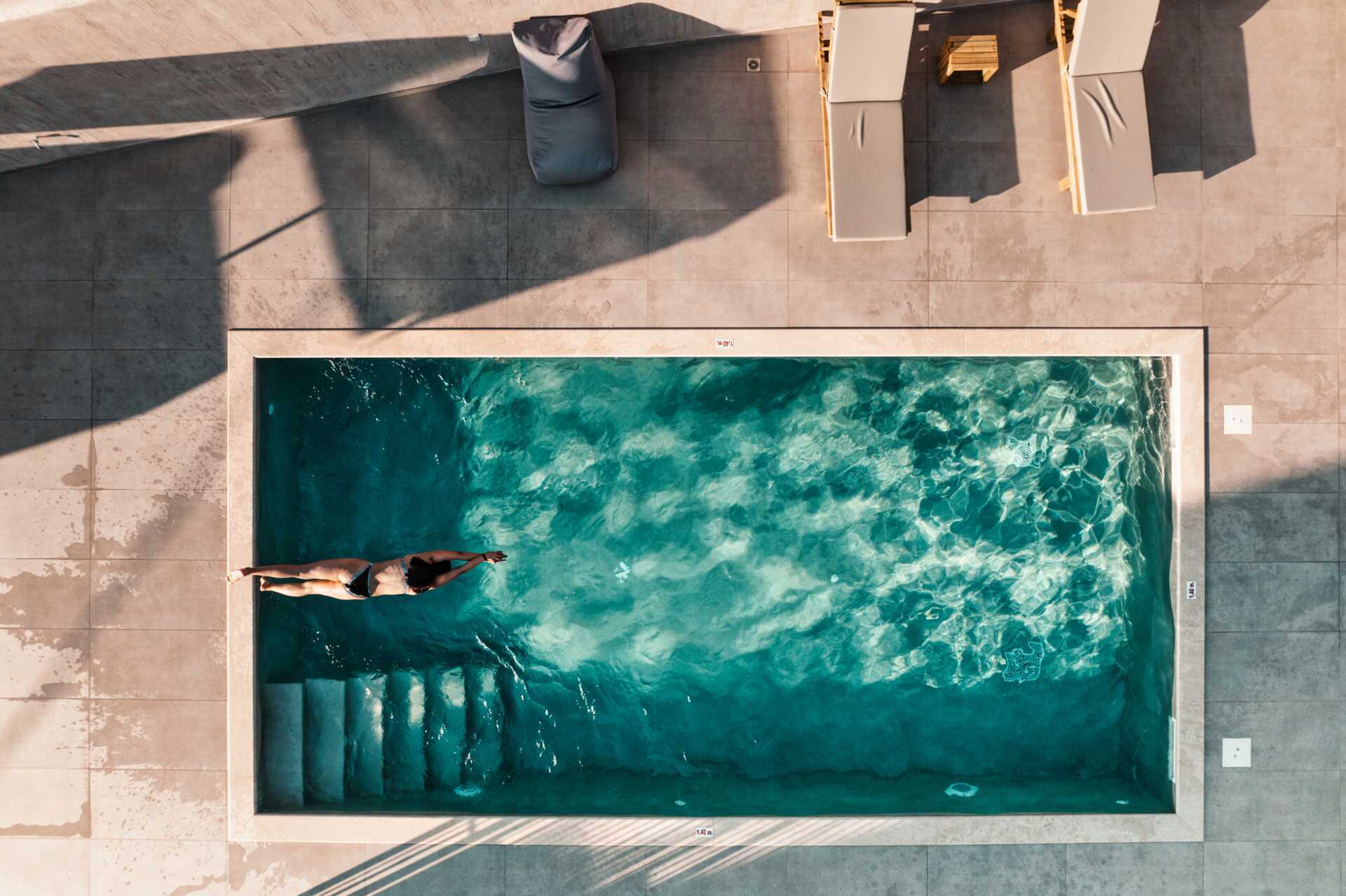 Enrumslägenhet med en stor markterrass med en privat pool. Runt poolen finns solstolar, en matplats med tak och poolen har saltvatten. Sovrum och kombinerat med minikök i öppen planlösning. En dubbelsäng. Möjlighet till extrabädd i bäddbar soffa. Minikök med kokplattor, ugn, kylskåp, Espresso kaffemaskin - kapslar ingår och enkel köksutrustning. Wifi, luftkonditionering och deponering ingår. Tv med internationella kanaler. Badrockar och tofflor. Hårtork. Badrum med dusch och wc. Städning 6 ggr/vecka.