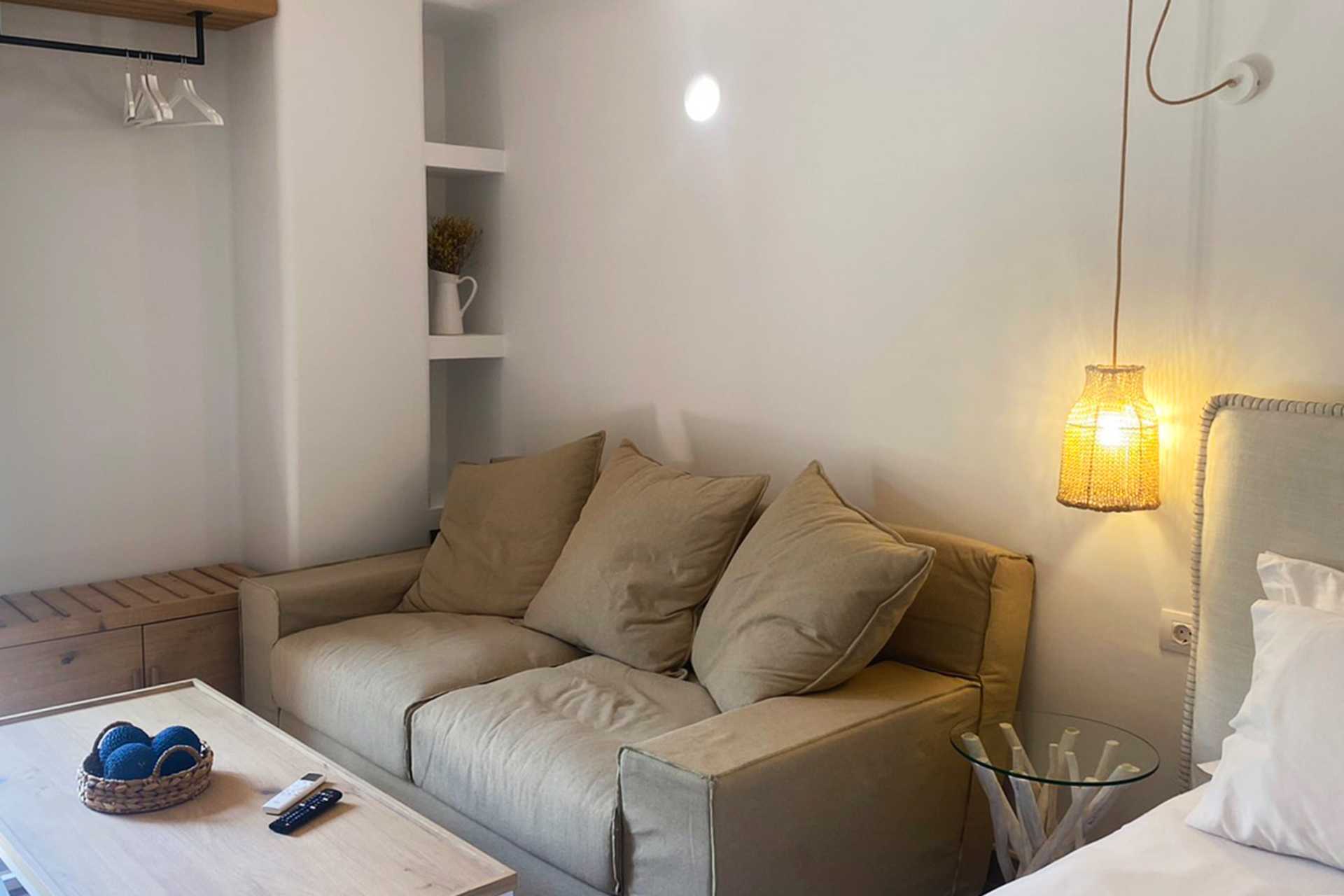 Svit med balkong eller terrass. Kombinerat sovrum och minikök. En dubbelsäng. Wifi, luftkonditionering och deponering ingår. Minikök med kylskåp, vattenkokare samt kaffe och te, Nespresso kaffemaskin, kaffebryggare, kokplatta och mikrovågsugn. Tv med internationella kanaler. Strykjärn och strykbräda. Badrockar och tofflor. Hårtork. Badrum med dusch och wc. Städning 5 ggr/vecka.