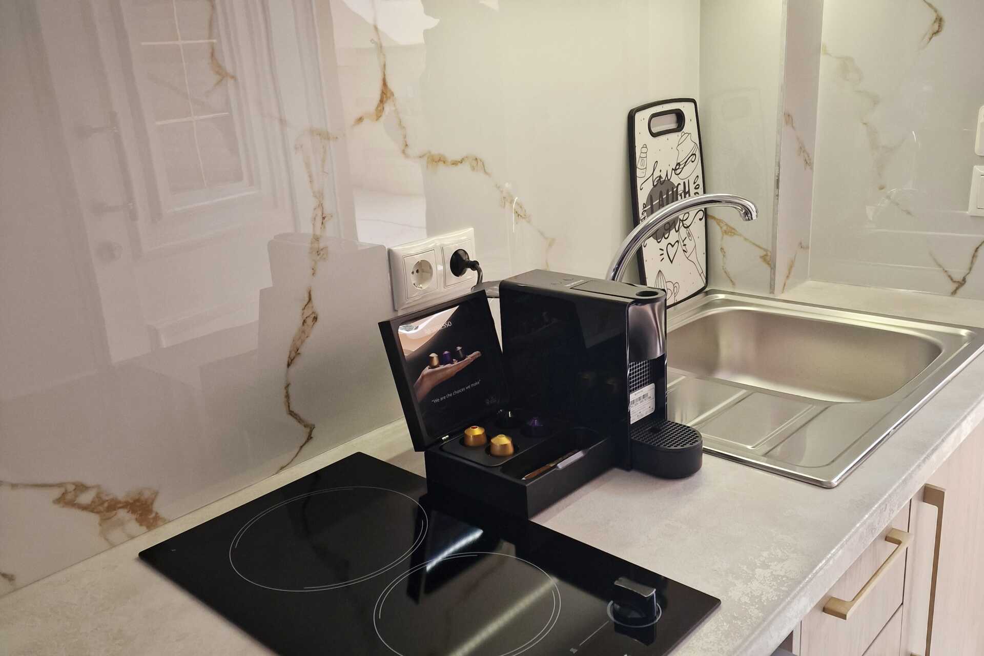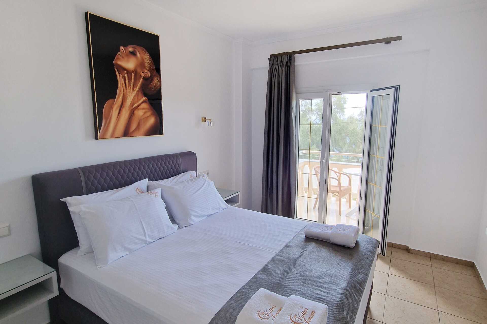 Enrumslägenhet deluxe med balkong eller markbalkong. Lägenheterna renoverades under 2023 och är olika stora. Kombinerat sovrum med minikök. En dubbelsäng eller två enkelsängar. Möjlighet till extrabädd i enkelsäng. Minikök med kylskåp, vattenkokare, kaffebryggare, Nespressomaskin - kapslar mot avgift samt enkel köksutrustning. Wifi ingår. Luftkonditionering och deponering mot avgift. Tv med internationella kanaler. Hårtork. Badrum med dusch och wc. Städning 7 ggr/veckan.
