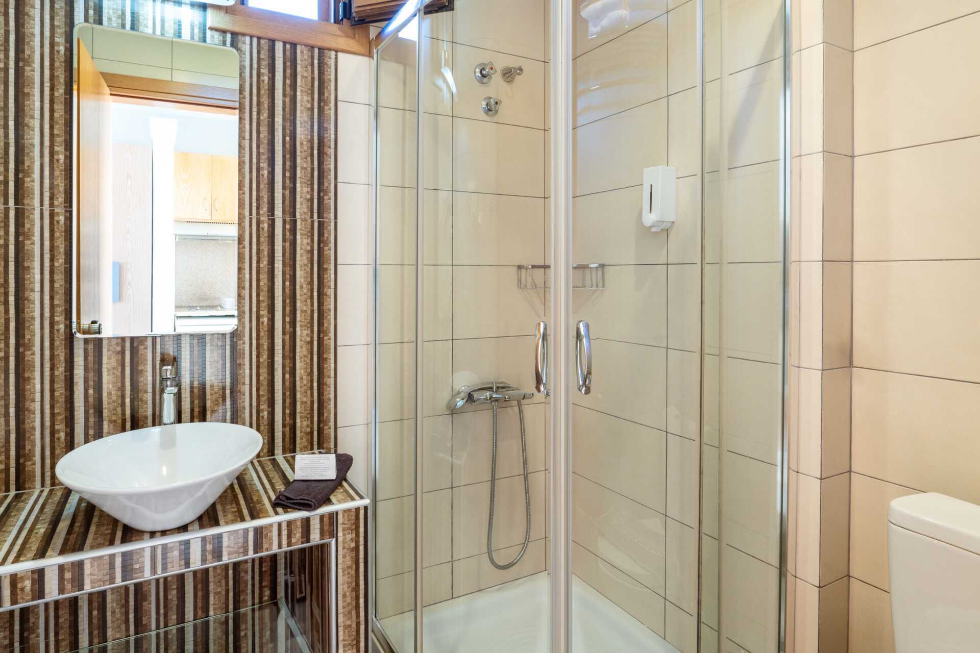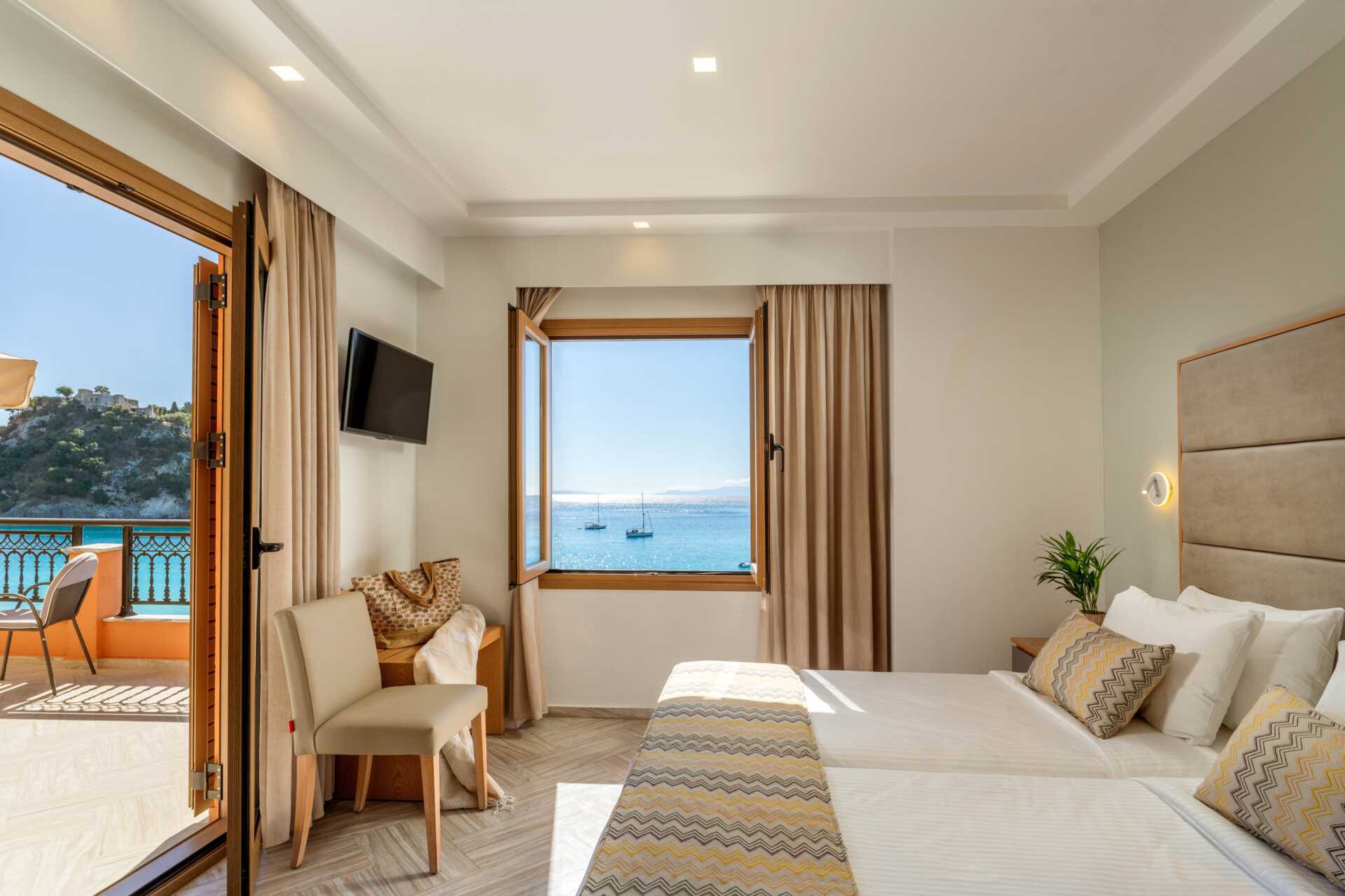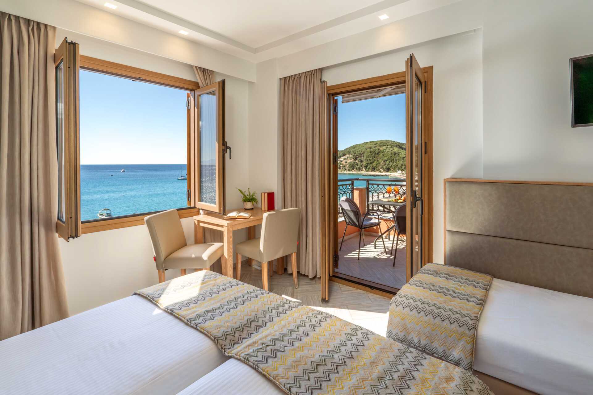 Enrumslägenhet med balkong och havsutsikt. Varierande storlek och med modern inredning. Sovrum med kombinerat minikök. Två enkelsängar. Möjlighet till extrabäddar i bäddsoffa. Minikök med kokplattor, kylskåp, kaffebryggare, vattenkokare, brödrost, mikrovågsugn och enkel köksutrustning. Wifi och luftkonditionering ingår. Deponering mot avgift. Tv med internationella kanaler. Hårtork. Badrum med dusch och wc. Städning 6 ggr/vecka.