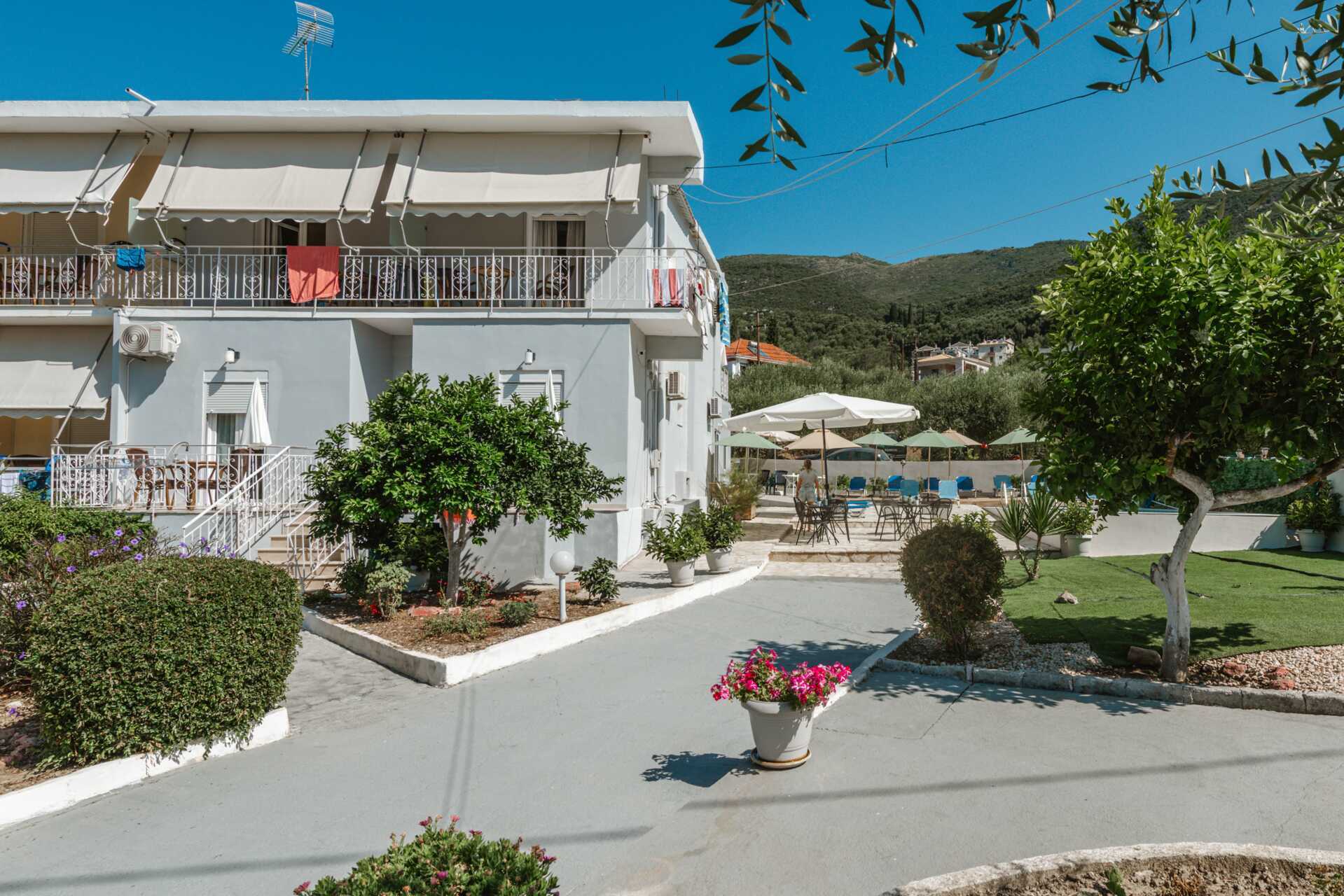 Villa Garden har en liten pool med några solstolar kring. Trevlig solterrass med sköna sittplatser i skuggan under parasollen. Wifi ingår i allmänna utrymmen. Receptionen är öppen kl. 08.00-23.00. Trappor och nivåskillnader inom hotellet. Hotellet är en utmärkt utgångspunkt för dig som vill dra ut på upptäcktsfärd längs Greklands vackra västkust, där små byar och härliga badvikar lockar med sköna bad. Vi rekommendera. att du hyr en bil för att enkelt ta dig runt, Parkering finns att tillgå på hotellet.