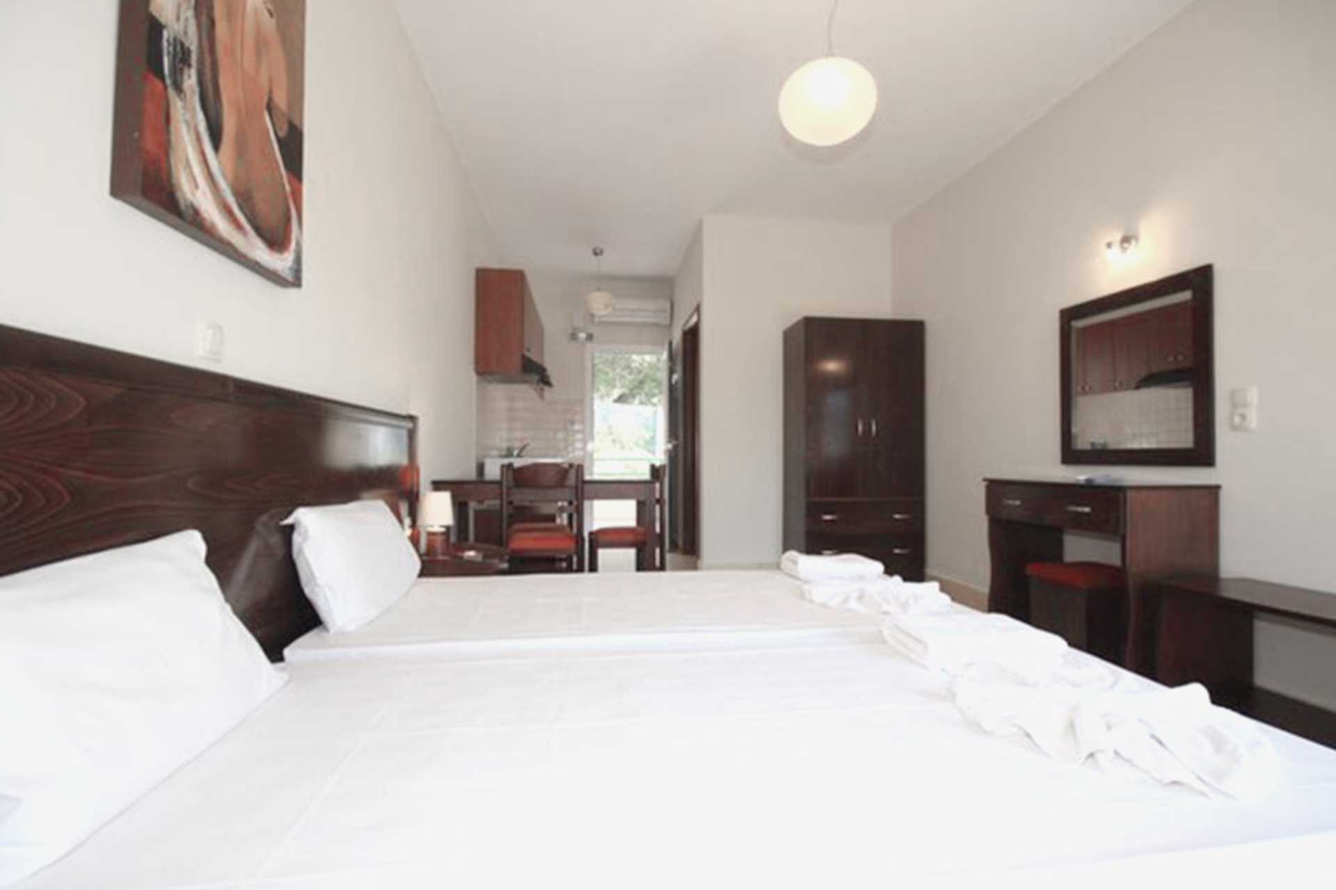 Enrumslägenhet med balkong. Sovrum kombinerat med minikök. En dubbelsäng. Minikök med kokplattor, kylskåp, kaffebryggare och enkel köksutrustning. Wifi ingår. Luftkonditionering och deponering mot avgift. Tv med internationella kanaler. Badrum med dusch och wc. Städning 7 ggr/vecka. Barn under två år räknas in i maxantalet personer i lägenheten.