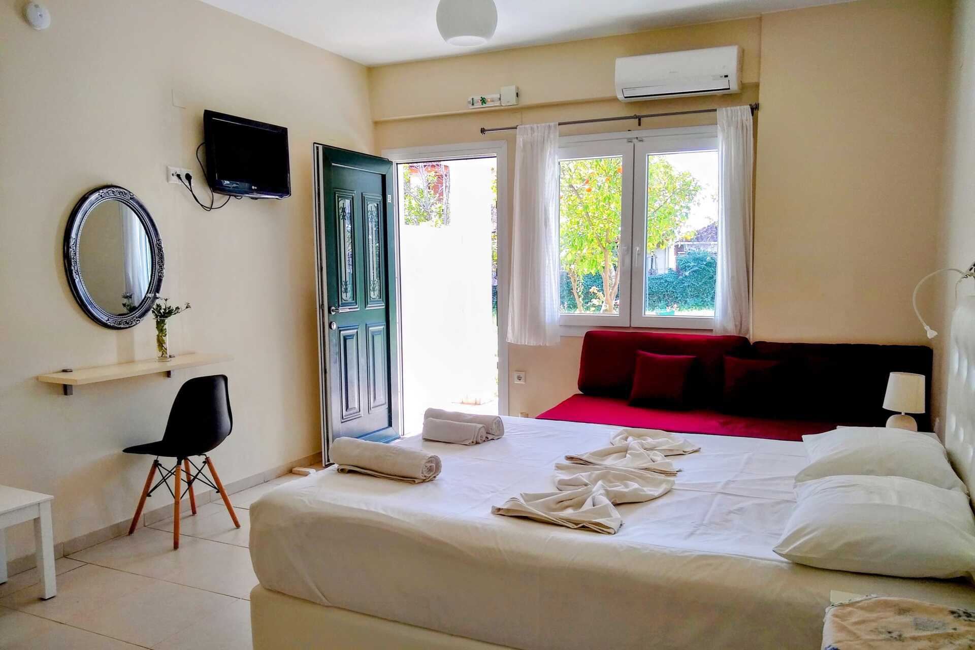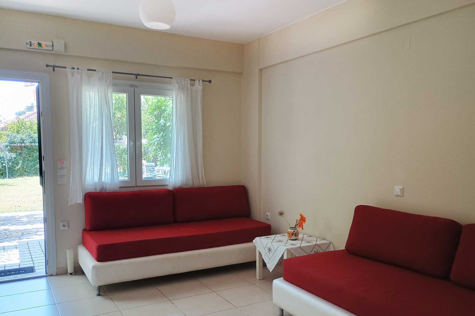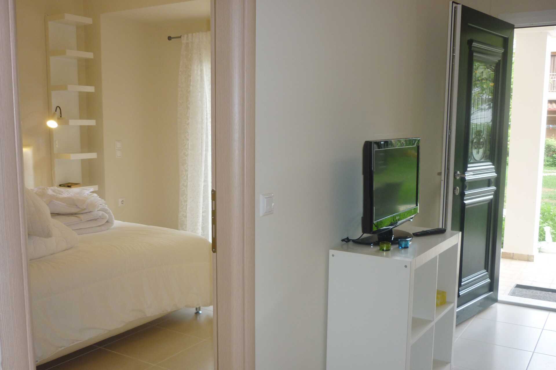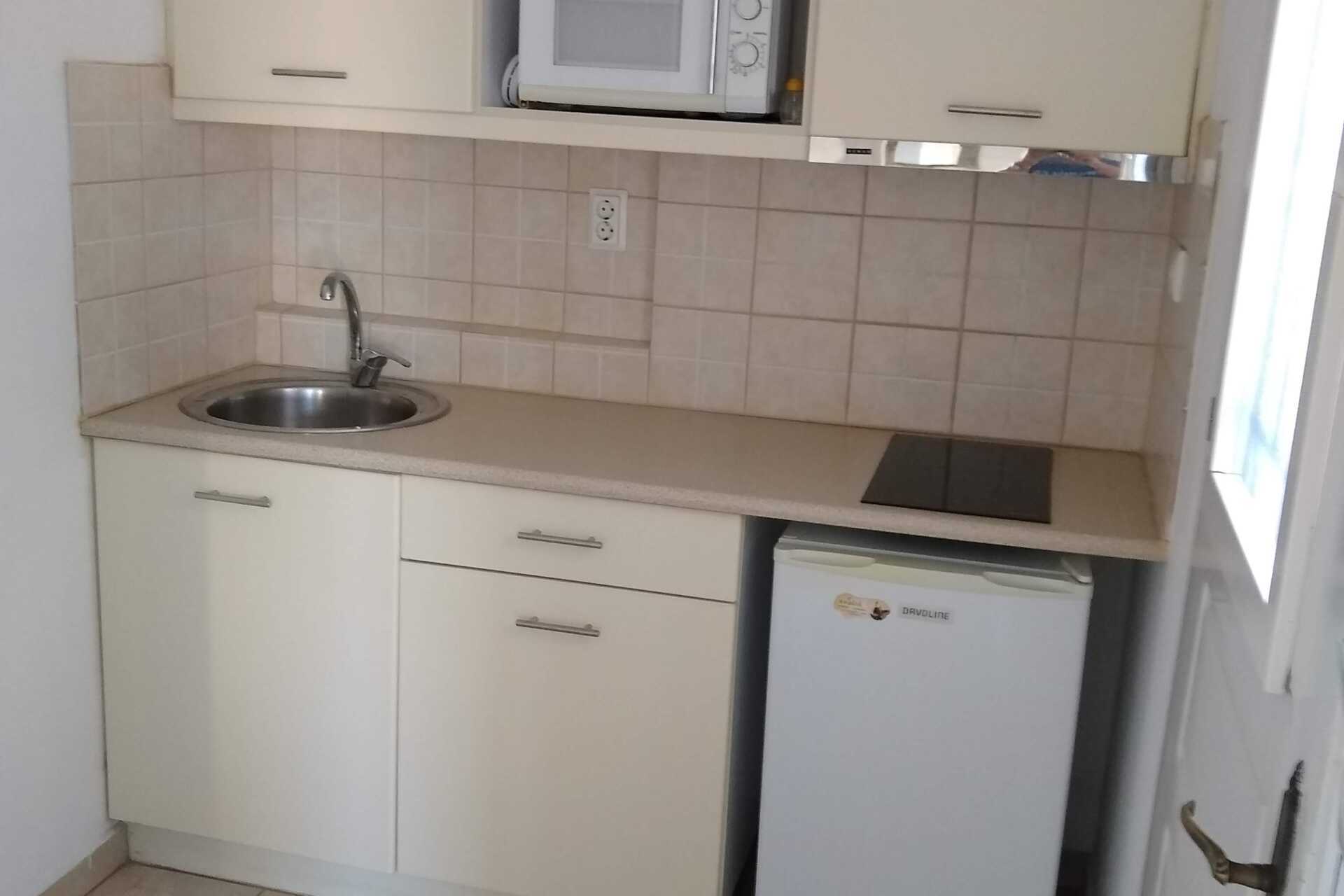 Tvårumslägenhet med markterrass. Sovrum och ett kombinerat vardagsrum med minikök. En dubbelsäng och två enkelsängar. Minikök med kokplattor, ugn, kylskåp, mikrovågsugn och enkel köksutrustning. Wifi ingår. Luftkonditionering och deponering mot avgift. Tv med internationella kanaler. Badrum med dusch och wc. Städning 6 ggr/vecka. Barn under två är räknas in i maxantalet personer i lägenheten.