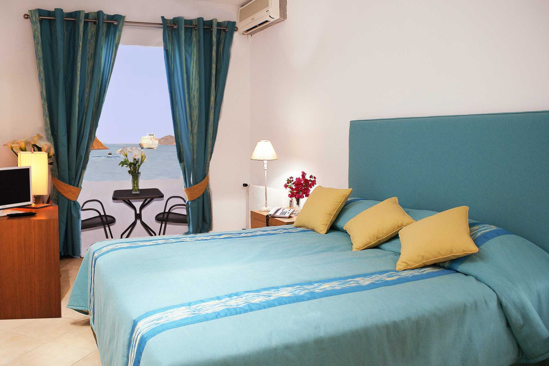 Dubbelrum med balkong eller terrass. En dubbelsäng eller två enkelsängar. Möjlighet till extrabädd i hopvikbar säng. Wifi, luftkonditionering och deponering ingår. Kylskåp. Tv med internationella kanaler. Hårtork. Badrum med dusch och wc. Städning 6 ggr/vecka. Barn under två år räknas in i maxantalet personer i rummet.