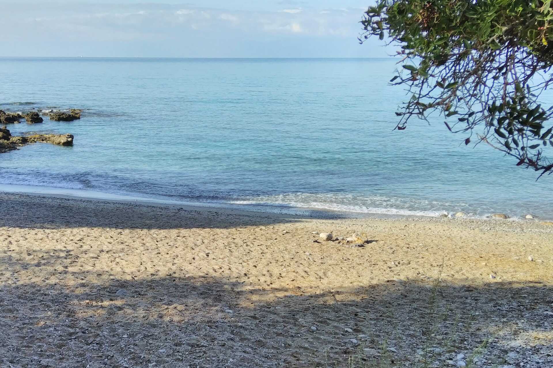 Stranden ligger i utkanten av Kardamilis centrum. Det finns gott om utrymme på den fina stenstranden och här hittar du trevliga tavernor, vissa med en härlig panoramautsikt, andra i frodiga trädgårdar. Flera mysiga trottoarkaféer.