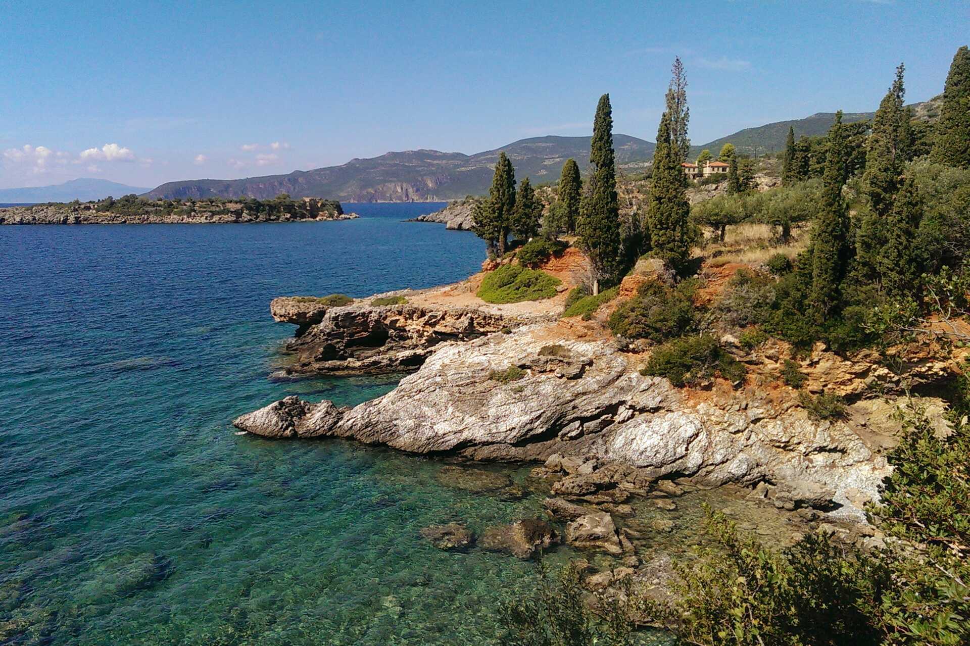Peloponnesos brukar kallas för Greklands svar på franska Rivieran, och det är inte direkt svårt att förstå varför. Likt södra Frankrike har Peloponnesos ett dramatiskt landskap med höga berg inåt land och en lång kustremsa som består av både långa stränder och branta klippor. Byarna och städerna omges av olivlundar och cypressklädda kullar.