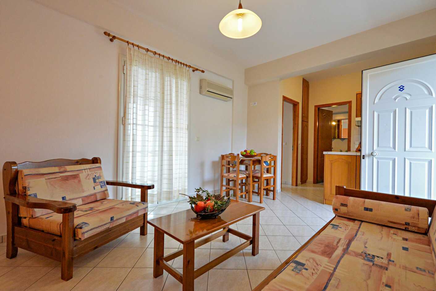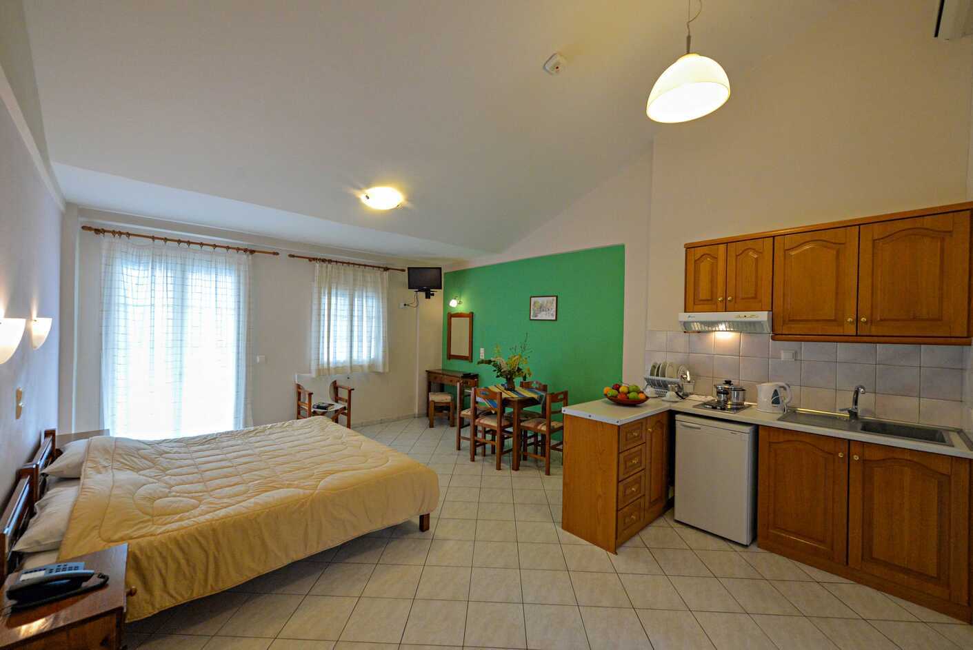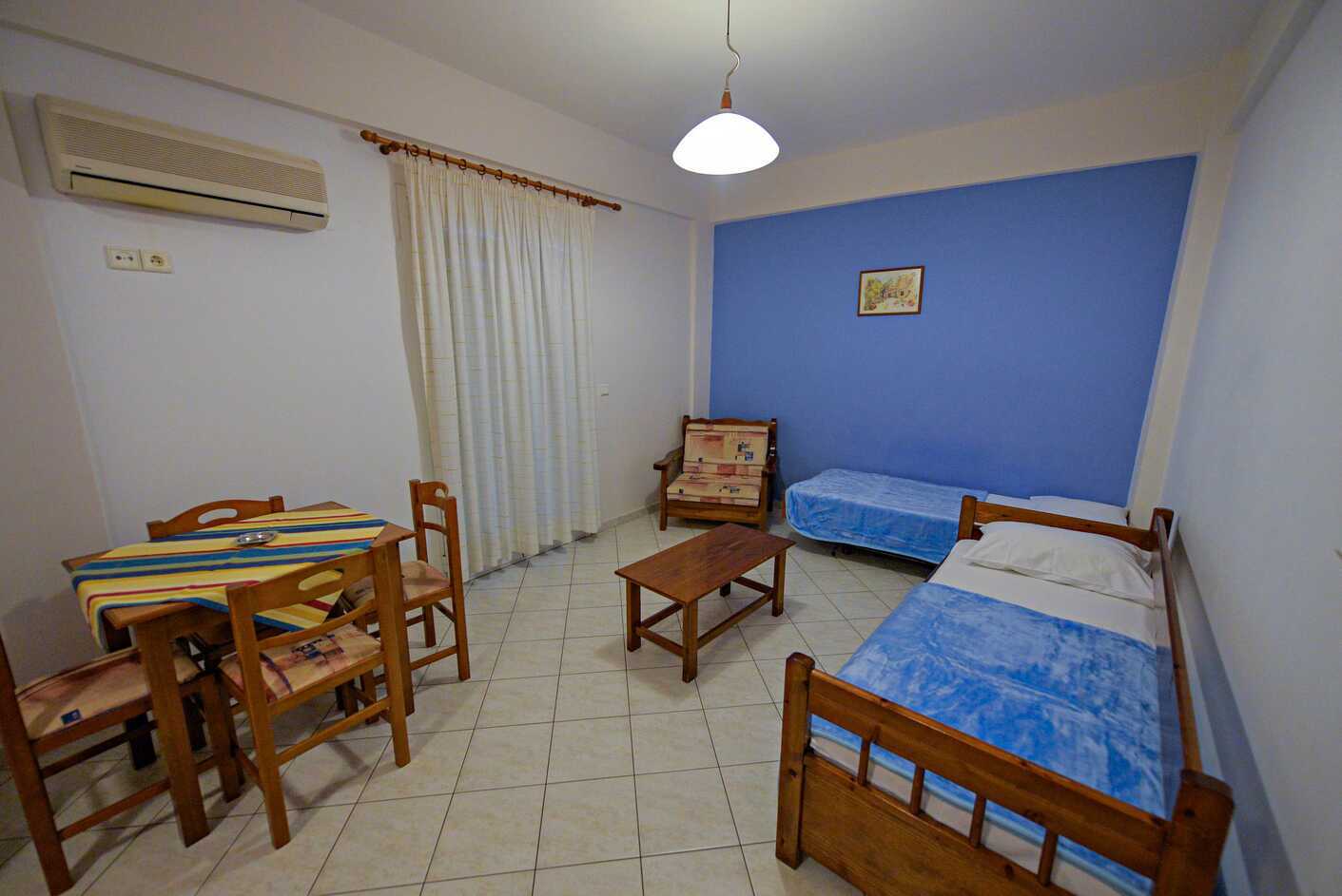 Enrumslägenhet med balkong. Sovrum kombinerat med minikök. Två enkelsängar. Möjlighet till extrabädd i bäddsoffa. Minikök med kokplattor, kylskåp, vattenkokare och enkel köksutrustning. Deponering ingår. Luftkonditionering mot avgift. Tv med lokala kanaler. Badrum med dusch och wc. Städning 6 ggr/vecka. Barn under två år räknas in i max antal personer i lägenheten.