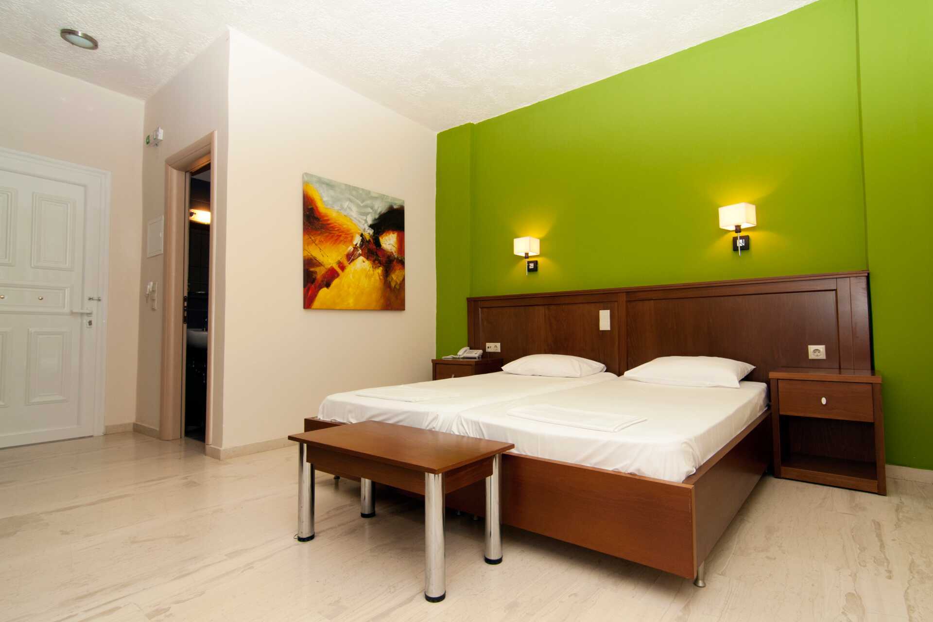 Dubbelrum med balkong eller terrass. Två enkelsängar. Möjlighet till extrabädd i enkelsäng. Wifi, luftkonditionering och deponering ingår. Kylskåp. Tv med internationella kanaler. Strykjärn och strykbräda. Städning 6 ggr/vecka. Hårtork. Badrum med dusch och wc. Barn under två år räknas in i maxantalet personer i rummet.