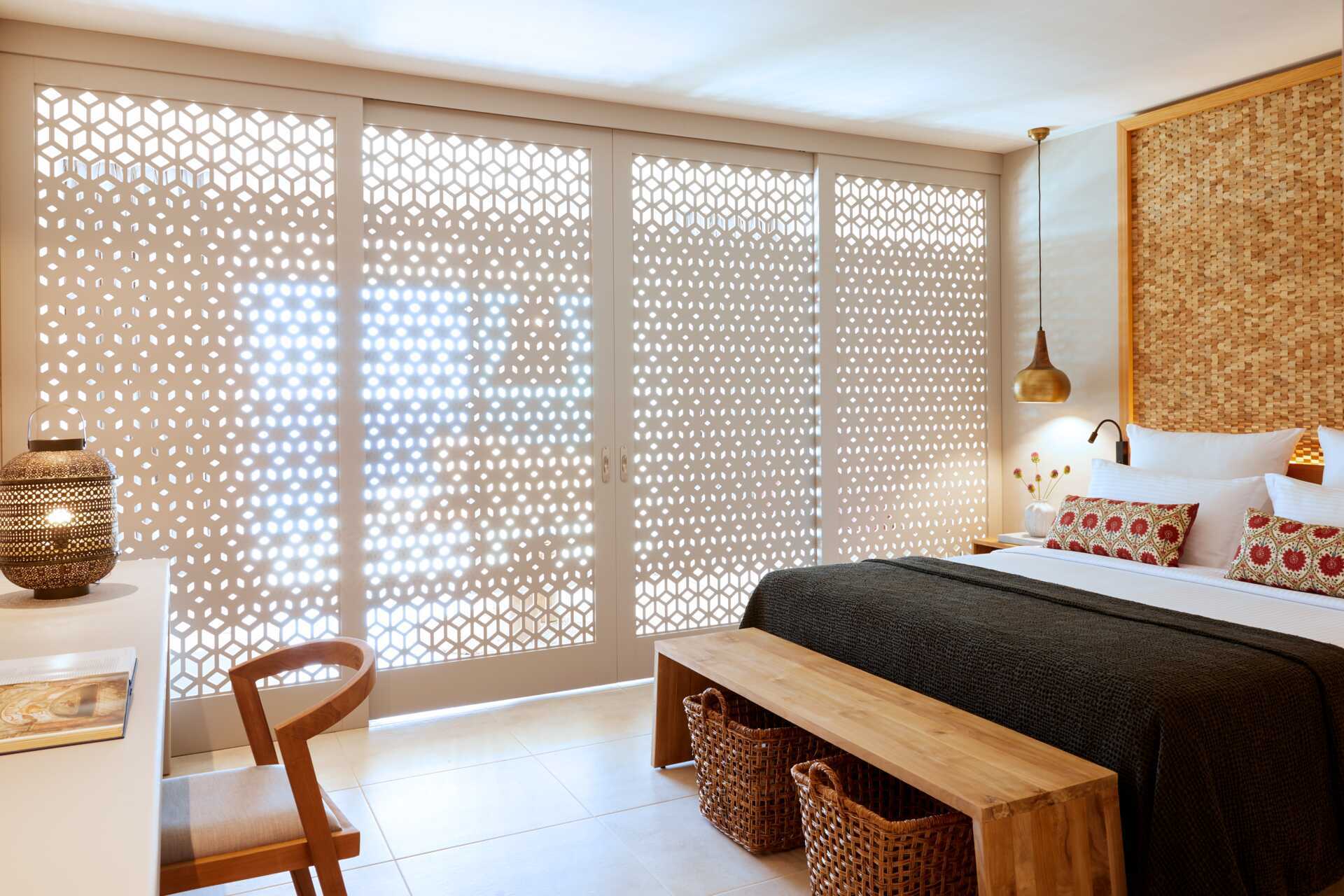 Deluxerum med privat infinitypool och havsutsikt. Åldersgränsen är 15 år. På uteplatsen finns sköna fåtöljer. En dubbelsäng. Kuddmeny. Wifi, luftkonditionering och deponering ingår. Minibar mot avgift. Vattenkokare samt kaffe och te. Espressomaskin. Tv med internationella kanaler. Hårtork. Badrum med dusch och wc. Städning 7 ggr/vecka.