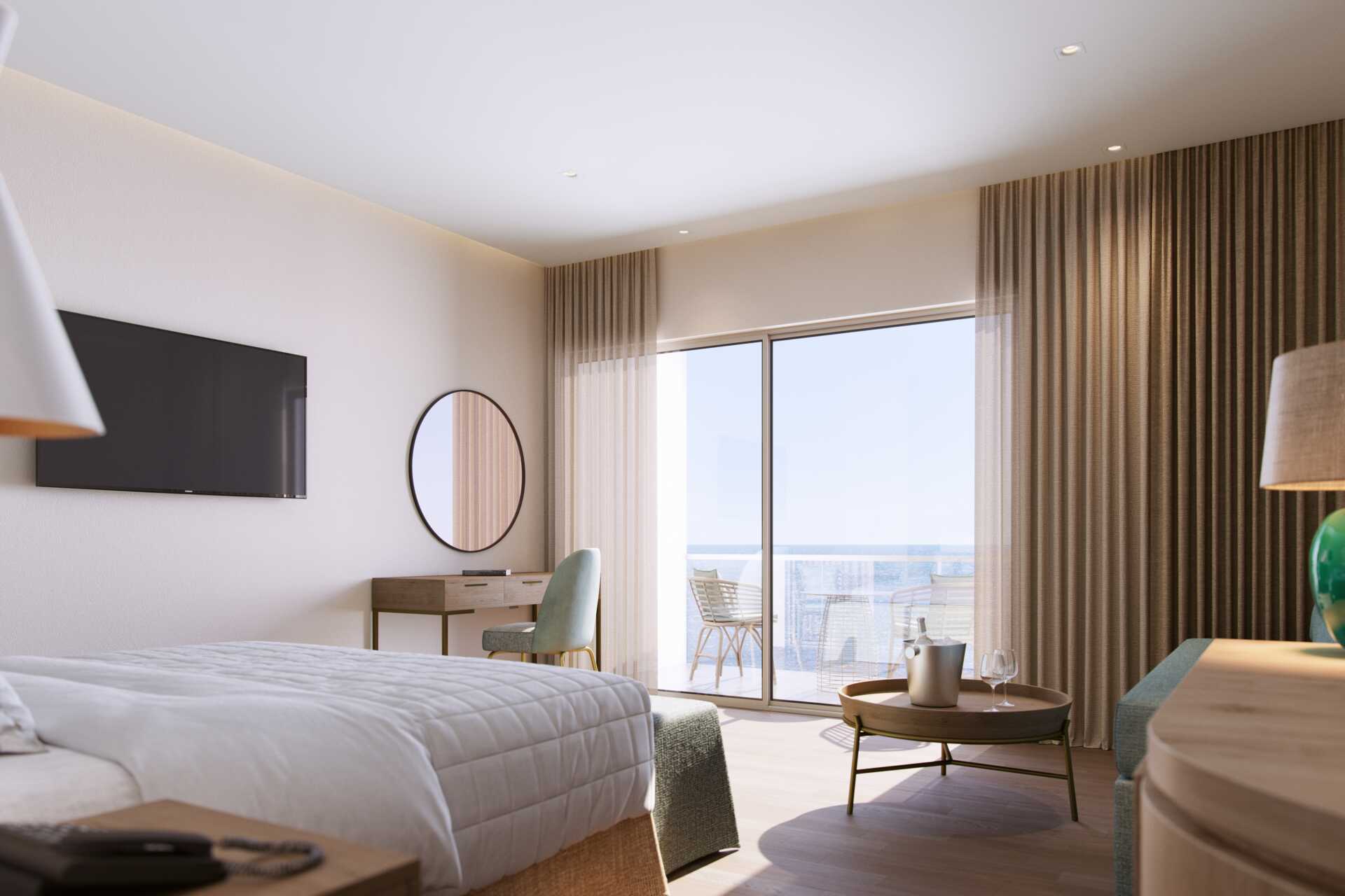 Dubbelrum med balkong och havsutsikt. Åldersgräns 15 år. En dubbelsäng eller två enkelsängar. Kuddmeny. Wifi, luftkonditionering och deponering ingår. Minibar mot avgift. Vattenkokare samt kaffe och te. Espresso kaffemaskin. Tv med internationella kanaler. Hårtork. Badrum med dusch och wc. Städning 7 ggr/vecka.