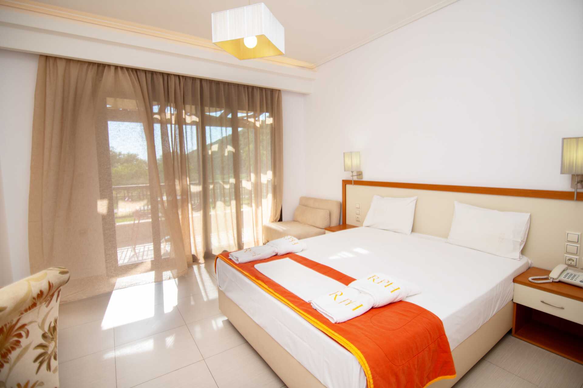 Dubbelrum med balkong. En dubbelsäng. Möjlighet till extrabädd i bäddsoffa. Wifi, luftkonditionering och deponering ingår. Minibar. Tv med internationella kanaler. Hårtork. Badrum med dusch och wc. Städning 6 ggr/vecka.
