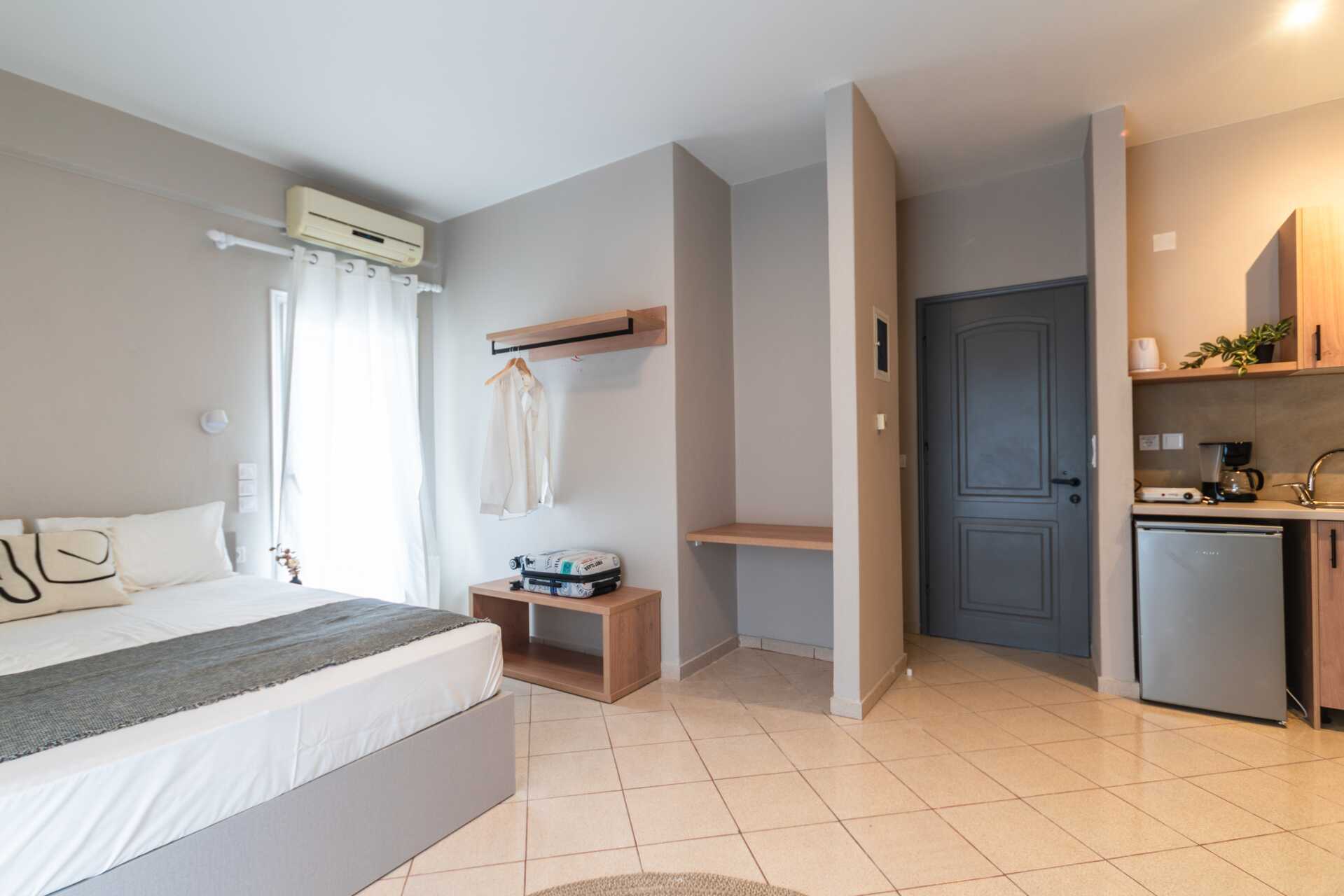 Dubbelrum med balkong, vissa med havsutsikt. Kombinerat sovrum och minikök. En dubbelsäng eller två enkelsängar. Möjlighet till extrabädd i befintlig säng. Wifi och luftkonditionering ingår. Kylskåp. Tv med lokala kanaler. Tofflor. Badrum med dusch och wc. Städning 5 ggr/vecka.