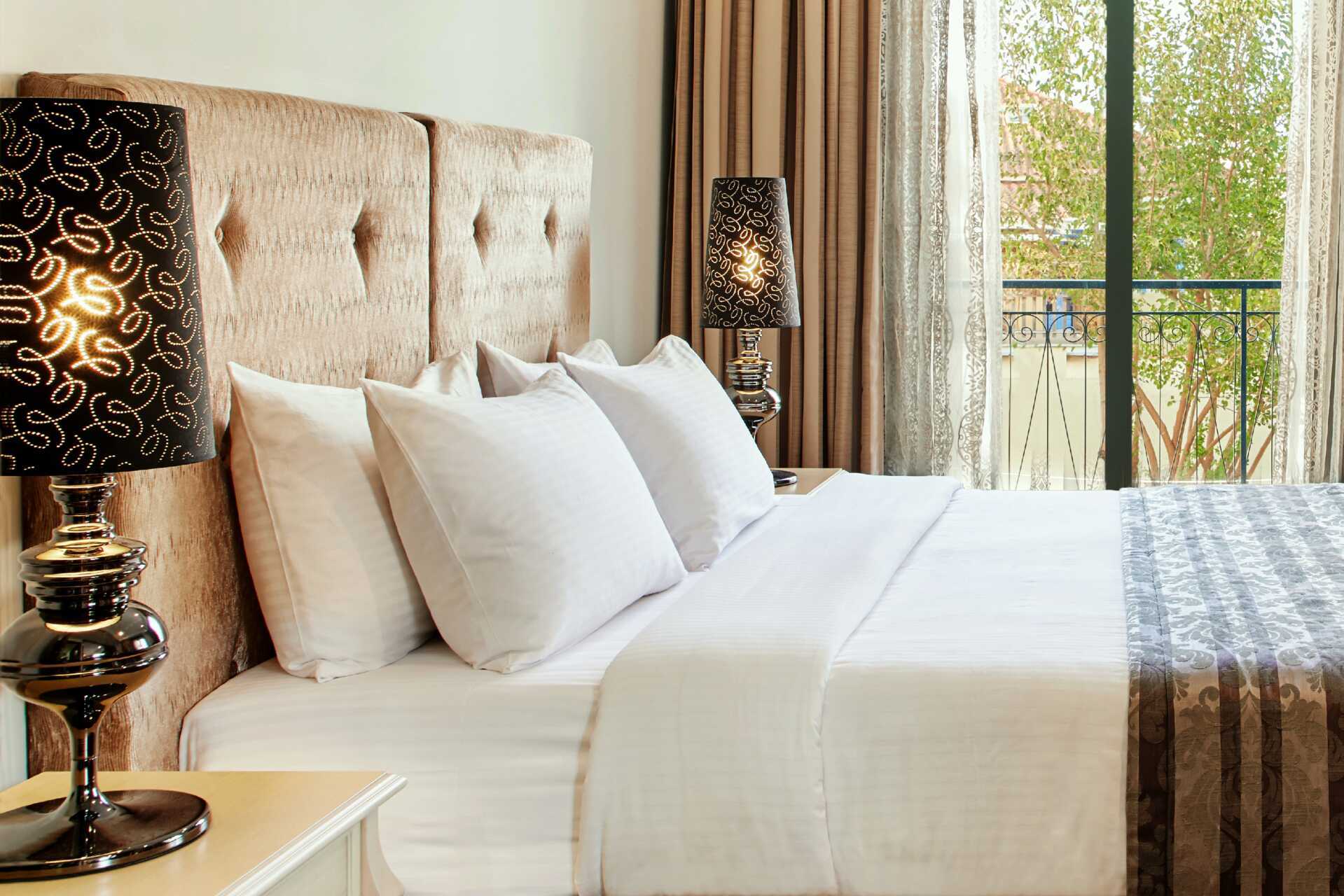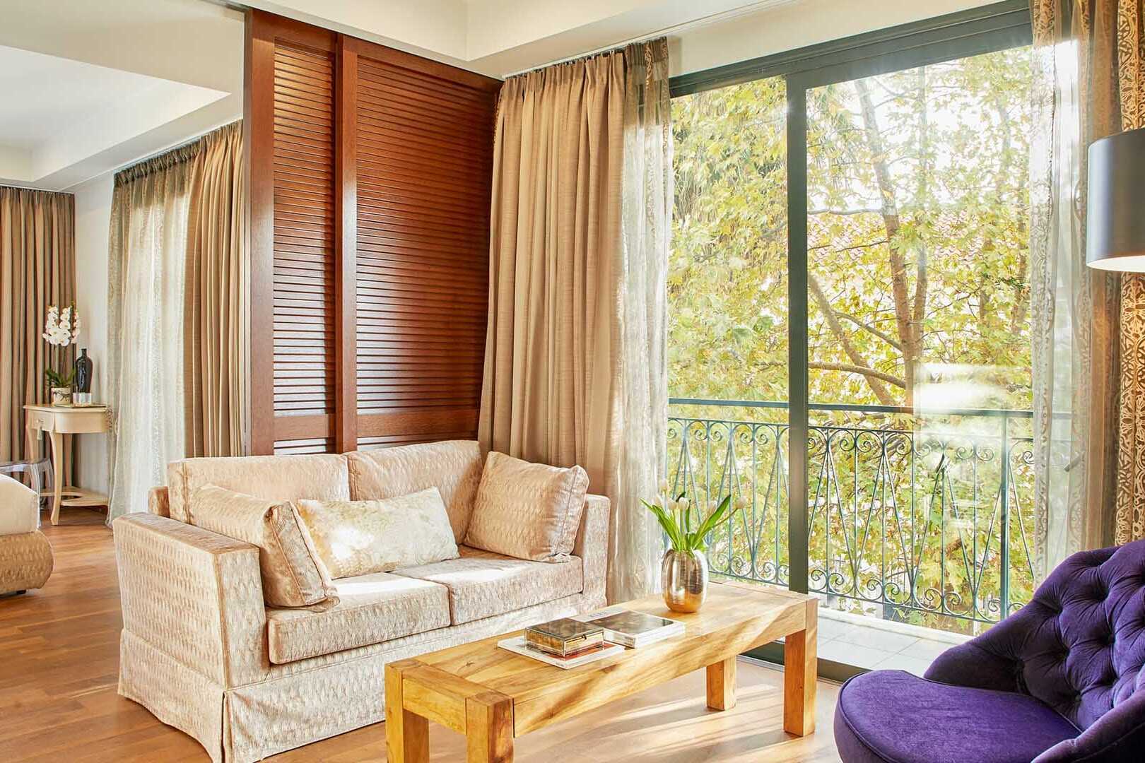 Deluxesvit med fransk balkong. Rummet har av en sovrumsdel och en vardagsrumsdel med bäddsoffa. En dubbelsäng och möjlighet till extrabäddar i bäddsoffa. Wifi, luftkonditionering och deponering ingår. Kylskåp. Nespressomaskin - kapslar ingår. Tv med internationella kanaler. Hårtork. Tofflor. Badrum med dusch och wc. Städning 7 ggr/vecka. Barn under två år räknas in i max antal personer i rummet.