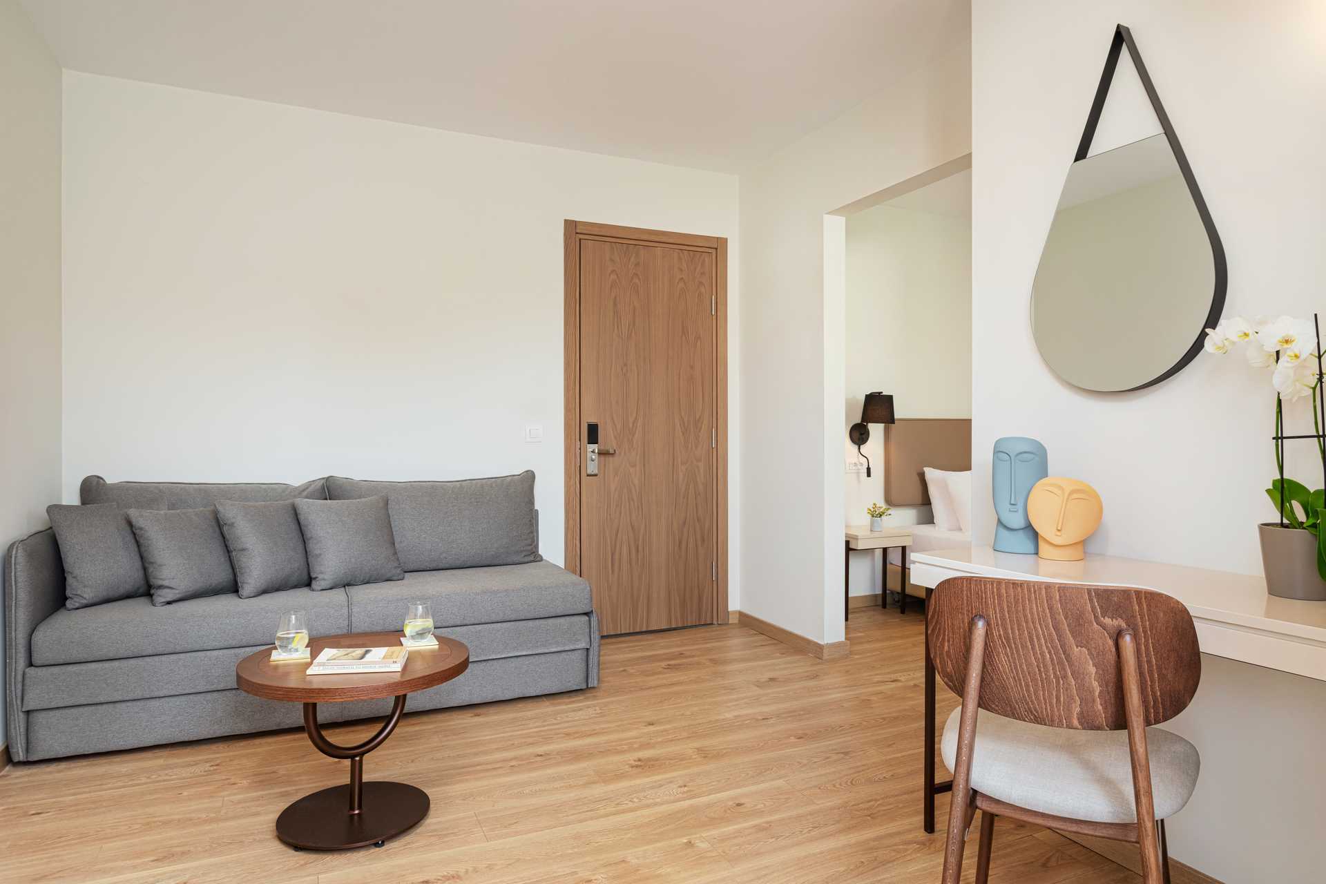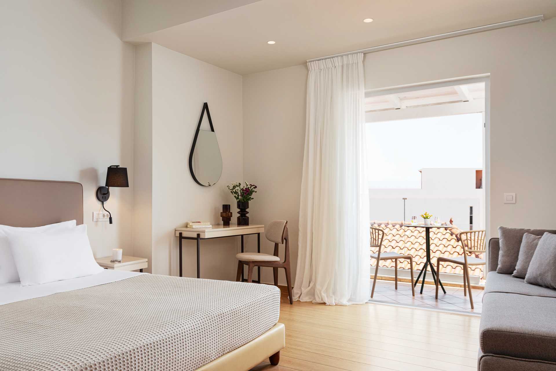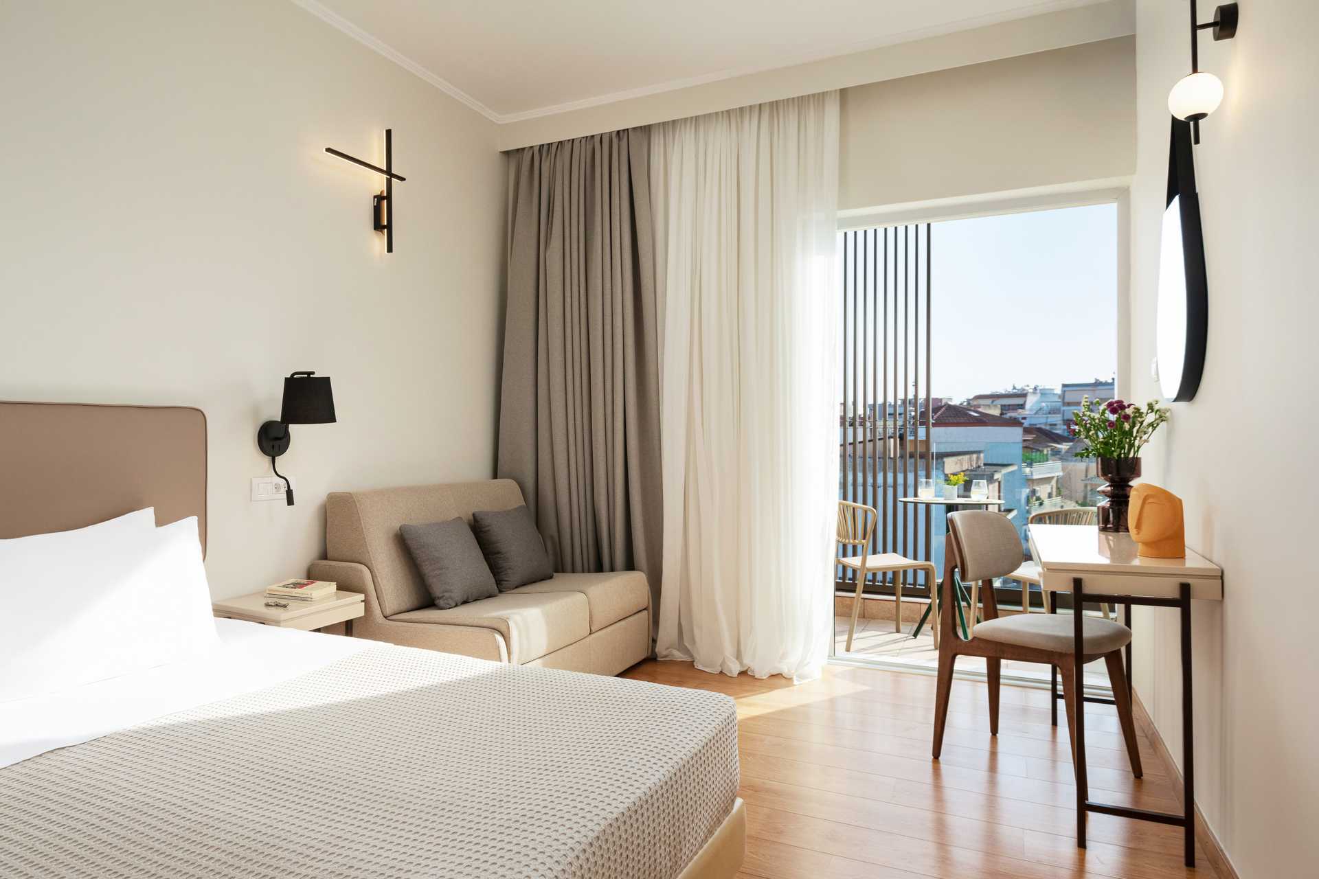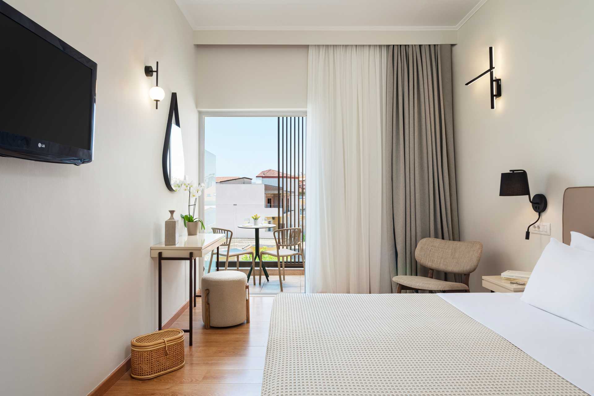 Superiorrum med balkong. En dubbelsäng eller två enkelsängar. Möjlighet till extrabäddar i bäddsoffa. Wifi, luftkonditionering och deponering ingår. Kylskåp. Tv med internationella kanaler. Hårtork. Badrum med dusch och wc. Städning 7 ggr/vecka.