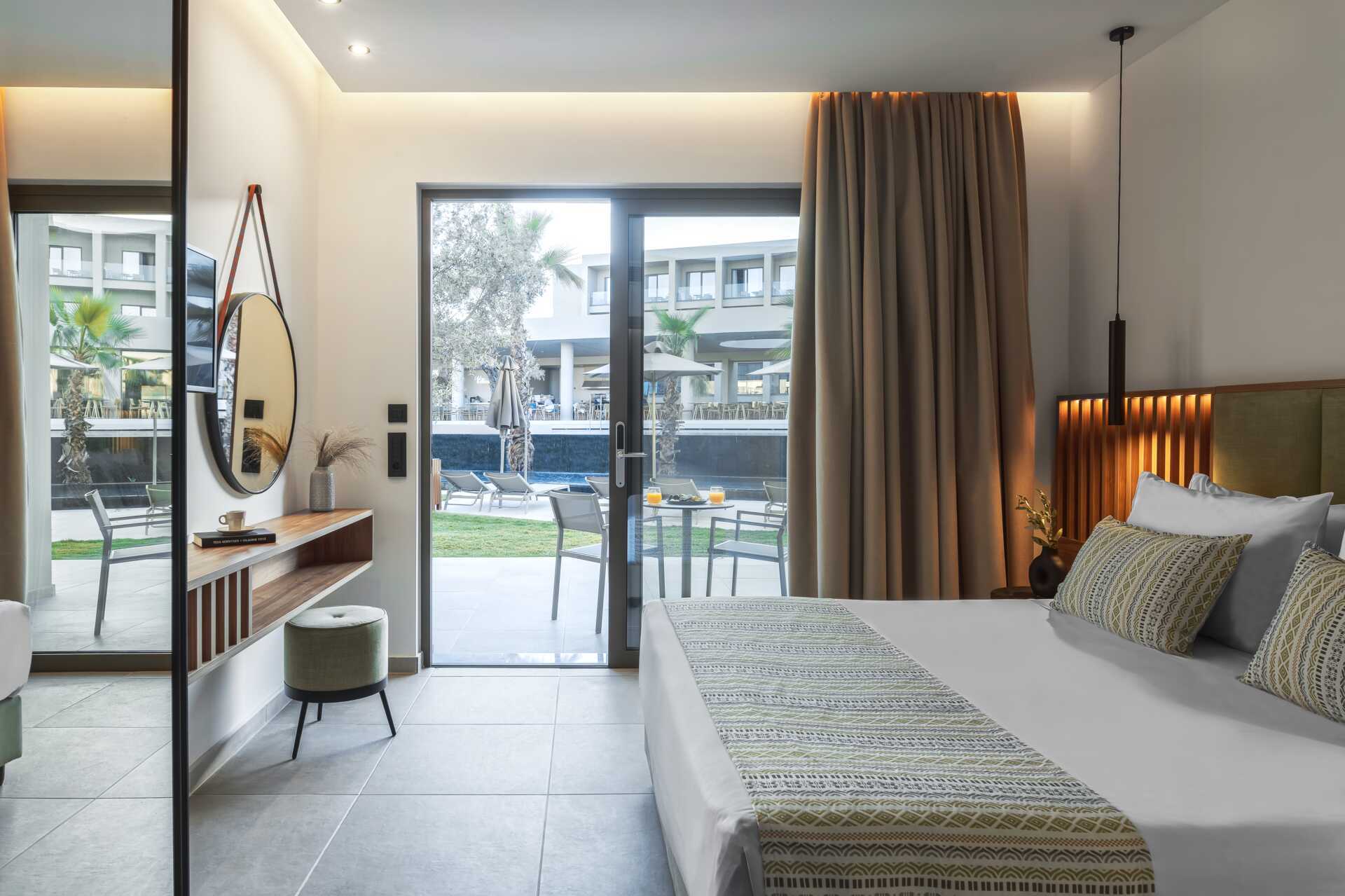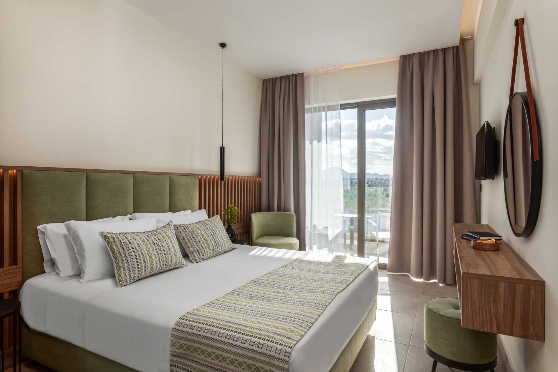 Dubbelrum med balkong, vissa med poolutsikt. En dubbelsäng. Wifi och deponering ingår. Luftkonditionering är tillgänglig 1 juni till 30 september och ingår då. Kylskåp. Vattenkokare, kaffe och te. Tv med internationella kanaler. Hårtork. Badrum med dusch och wc. Städning 7 ggr/vecka.