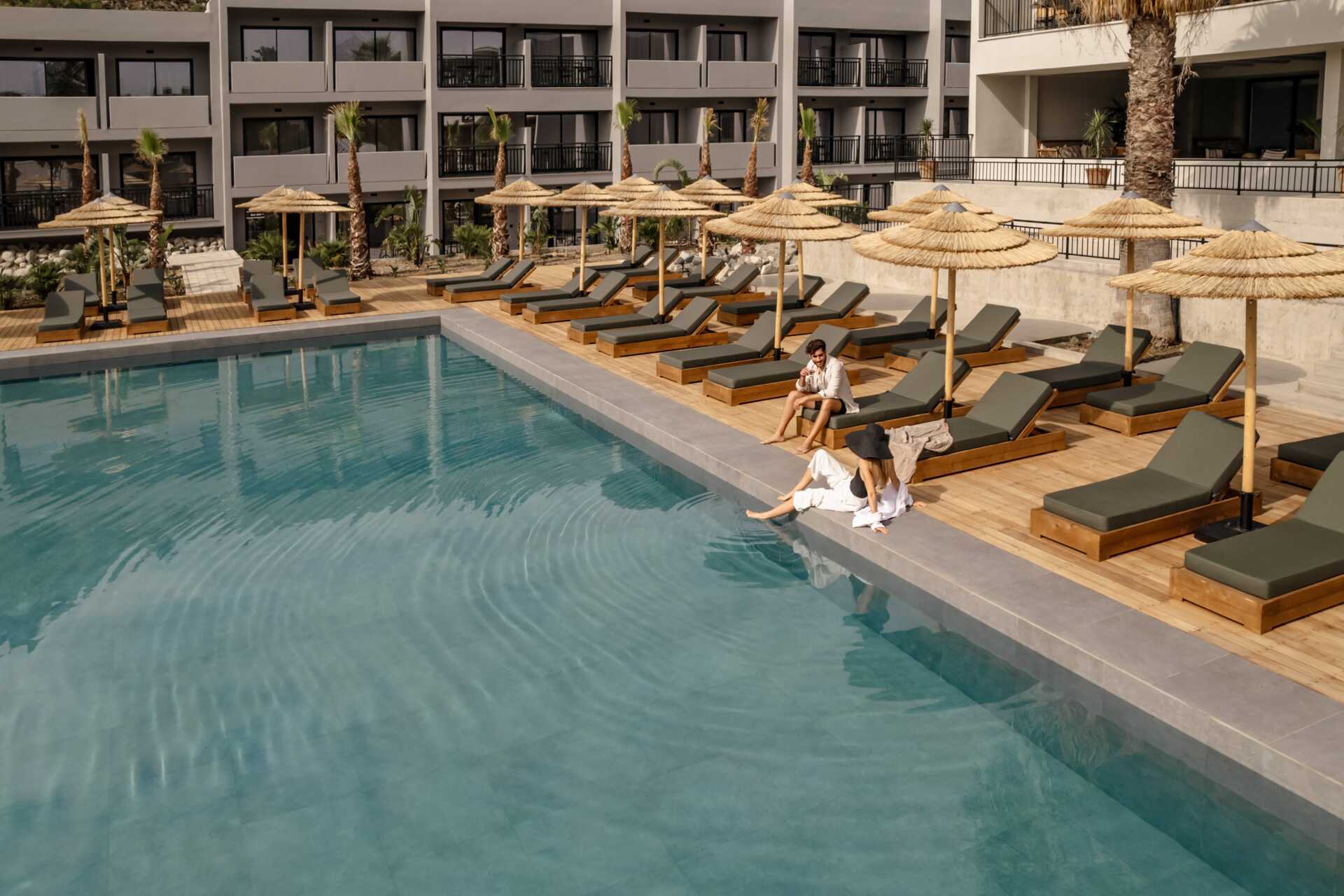 Hotellet har två fina poolområden för ett skönt semesterhäng med varsin pool och det finns en poolbar som släcker törsten. Solstolar, parasoller samt pool- och strandhanddukar ingår. Kort promenad till sand- och stenstranden där solstolar och parasoller finns att hyra.