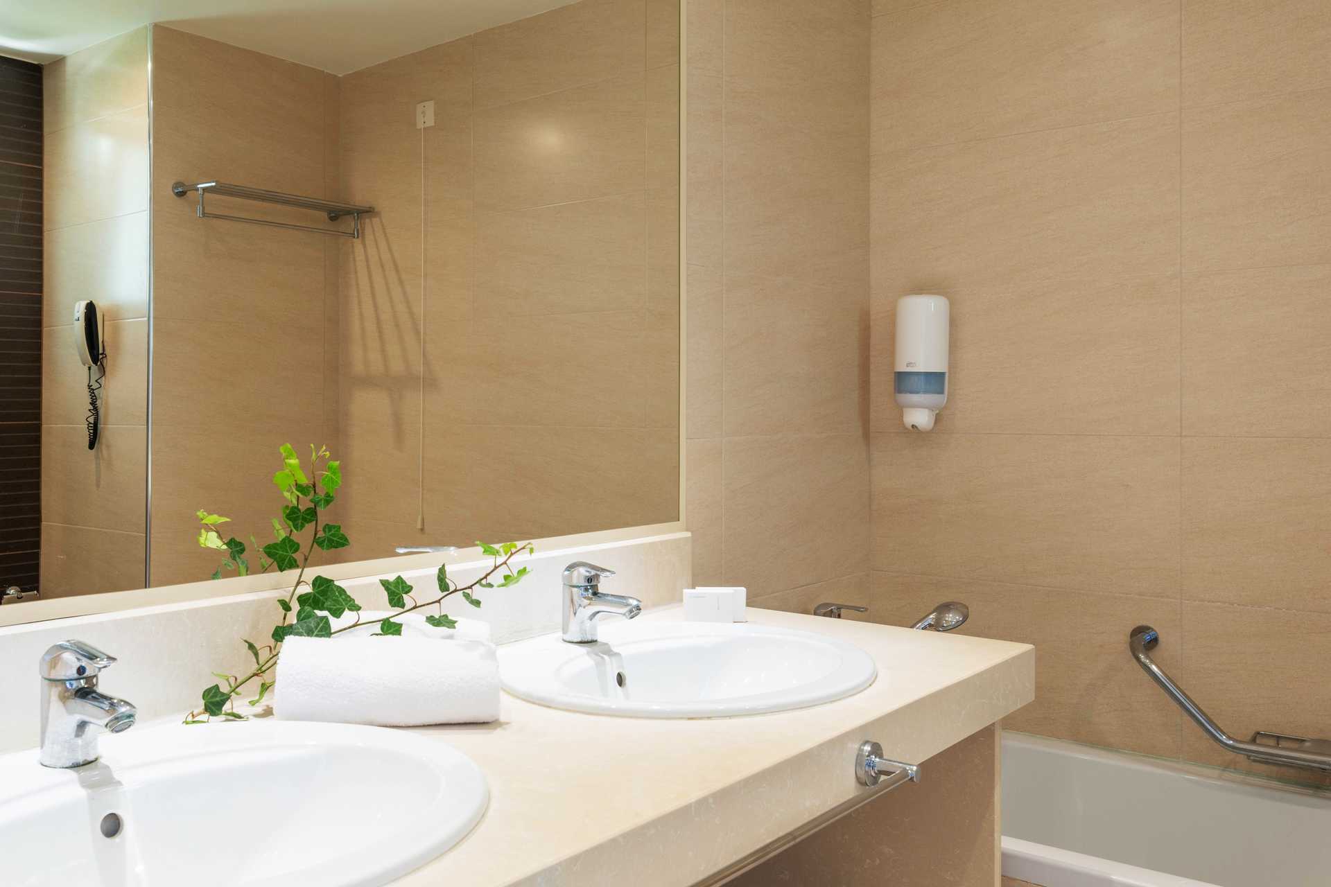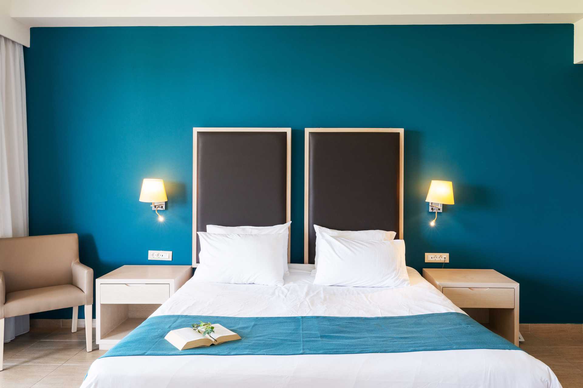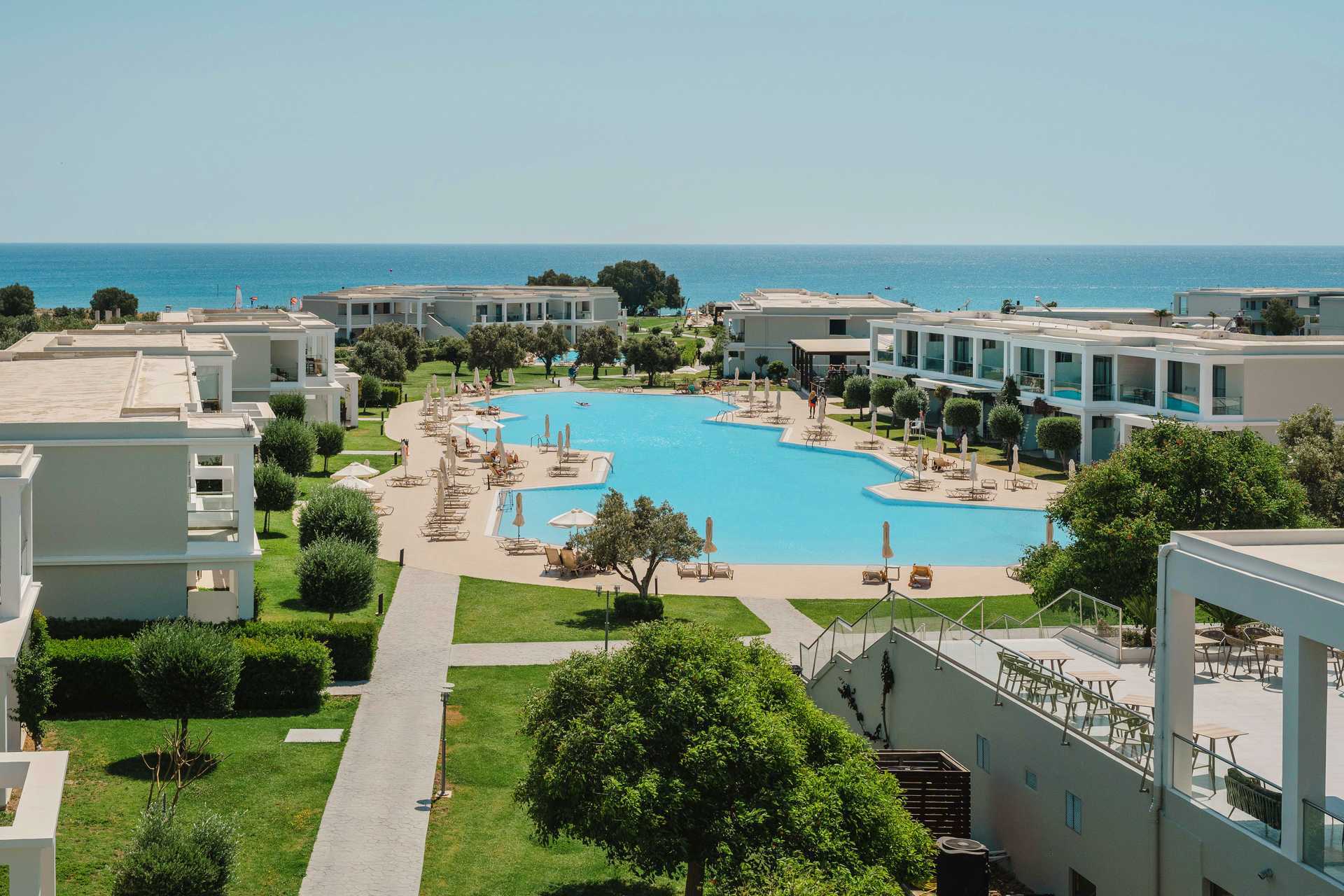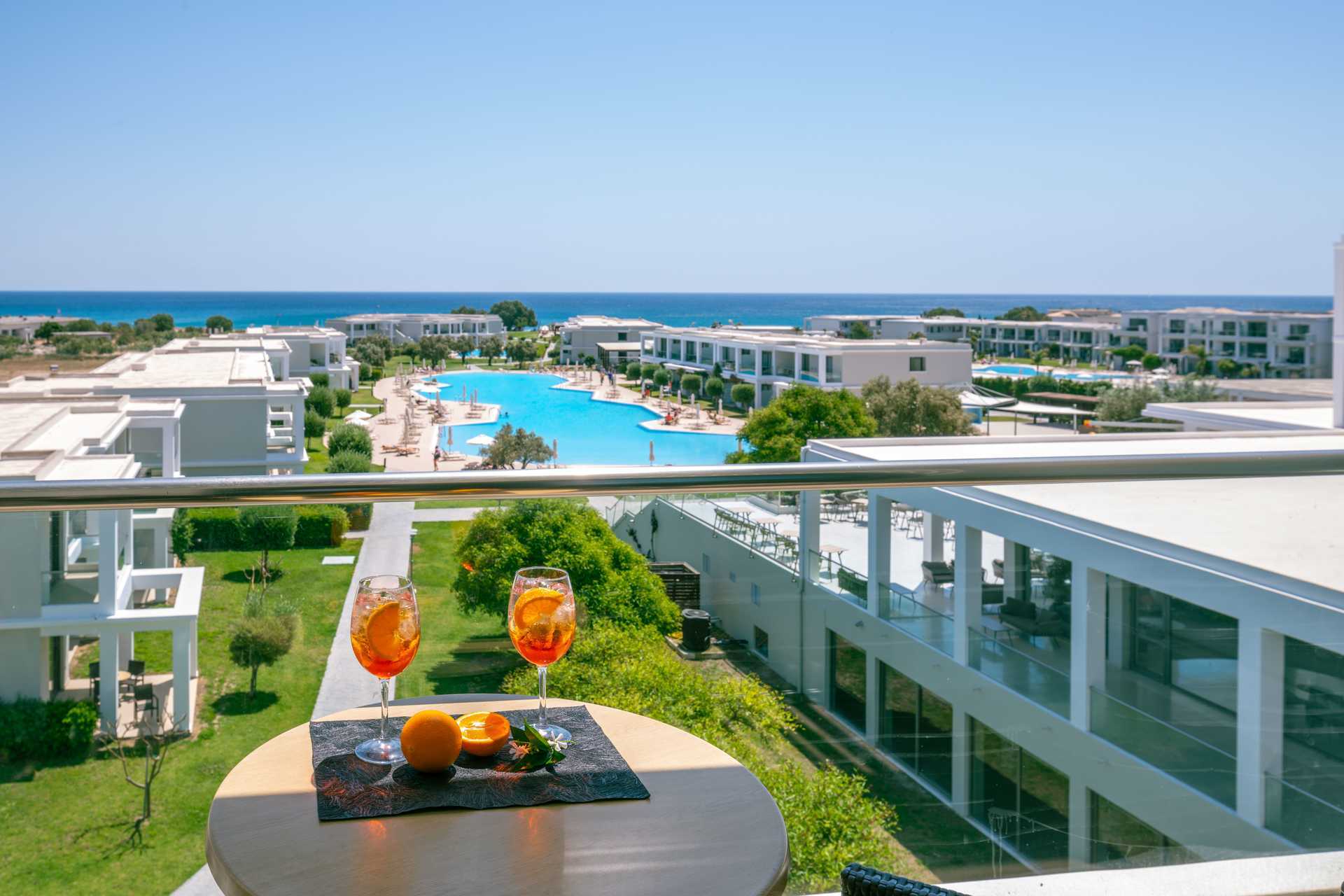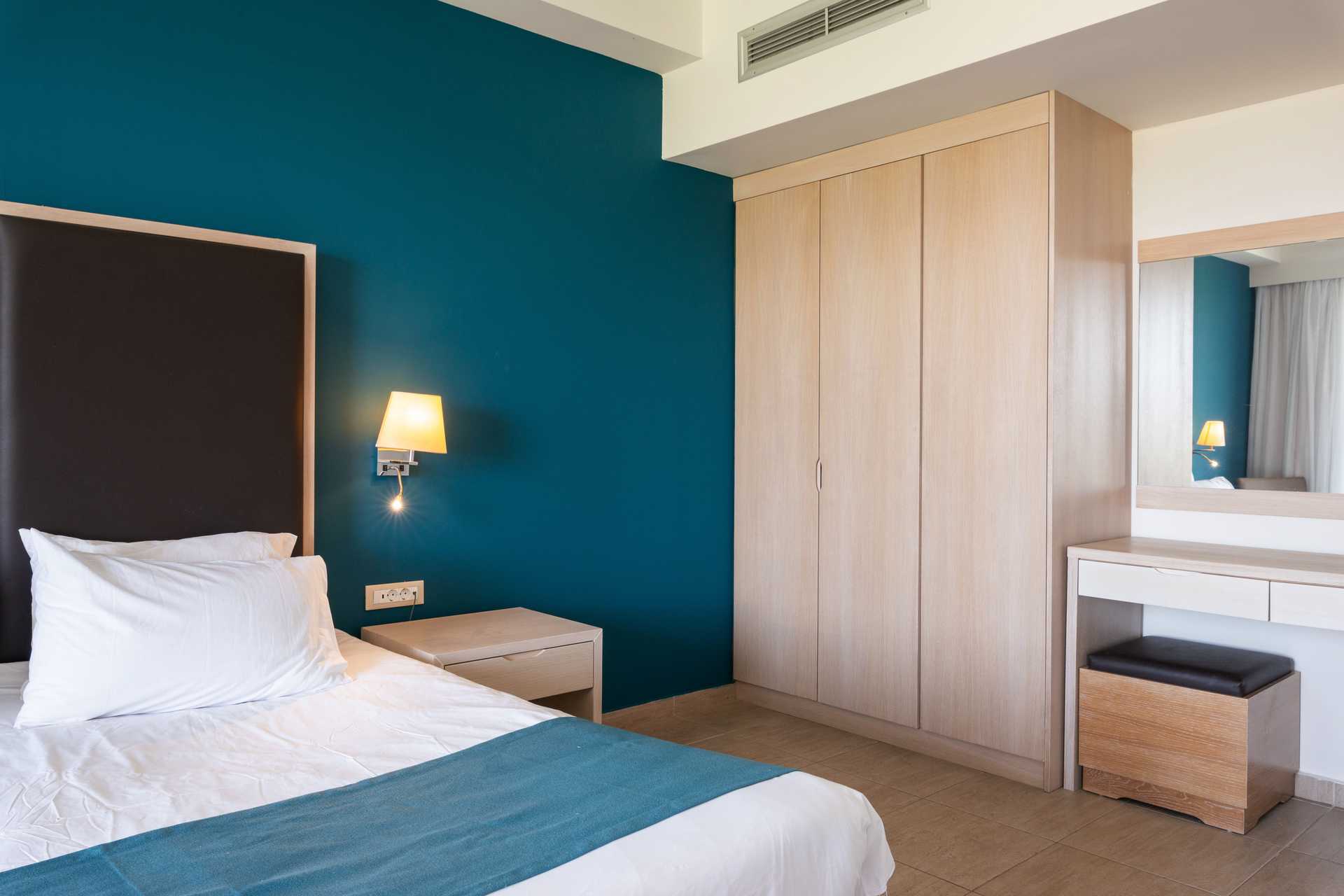Dubbelrum med balkong eller markterrass. Vissa balkonger har poolutsikt, havsutsikt eller begränsad havsutsikt. En dubbelsäng eller två enkelsängar. Möjlighet till extrabädd i bäddsoffa. Wifi, luftkonditionering och deponering ingår. Kylskåp. Vattenkokare. Tv med internationella kanaler. Hårtork. Badrum med badkar eller dusch samt wc. Städning 7 ggr/vecka.