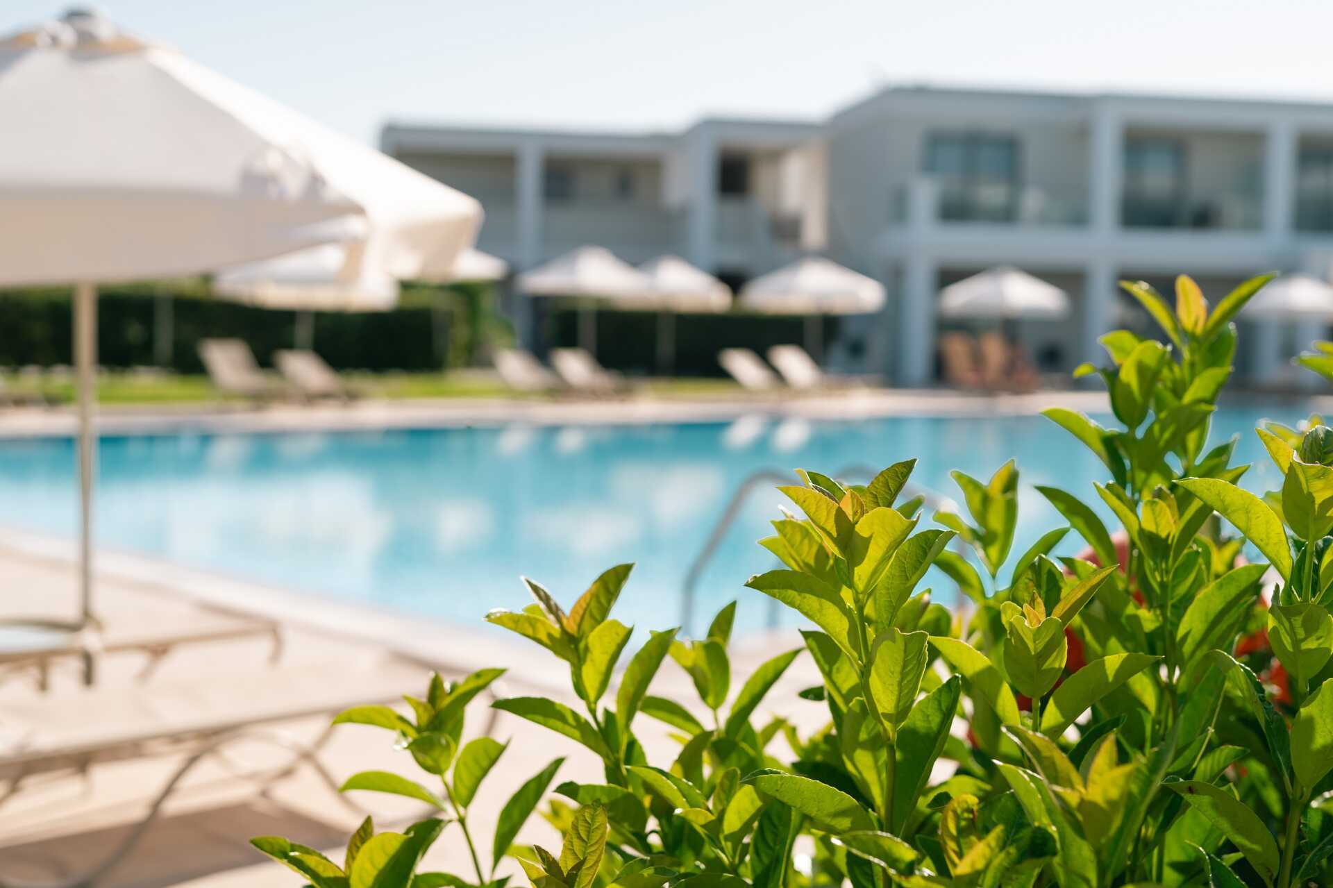 Rummen är belägna i en sidobyggnad, vid hotellets 25-meterspool och sportcenter, cirka 500 meter från stranden och cirka 150 meter från receptionen/huvudbyggnaden.