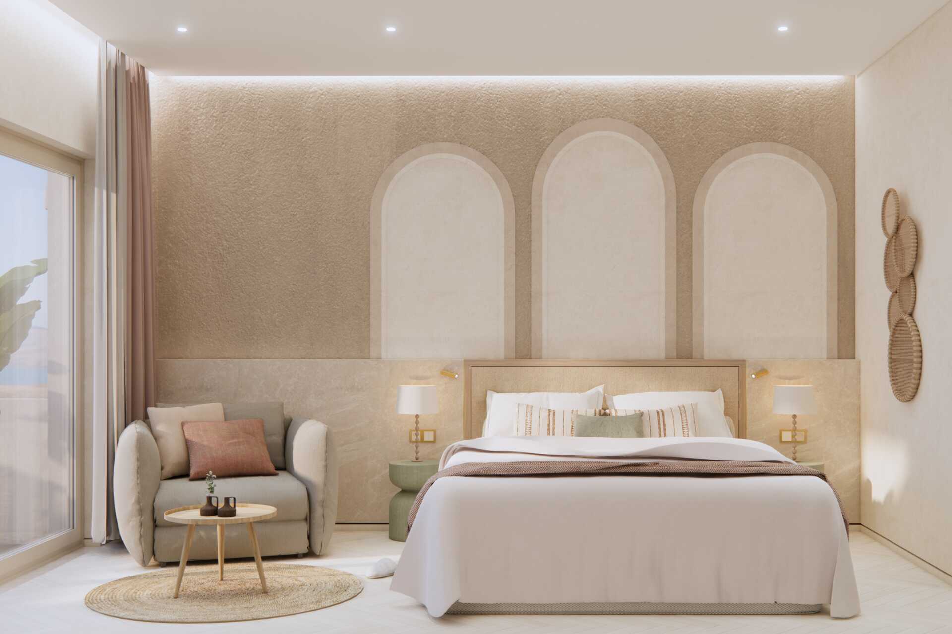 Dubbelrum med utgång till delad pool. Två enkelsängar. Möjlighet till extrabädd för en person. Wifi, luftkonditionering och deponering ingår. Kylskåp. Tv med internationella kanaler. Badrockar och tofflor. Hårtork. Badrum med dusch och wc. Städning 7 ggr/vecka.