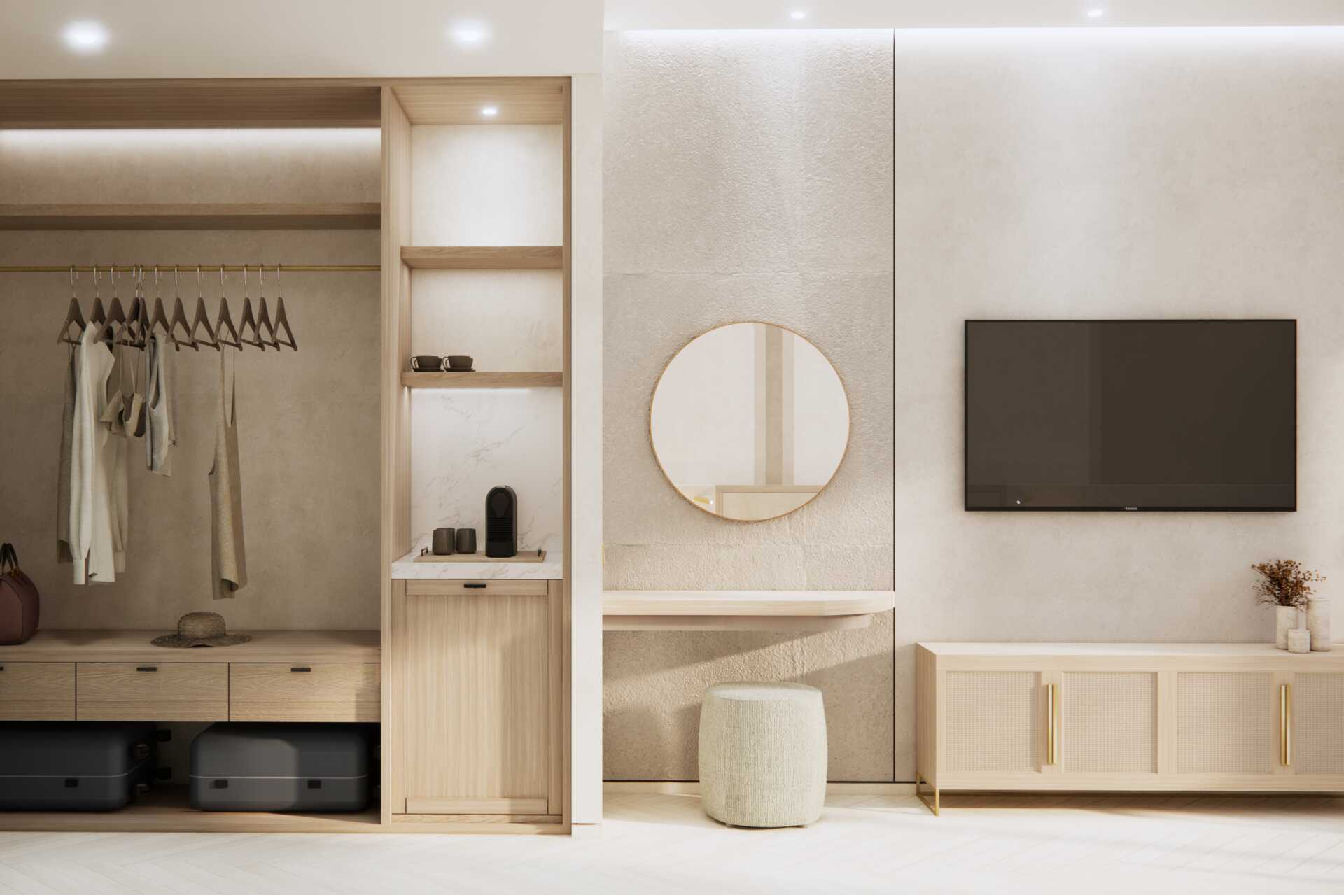Dubbelrum med privat pool på uteplatsen. Två enkeläsngar. Möjlighet till extrabädd i bäddbar fåtölj. Wifi, luftkonditionering och deponering ingår. Kylskåp. Tv med internationella kanaler. Badrockar och tofflor. Hårtork. Badrum med dusch och wc. Städning 7 ggr/vecka.