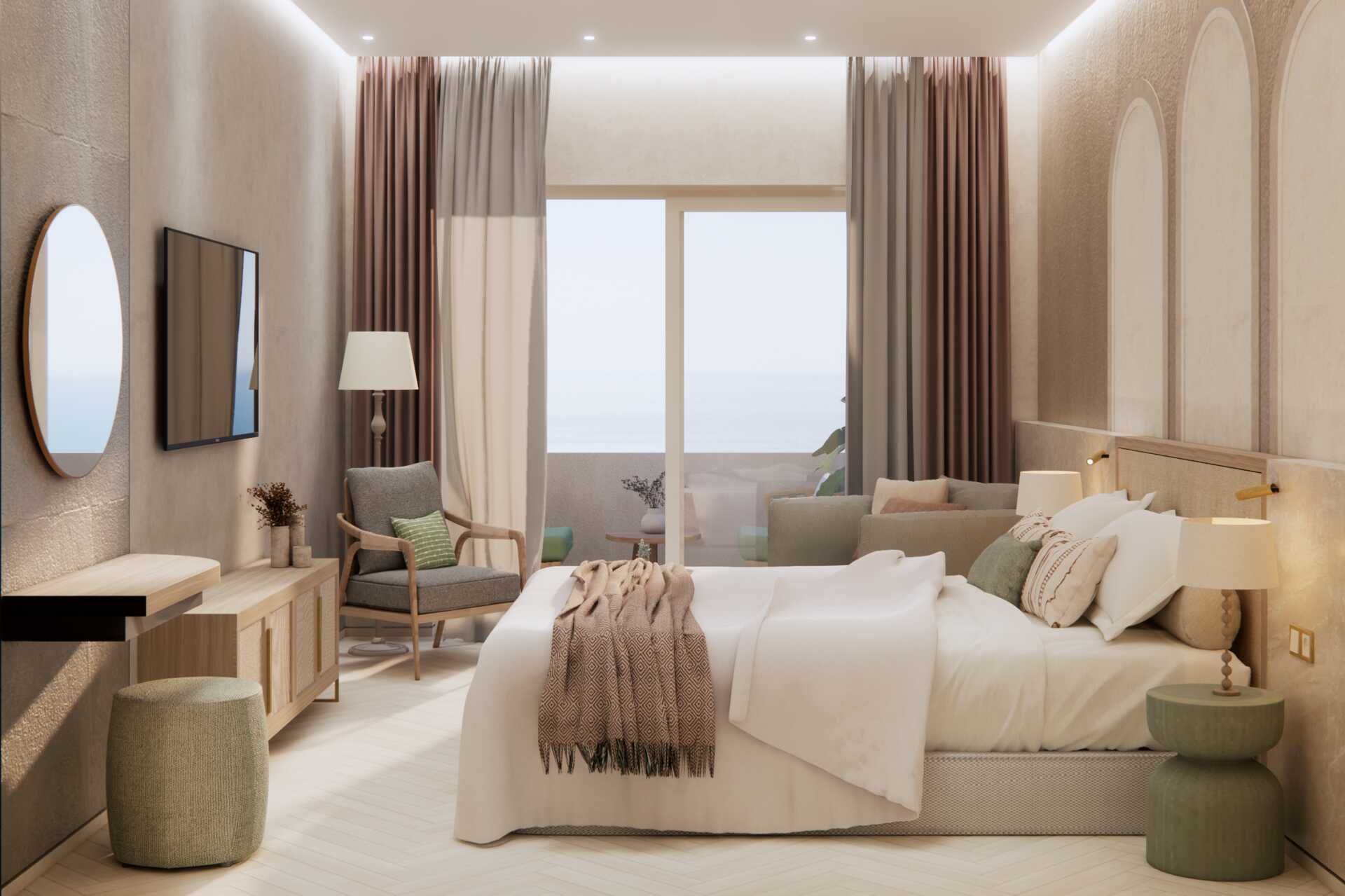 Dubbelrum med balkong. En dubbelsäng. Wifi, luftkonditionering och deponering ingår. Kylskåp. Tv med internationella kanaler. Badrockar och tofflor. Hårtork. Badrum med dusch och wc. Städning 7 ggr/vecka.