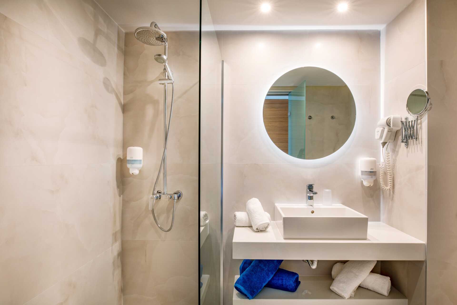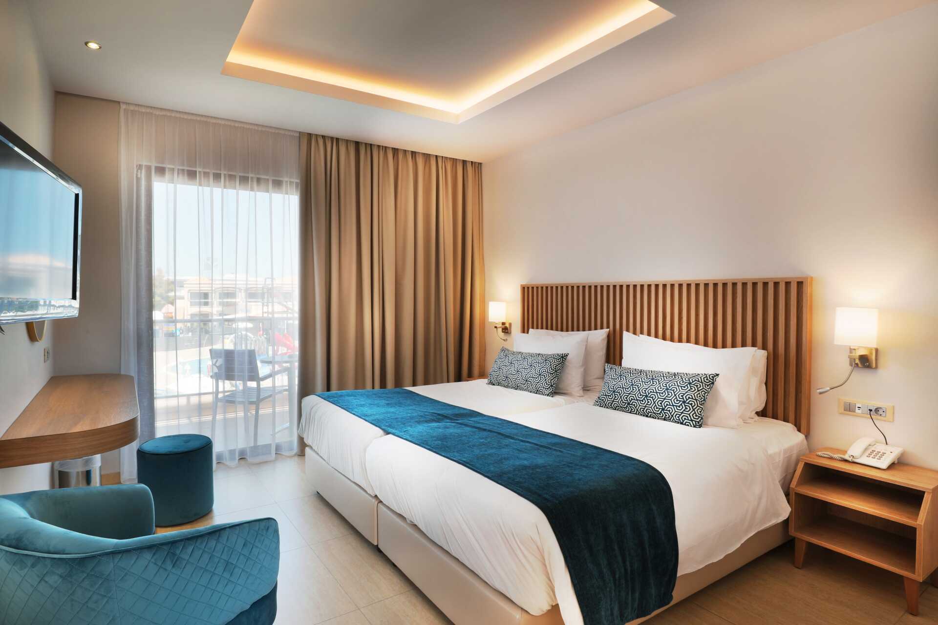 Tillgänglighetsanpassade dubbelrum med balkong, vissa med poolutsikt. Två enkelsängar. Wifi, deponering och luftkonditionering ingår. Luftkonditioneringen är centralstyrd och sätts på vid behov (kan då regleras i rummet). Kylskåp. Vattenkokare samt kaffe och te. Tv med internationella kanaler. Hårtork. Badrum med dusch och wc. Städning 7 ggr/vecka, varav en dag med enklare städning. Rummen varierar i storlek. Alla rummen ligger i huvudbyggnaden med hiss.