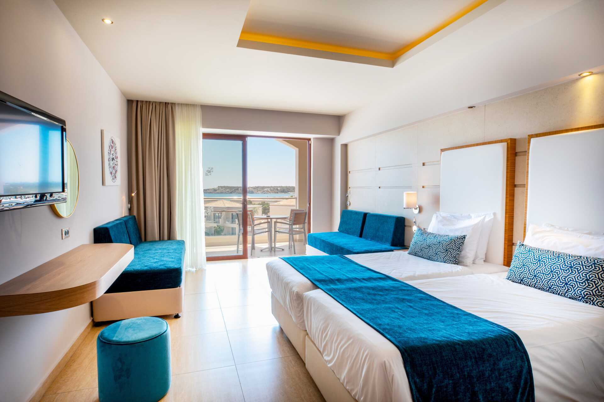 Juniorsvit med stor balkong med havsutsikt. Två enkelsängar. Möjlighet till extrabäddar i bäddsoffa. Wifi, deponering och luftkonditionering ingår. Luftkonditioneringen är centralstyrd och sätts på vid behov (kan då regleras i juniorsviten). Kylskåp. Vattenkokare samt kaffe och te. Tv med internationella kanaler. Hårtork. Badrum med dusch och wc. Städning 7 ggr/vecka, varav en dag med enklare städning.