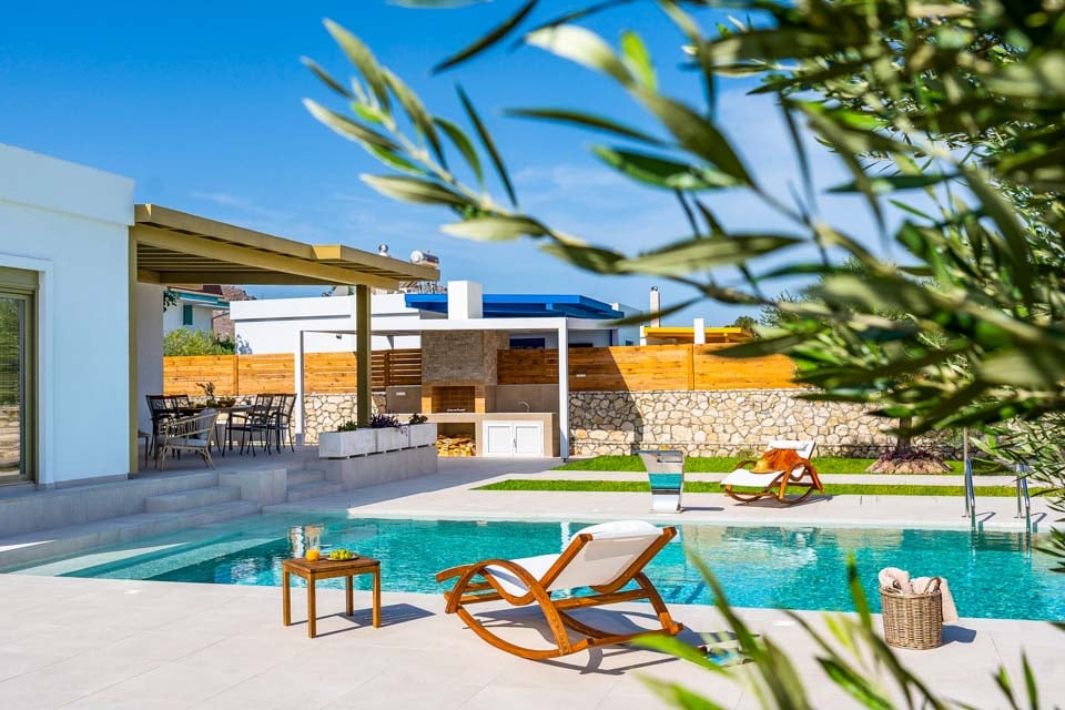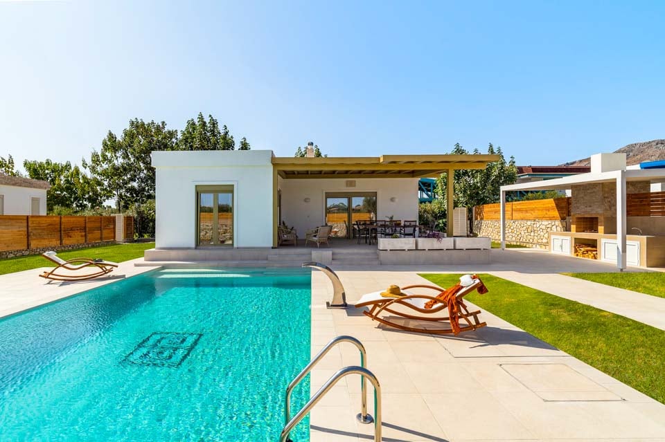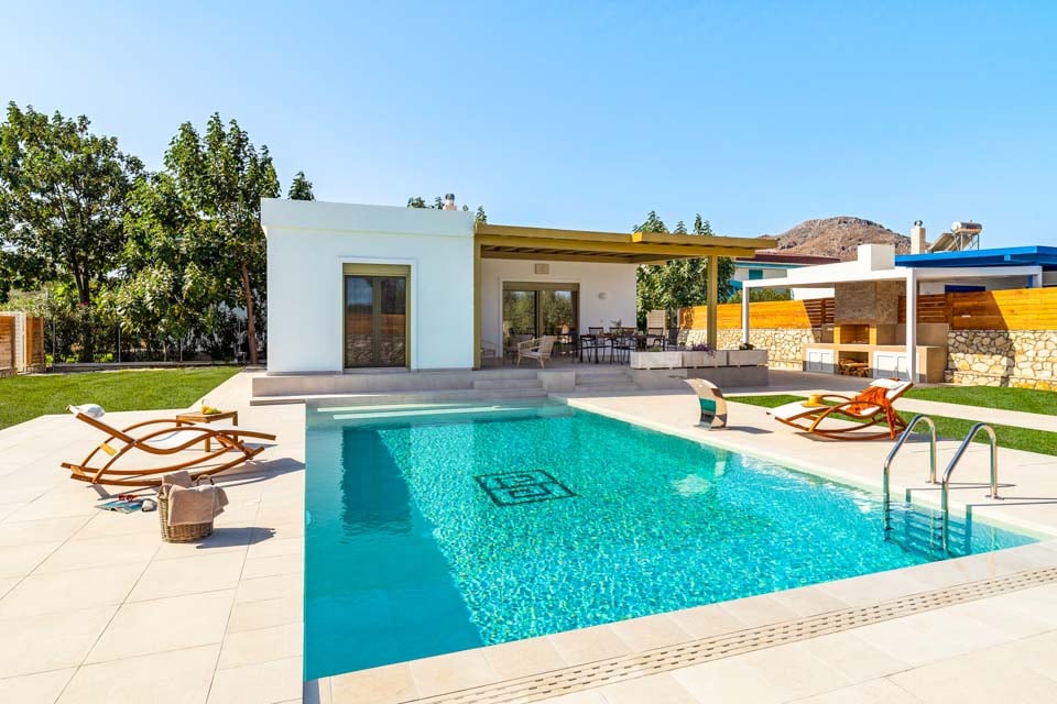 Serenity Elia är en del av ett underbart nytt villakomplex nära stranden i Kolymbia, en lugn semesterort belägen på öns östkust. Villan erbjuder en pittoresk och lugn miljö med böljande bergsutsikt, perfekt för en avkopplande villasemester på Rhodos för hela familjen. Villan är fördelad på ett plan och har två sovrum med eget badrum och egen TV, samt en bäddsoffa för två personer i vardagsrummet. Det finns ett vardagsrum med öppen planlösning, ett vitkalkat kök och en matsal med lyxiga detaljer, inklusive en marmordekoration med platt-TV och en öppen spis i glas. Skjutdörrar leder till den möblerade terrassen där du njuter av medelhavssolen, tillsammans med den egeiska brisen och en djup känsla av avskildhet och ensamhet. Tomten är vacker, med gräsmattor, en inbyggd grill och en lugn pool med vattenfall och moderna solstolar.