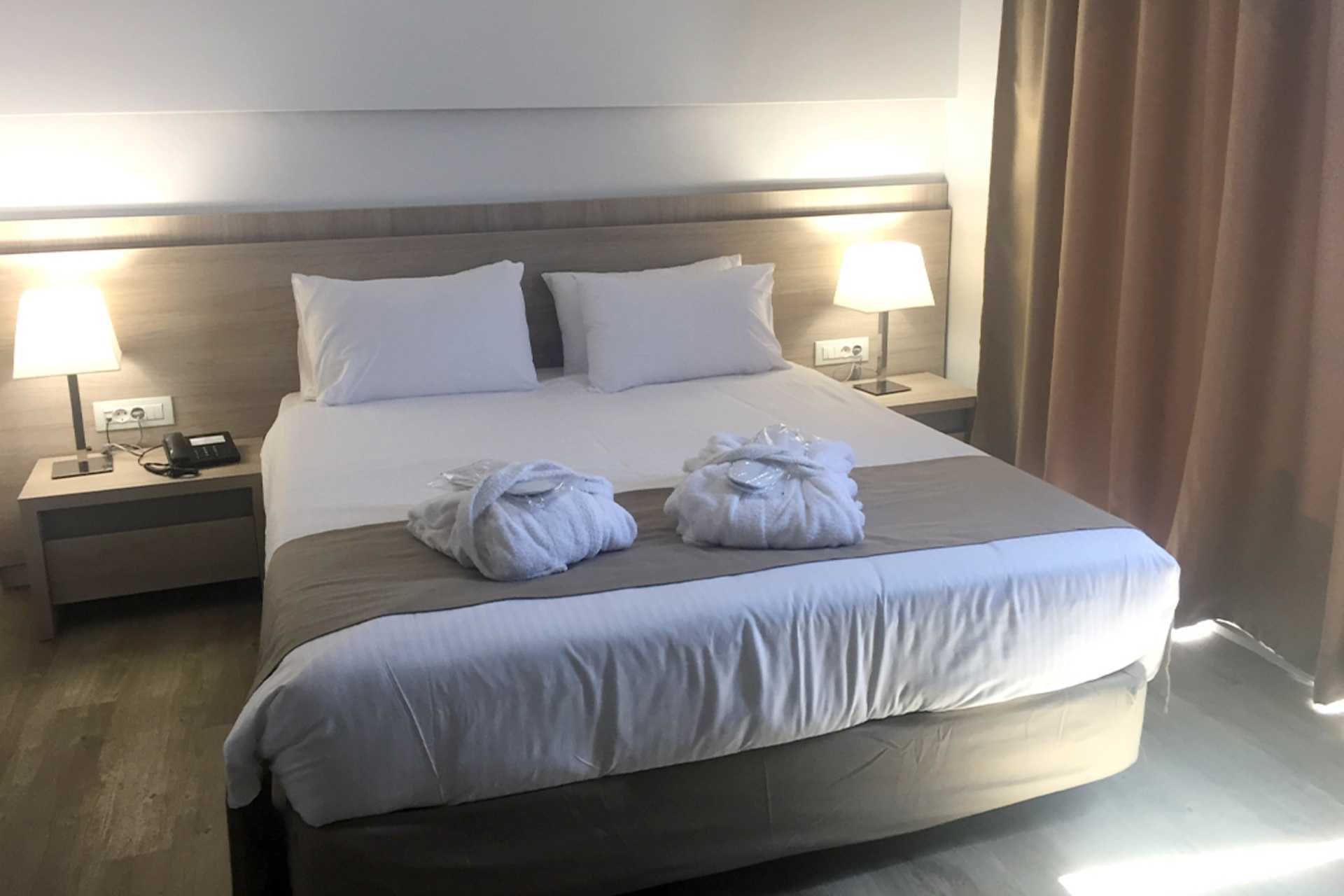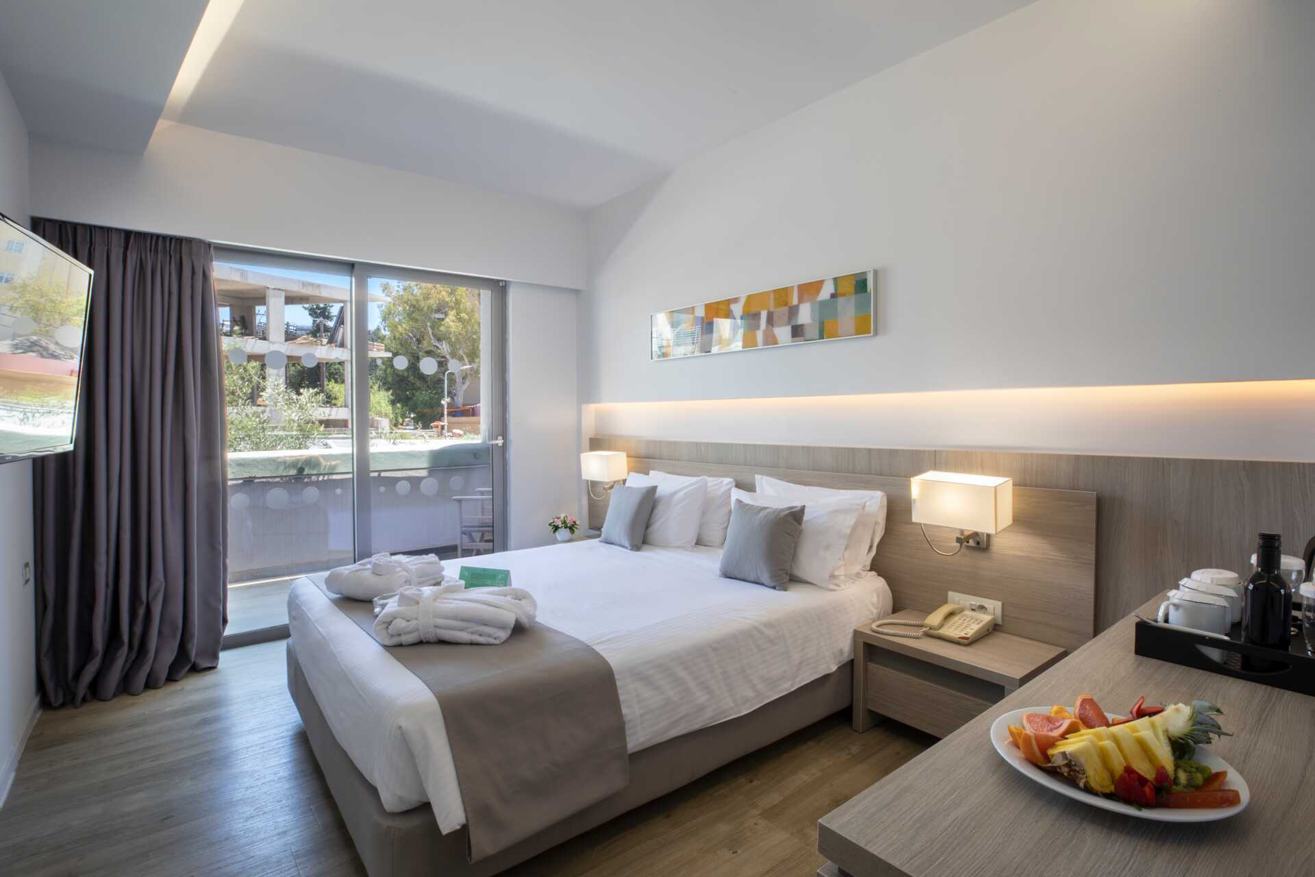 Dubbelrum med balkong. Vissa balkonger med havsutsikt och vissa med begränsad havsutsikt. En dubbelsäng eller två enkelsängar. Möjlighet till extrabädd i bäddsoffa. Wifi, luftkonditionering och deponering ingår. Minibaren på rummet ingår, fylls dagligen på med vin, öl, läsk, juice och vatten. Vattenkokare samt kaffe och te. Tv med internationella kanaler. Tofflor. Hårtork. Badrum med badkar eller dusch samt wc. Städning 7 ggr/vecka.