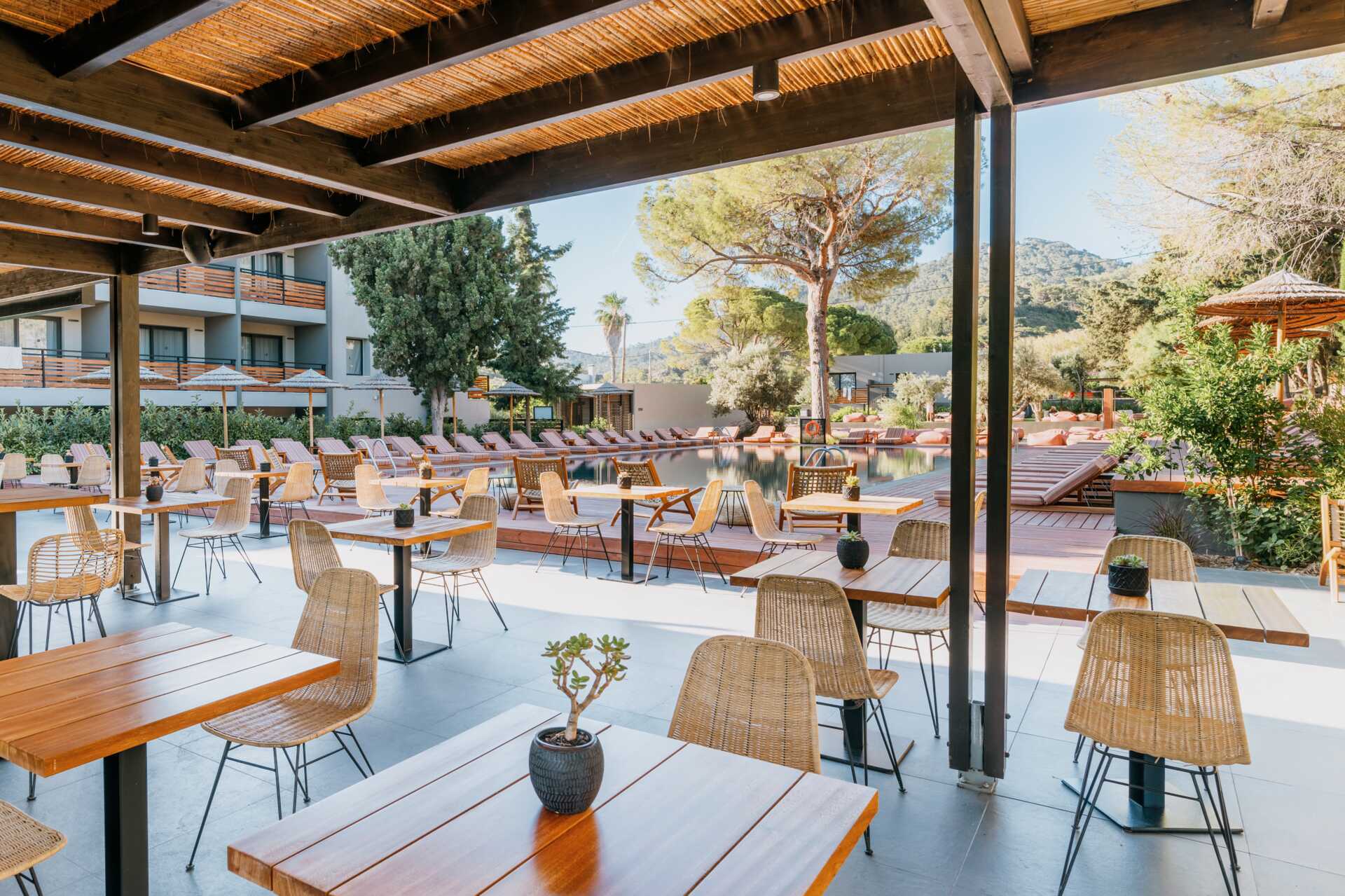 Dubbelrum i bungalower med markterrass. Två enkelsängar eller en dubbelsäng. Möjlighet till extrabädd i bäddsoffa. Luftkonditionering, deponering och wifi ingår. Kylskåp. Tv med internationella kanaler. Hårtork. Badrum med dusch och wc. Städning 7 ggr/vecka.
