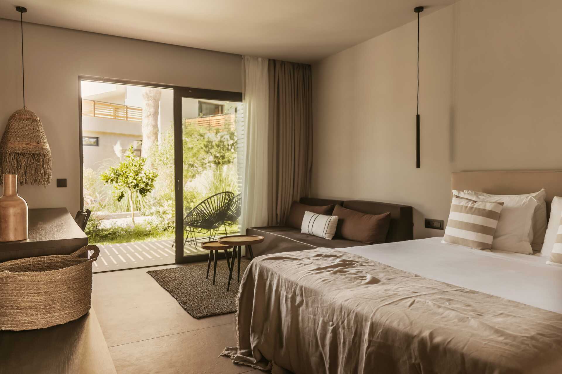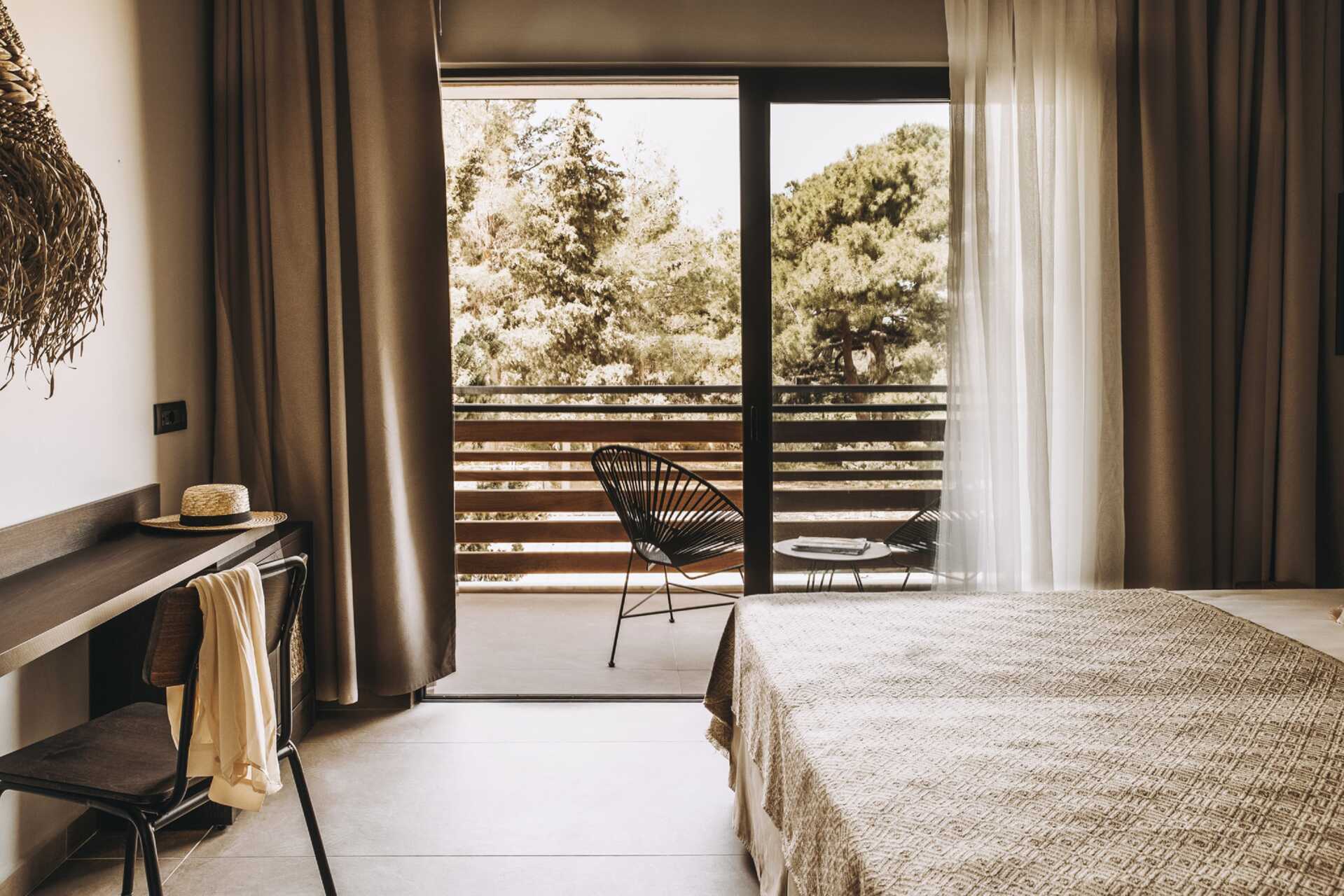 Dubbelrum med balkong eller terrass. En dubbelsäng eller två enkelsängar. Möjlighet till extrabädd i bäddsoffa. Luftkonditionering, deponering och wifi ingår. Kylskåp. Tv med internationella kanaler. Hårtork. Badrum med dusch och wc. Städning 7 ggr/vecka.