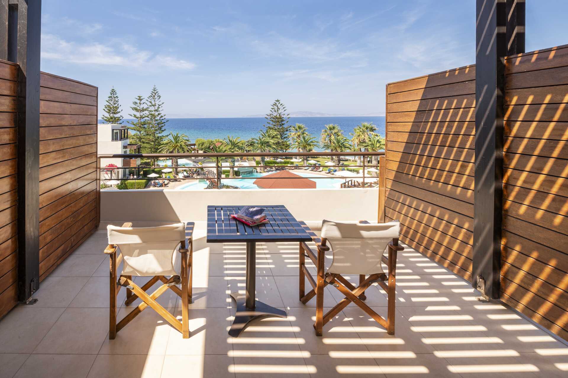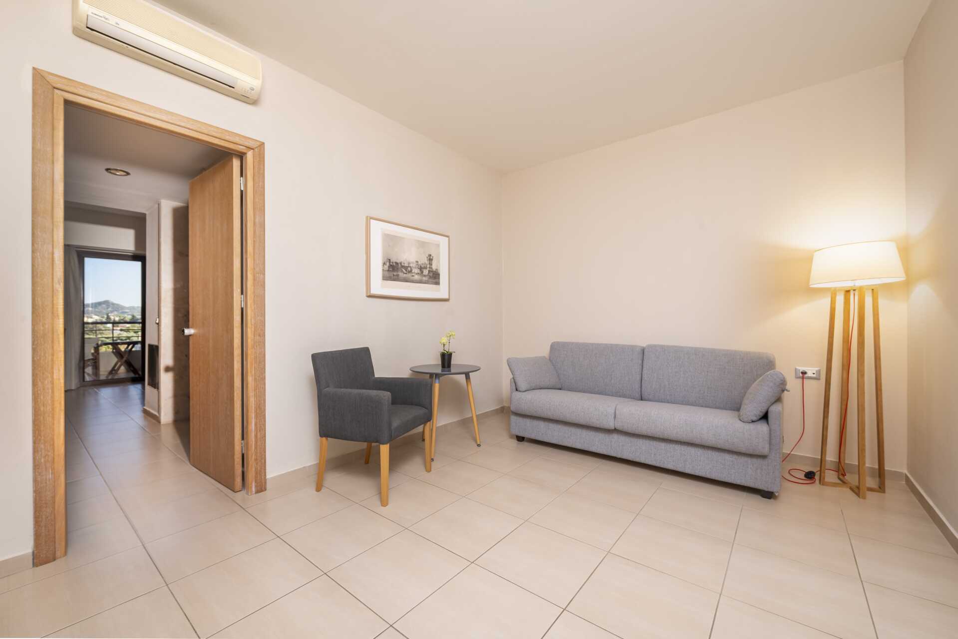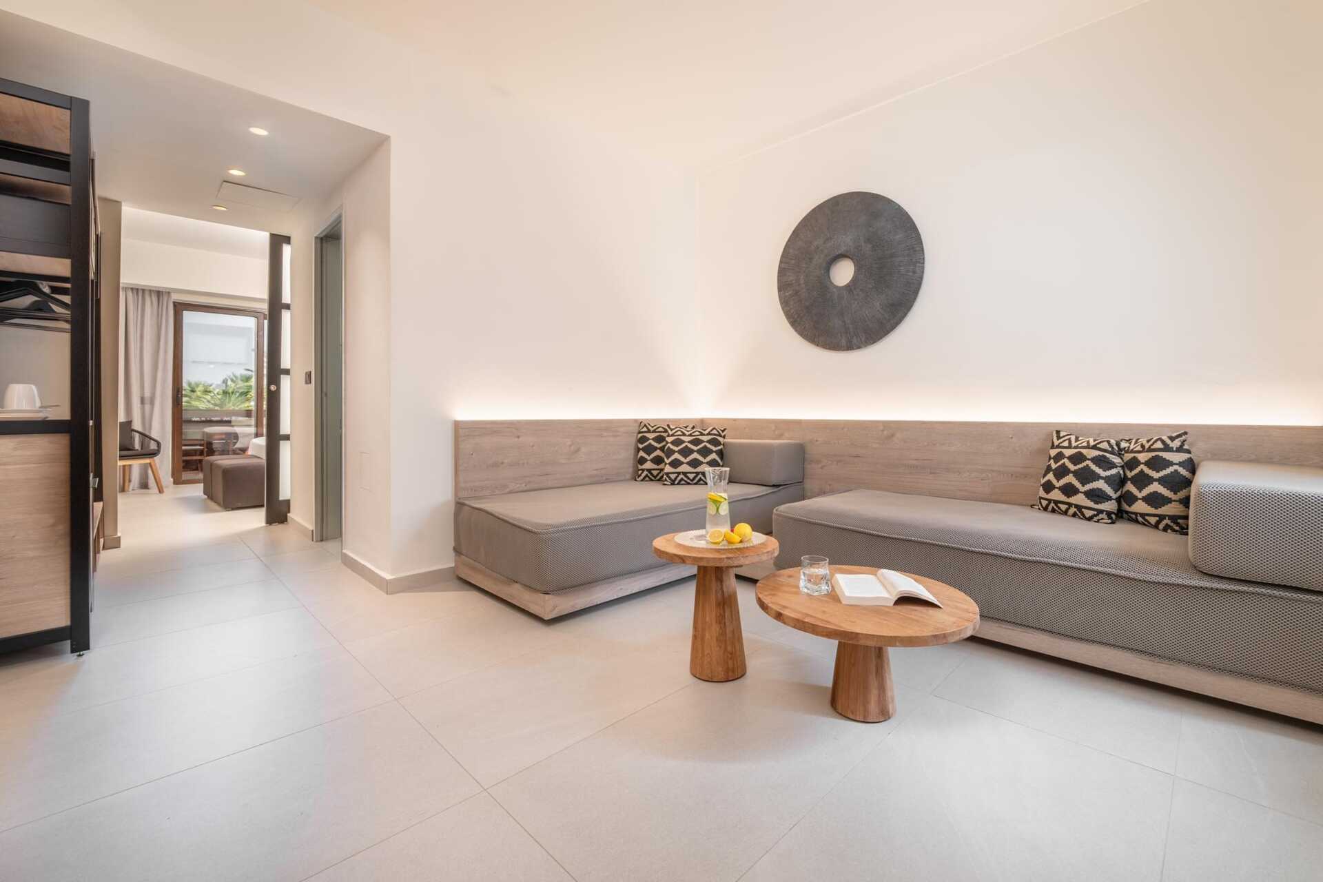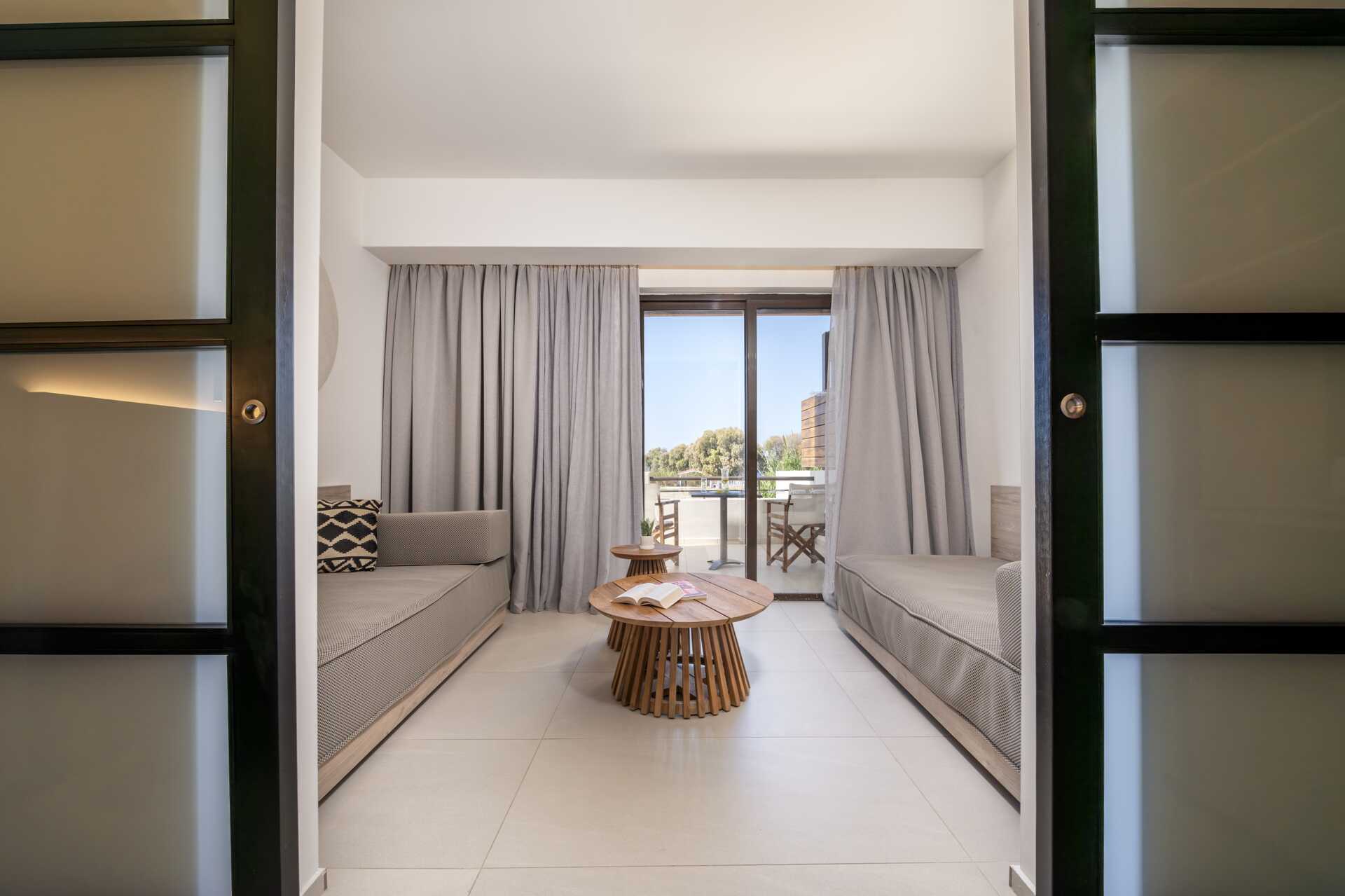 Svit med balkong eller terrass, vissa med havsutsikt. Sviten består av ett sovrum och ett vardagsrum, några rum med dörr mellan rummen och några rum med en frostad skjutdörr. Två enkelsängar. Möjlighet till extrabäddar i två bäddsoffor. Wifi, luftkonditionering och deponering ingår. Kylskåp. Vattenkokare samt kaffe och te. Tv med internationella kanaler. Hårtork. Badrum med badkar eller dusch samt wc. Städning 6 ggr/vecka.