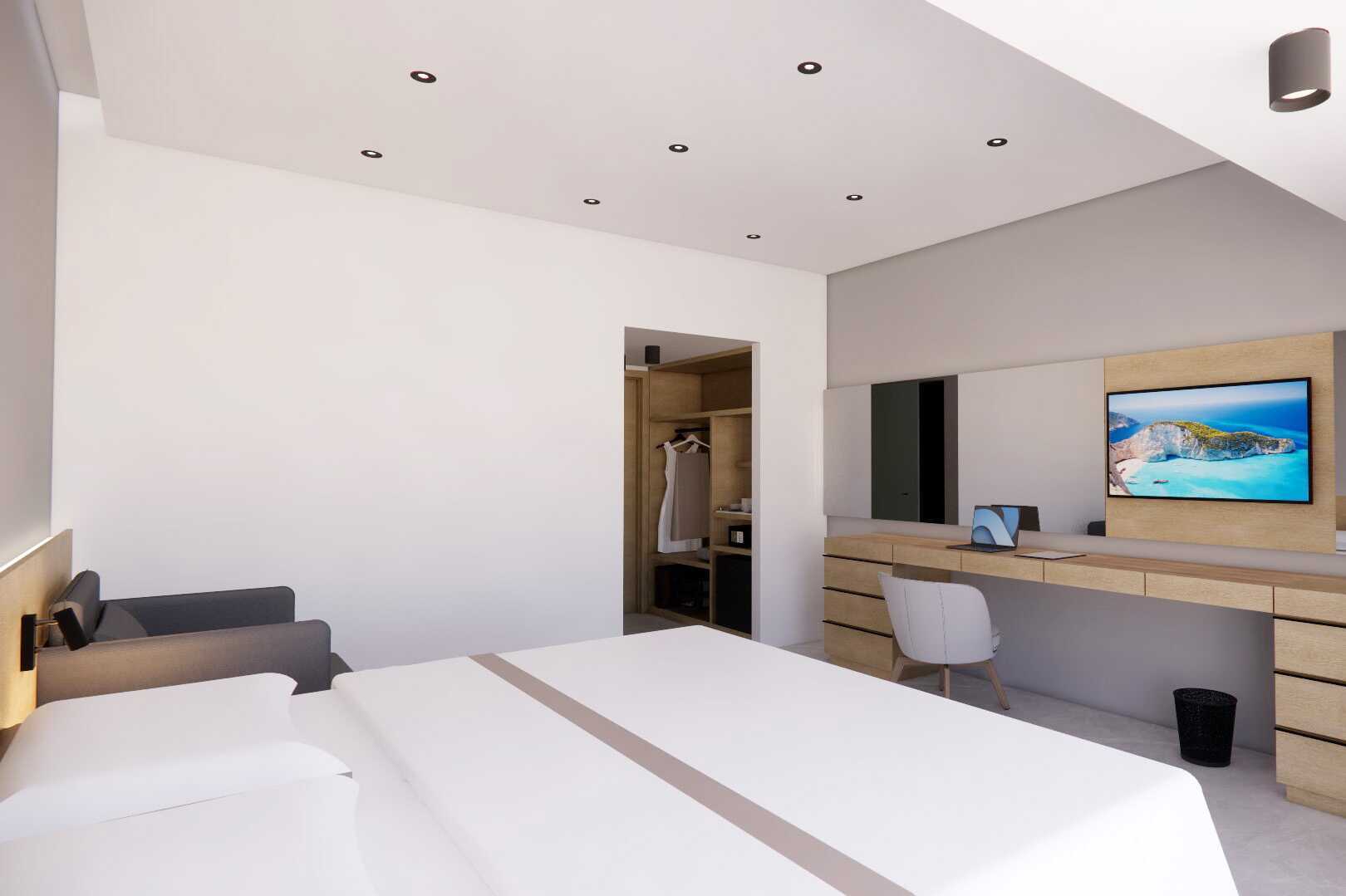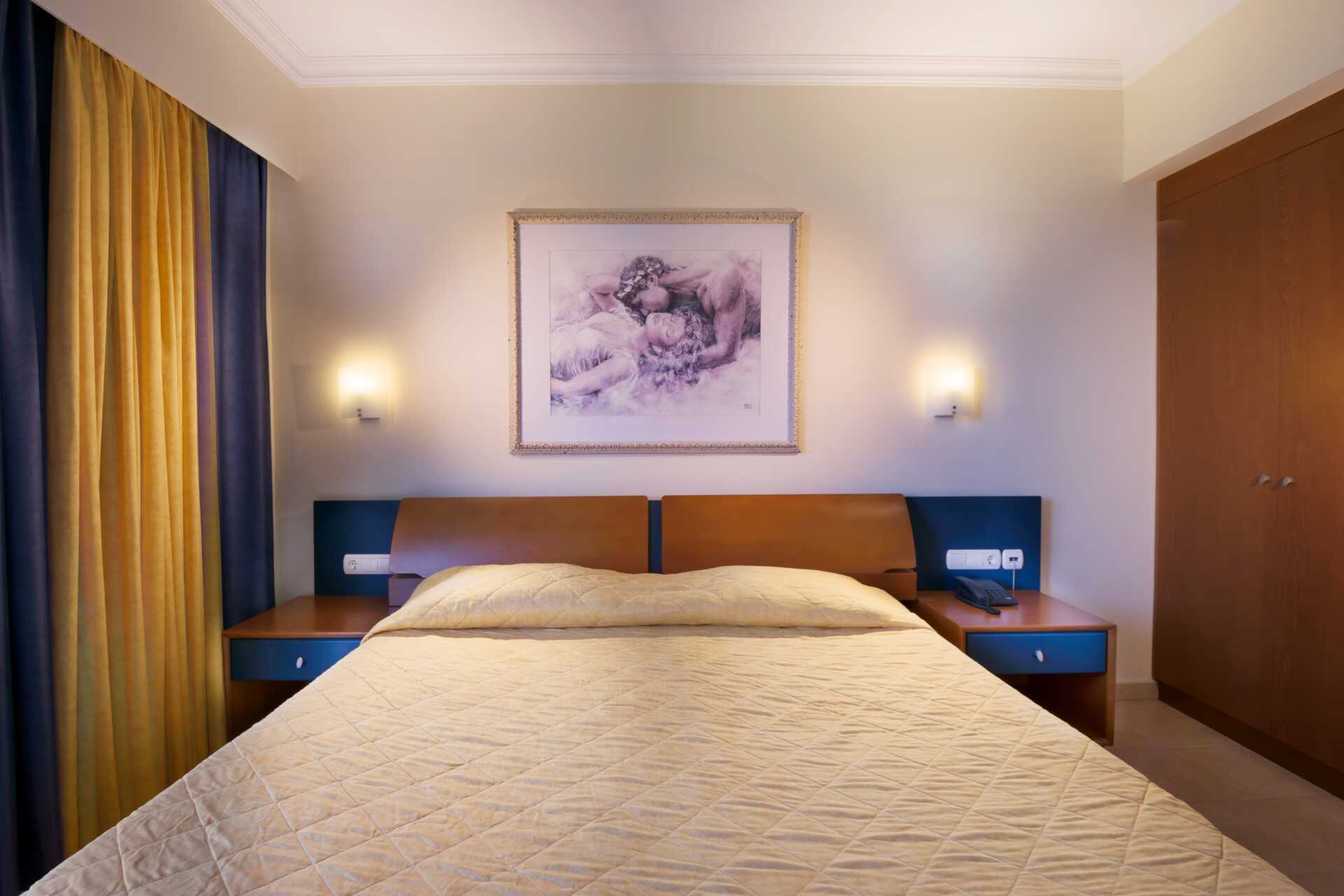 Tvårumslägenhet med balkong, vissa med havsutsikt. Lägenheterna ligger i hotelldelarna Beachfront Wing, Garden Ving, Zeus och Hera. Ett sovrum och ett kombinerat vardagsrum med minikök. Två enkelsängar. Möjlighet till extrabäddar i två bäddsoffor eller i två enkelsängar. Minikök med kylskåp, kokplattor, mikrovågsugn, kaffebryggare, brödrost, vattenkokare och enkel köksutrustning. Wifi och luftkonditionering ingår. Luftkonditioneringen styrs centralt dygnet runt av hotellet under juni till september. Deponering mot avgift. Tv med internationella kanaler. Badrockar. Hårtork. Badrum med badkar och wc. Städning 7 ggr/vecka. Barn under två år räknas in i maxantalet personer i lägenheten.