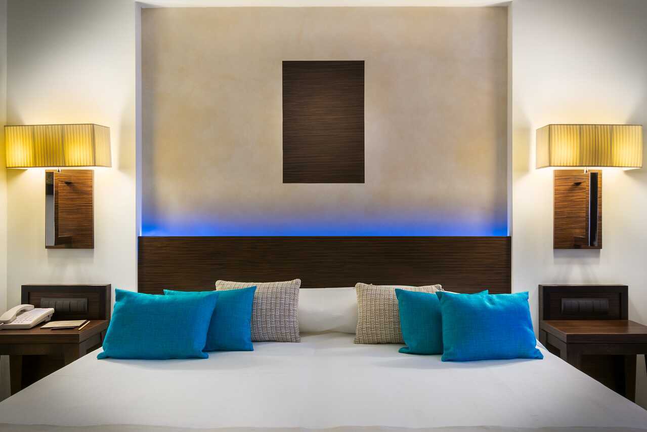 Deluxerum med balkong eller terrass och havsutsikt. En dubbelsäng eller två enkelsängar. Möjlighet till extrabädd i hopvikbar säng eller bäddsoffa. Wifi, luftkonditionering (under högsäsong) och deposition ingår. Kylskåp, en flaska vin och en flaska vatten ingår vid ankomst. Vattenkokare samt kaffe och te. Tv med internationella kanaler. Badrockar och tofflor. Hårtork. Badrum med dusch och wc. Städning 7 ggr/vecka.