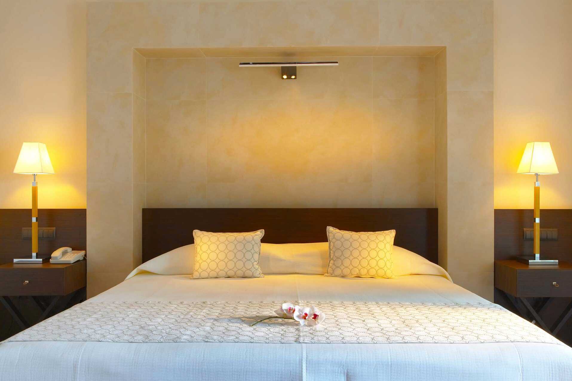 Dubbelrum med balkong och havsutsikt. En dubbelsäng eller två enkelsängar. Wifi, luftkonditionering (under högsäsong) och deponering ingår. Kylskåp, en flaska vin och en flaska vatten ingår vid ankomst. Vattenkokare samt kaffe och te. Tv med internationella kanaler. Badrockar och tofflor. Hårtork. Badrum med badkar och wc. Städning 7 ggr/vecka. Barn under två år räknas in i maxantalet personer i rummet.