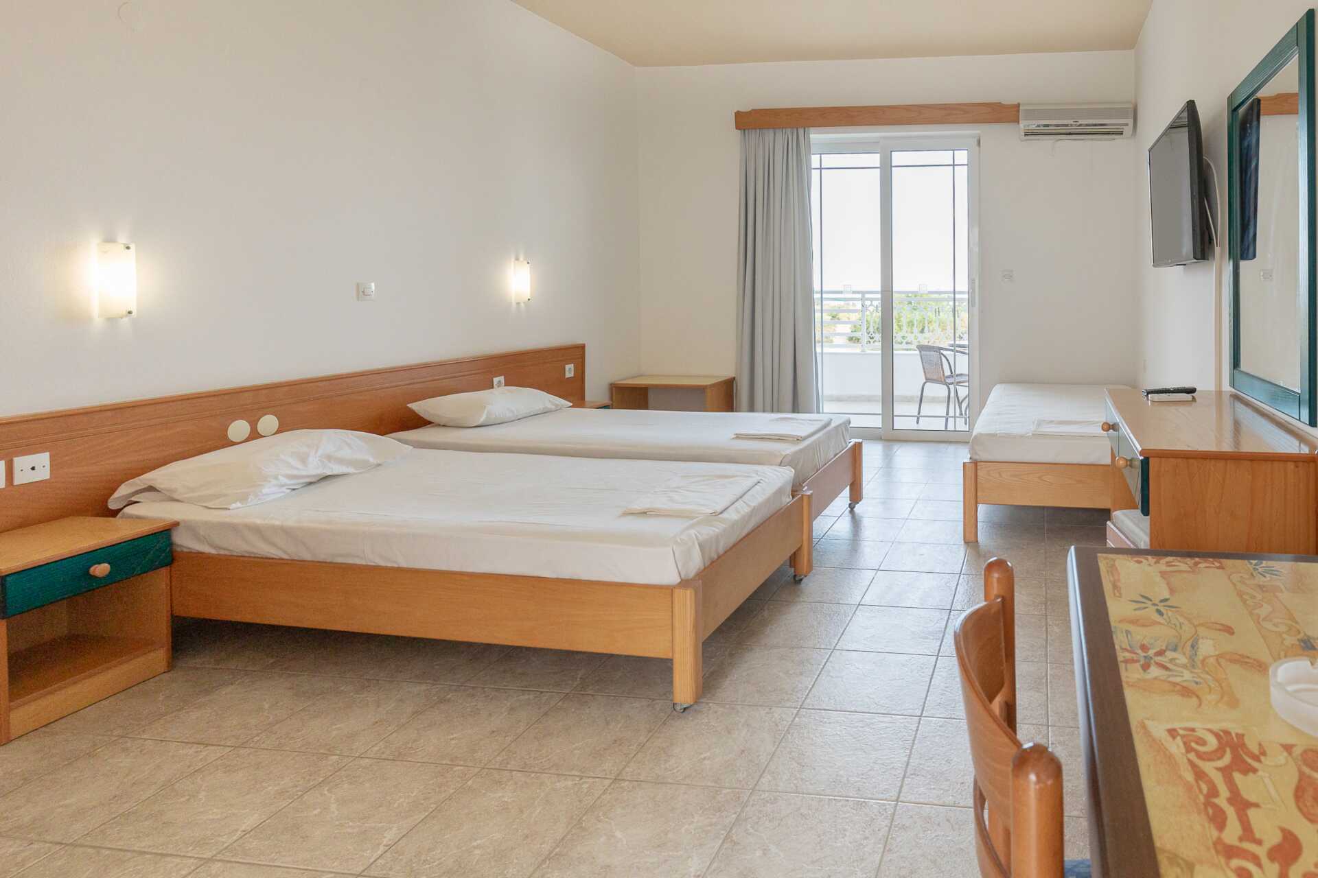 Enrumslägenhet med balkong eller markbalkong. Sovrum kombinerat med minikök. En dubbelsäng eller två enkelsängar. Möjlighet till extrabädd i enkelsäng. Wifi och deponering ingår. Luftkonditionering mot avgift. Minikök med kylskåp, kokplattor, vattenkokare och enkel köksutrustning. Tv med internationella kanaler. Hårtork. Badrum med badkar eller dusch samt wc. Städning 5 ggr/vecka.