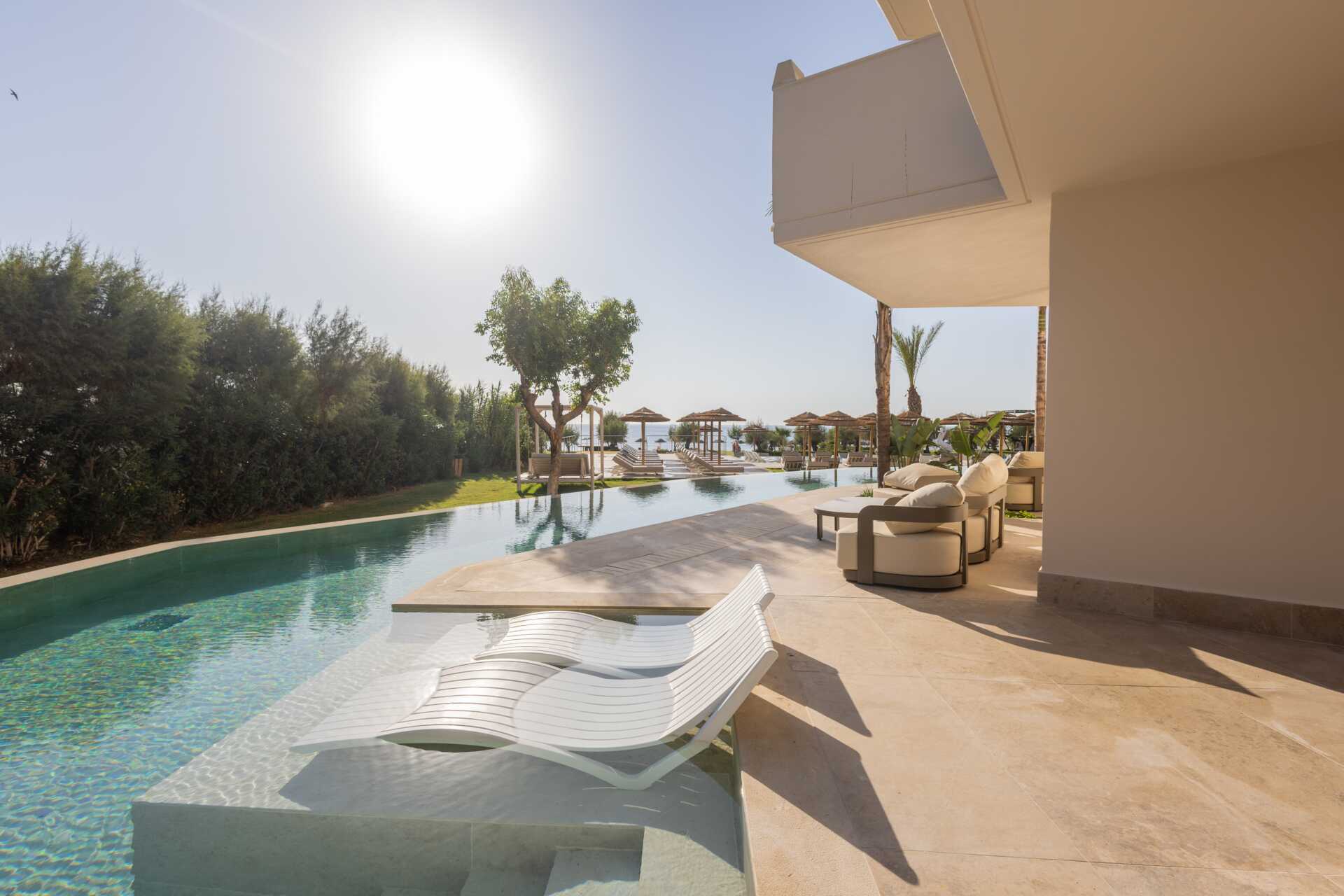 Executivesvit med delad pool vid uteplatsen. Två sovrum och ett vardagsrum. En dubbesläng i varje sovrum och möjlighet till extrabäddar i bäddsoffa. Wifi, luftkonditionering och deponering ingår. Kylskåp. Vattenkokare samt kaffe och te. Nespressomaskin. Tv med internationella kanaler. Badrockar och tofflor. Hårtork. Badrum med dusch och wc. Städning 7 ggr/vecka.