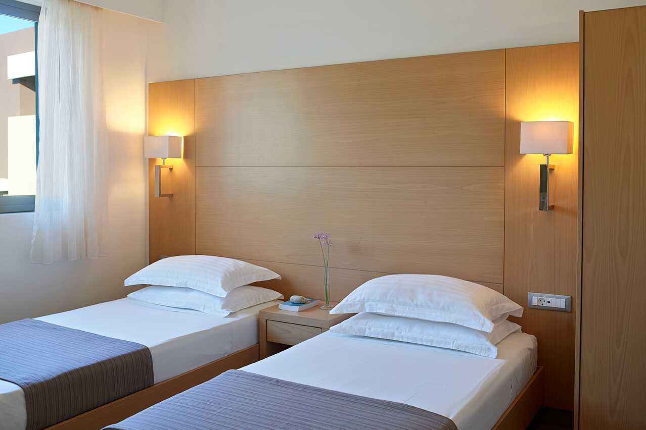 Dubbelrum med balkong eller terrass. En dubbelsäng eller två enkelsängar. Möjlighet till extrabädd i enkelsäng. Wifi, luftkonditionering och deponering ingår. Kylskåp. Vattenkokare samt kaffe och te. Tv med internationella kanaler. Strykjärn och strykbräda. Hårtork. Badrum med dusch samt wc. Städning 7ggr/vecka.