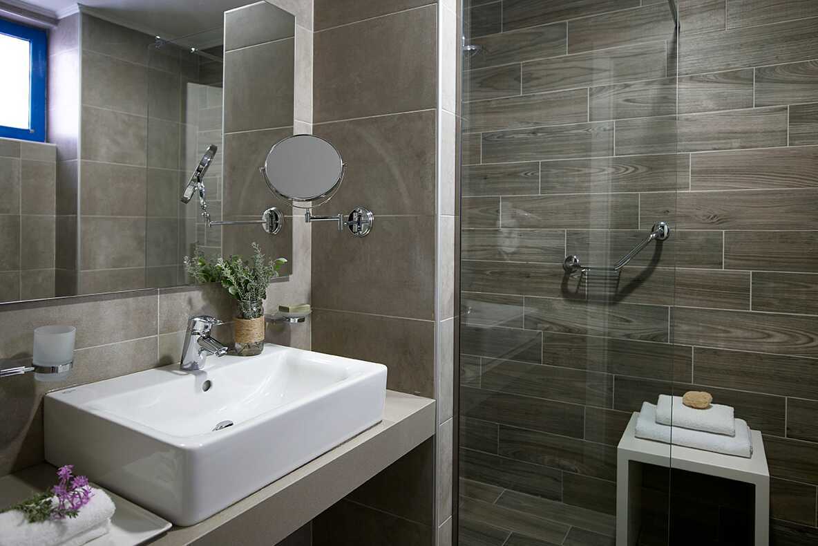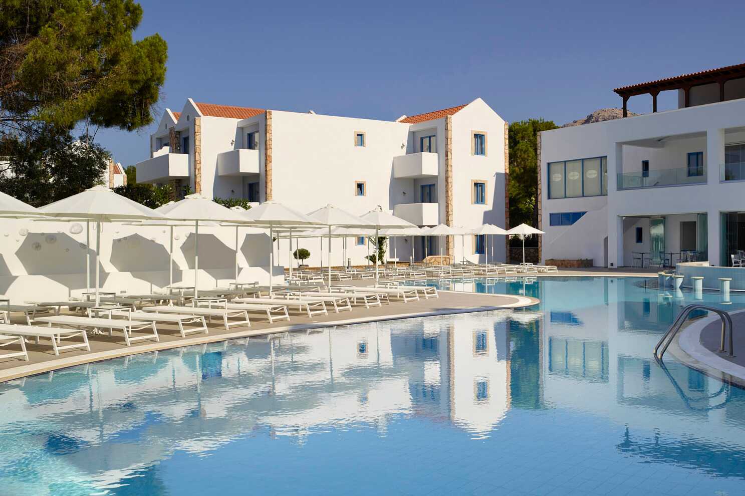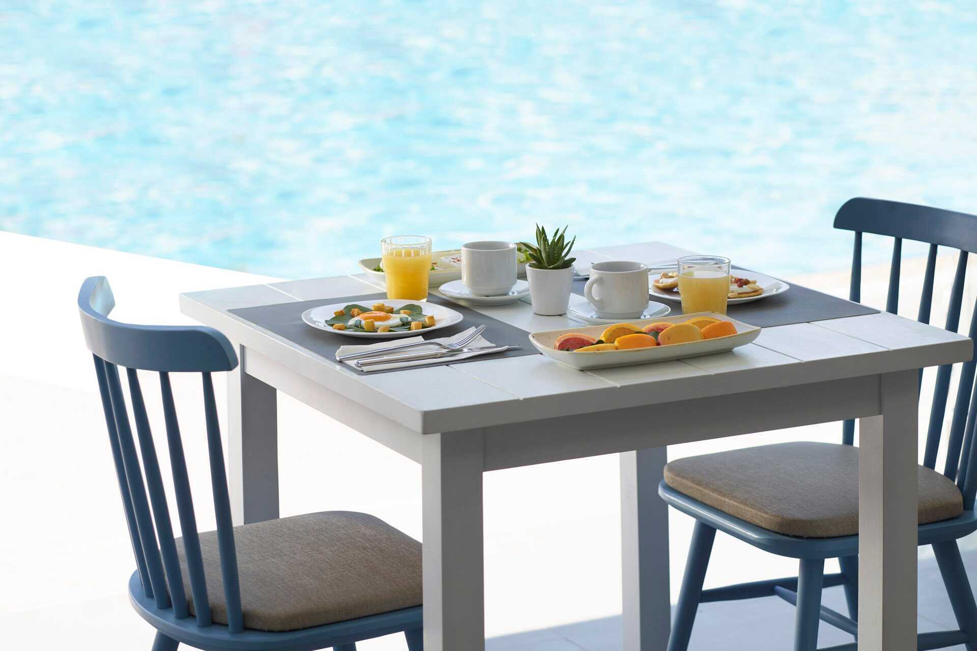 Enrumslägenhet med balkong eller terrass. Sovrum kombinerat med minikök. En dubbelsäng och, i vissa lägenheter, möjlighet till extrabädd i enkelsäng. Minikök med kylskåp, kokplattor, vattenkokare, smörgåsgrill, brödrost och enkel köksutrustning. Wifi och luftkonditionering ingår. Deponering mot avgift. Tv med internationella kanaler. Strykjärn och strykbräda. Hårtork. Badrum med dusch och wc. Städning 6 ggr/vecka.