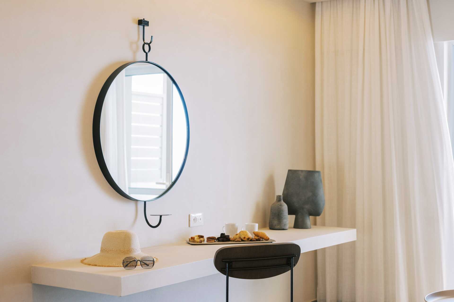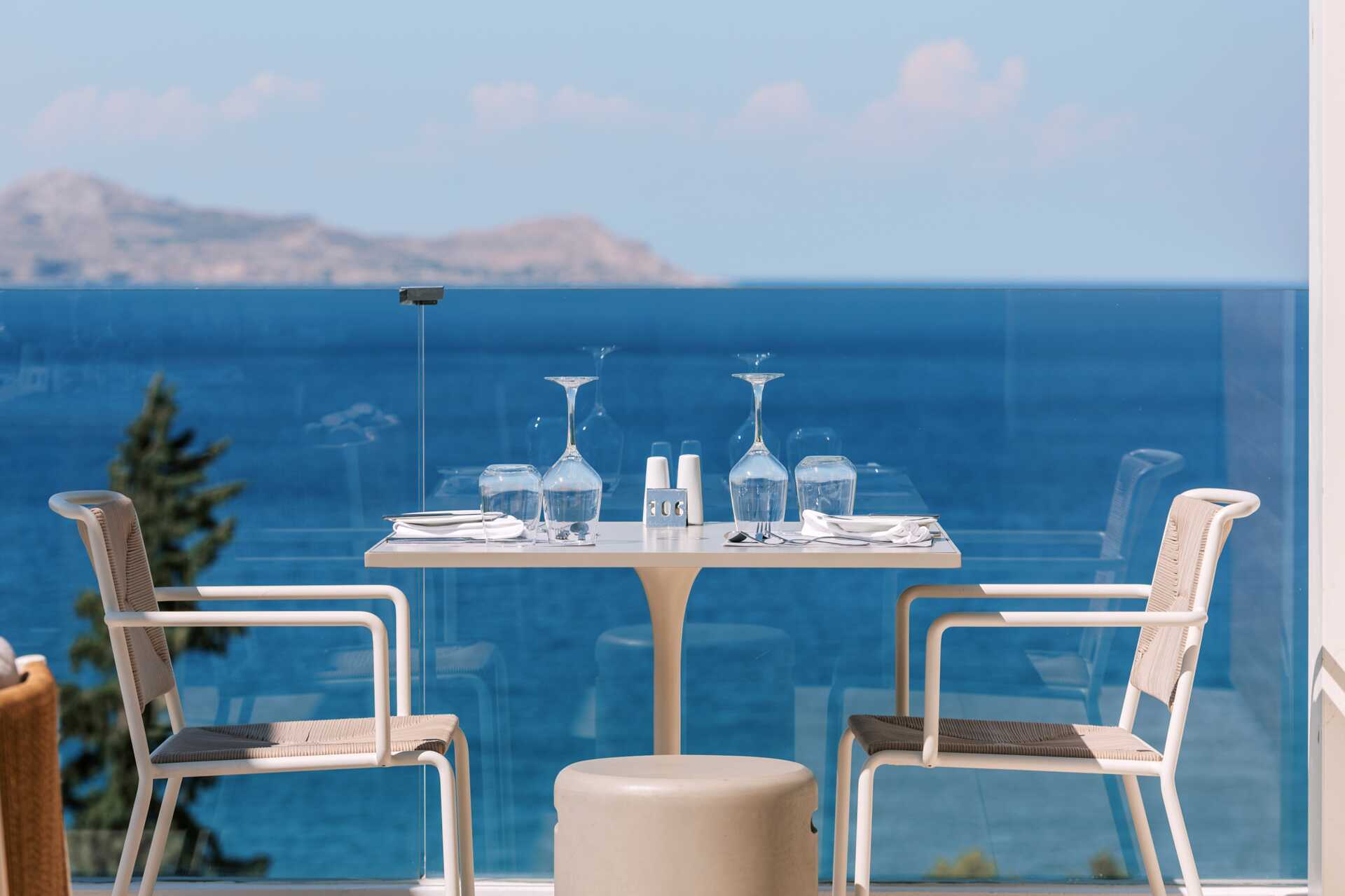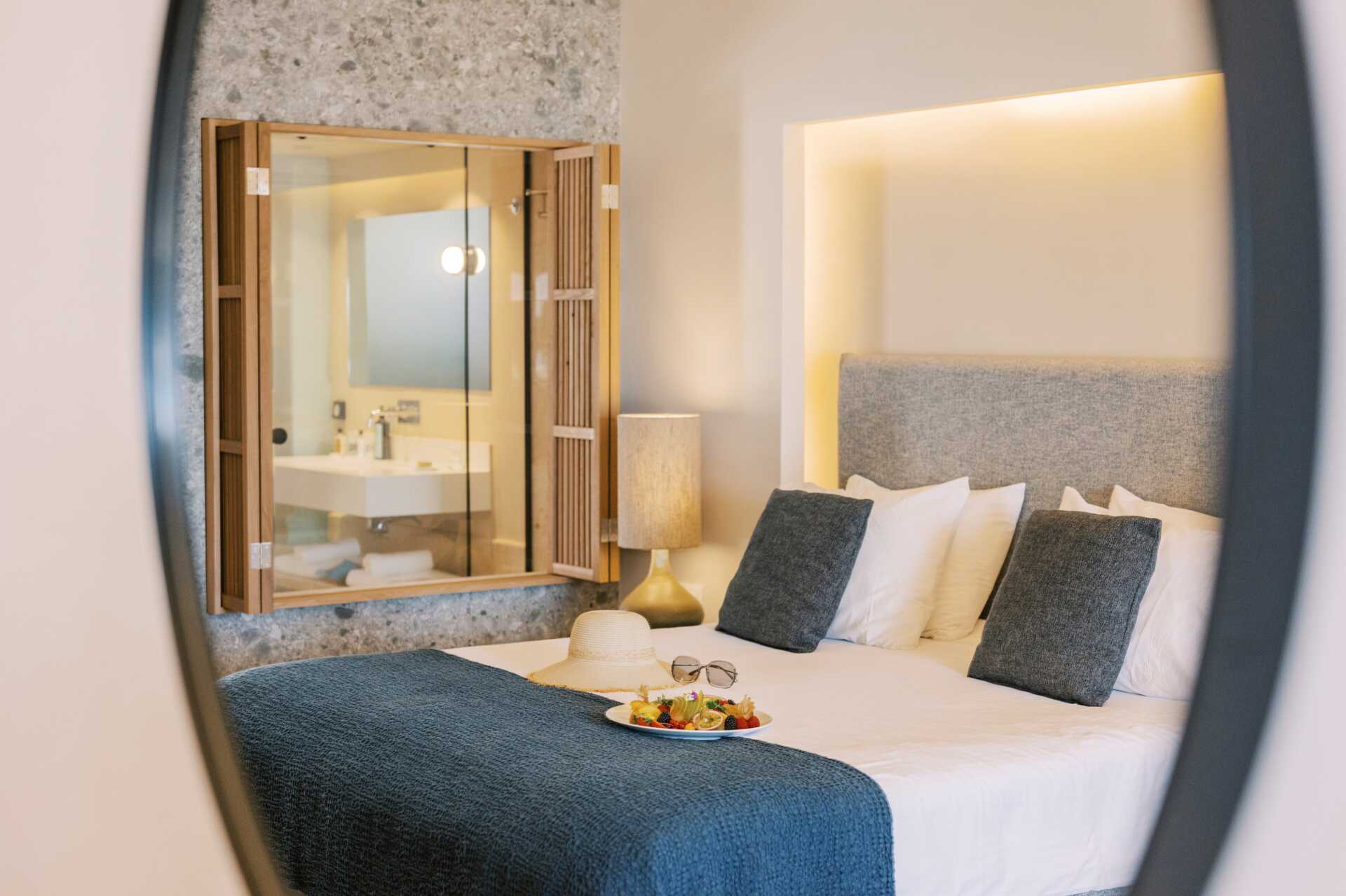 Dubbelrum med balkong eller terrass, vissa med havsutsikt. En dubbelsäng eller två enkelsängar. Wifi, luftkonditionering och deponering ingår. Kylskåp. Vattenkokare samt kaffe och te. Nespresso kaffemaskin - kapslar ingår och fylls på varje dag. Tv med internationella kanaler. Hårtork. Tofflor. Badrum med badkar eller dusch samt wc. Städning 7 ggr/vecka. Barn under två är räknas in i maxantalet personer i rummet.