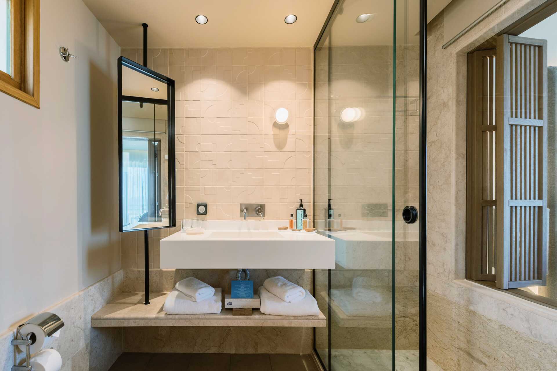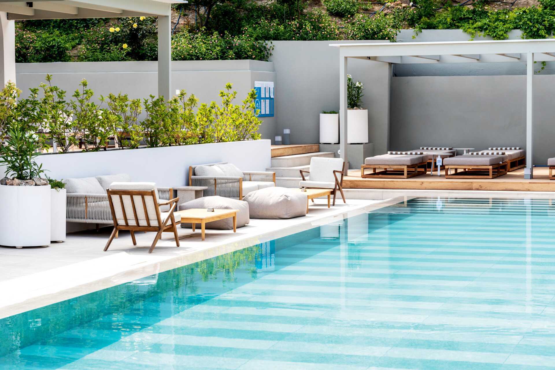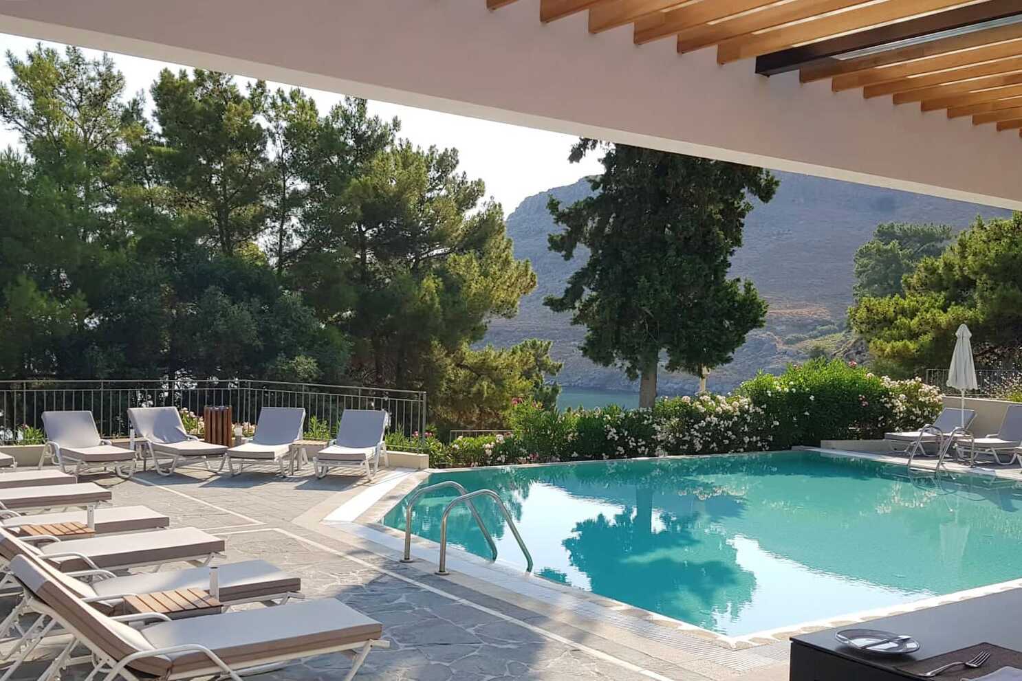 Dubbelrum med balkong eller terrass, vissa med havsutsikt. En dubbelsäng eller två enkelsängar. Wifi, luftkonditionering och deponering ingår. Kylskåp. Vattenkokare samt kaffe och te. Nespresso kaffemaskin - kapslar ingår och fylls på varje dag. Tv med internationella kanaler. Hårtork. Tofflor. Badrum med badkar eller dusch samt wc. Städning 7 ggr/vecka. Barn under två är räknas in i maxantalet personer i rummet.