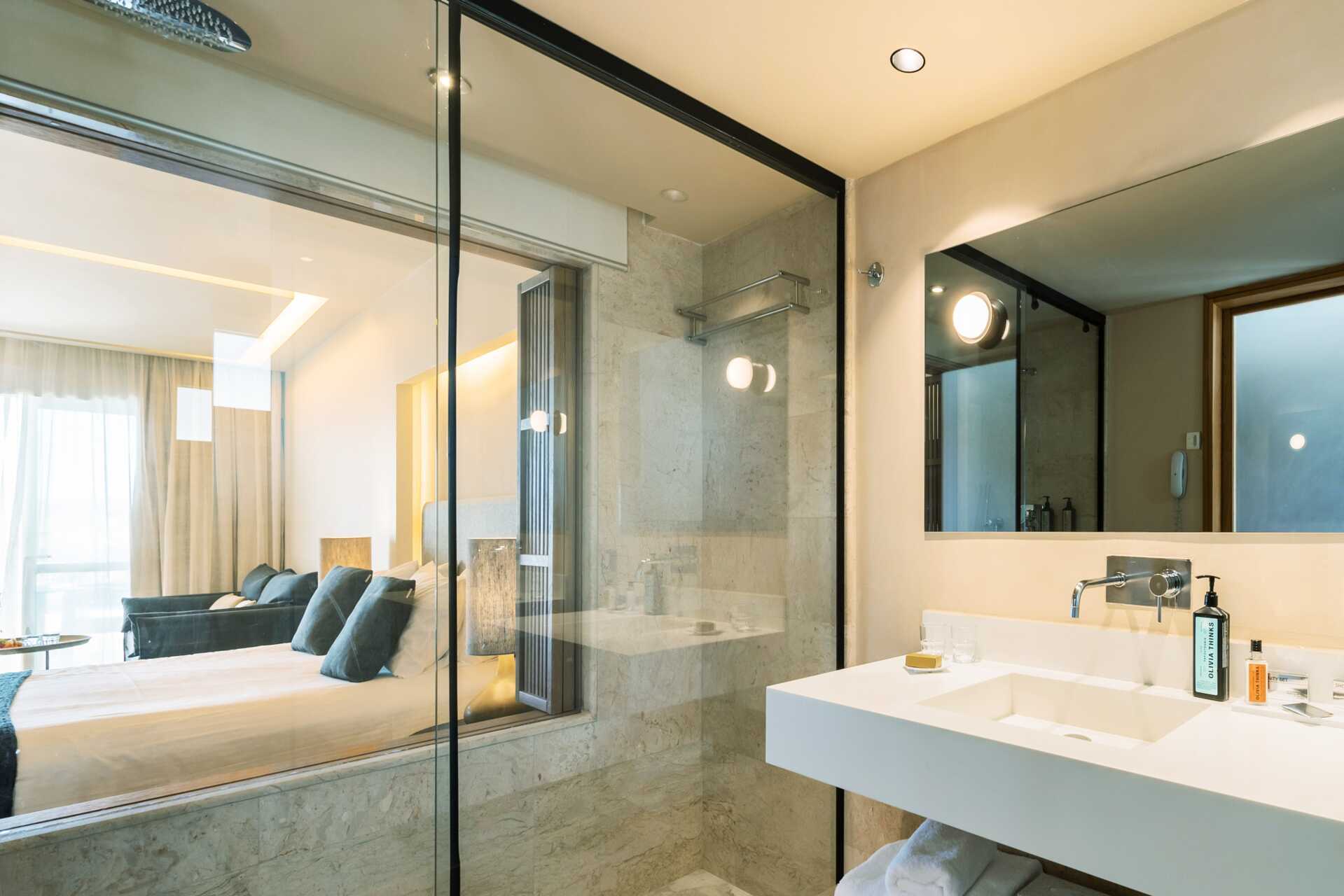 Juniorsvit med balkong eller terrass med havsutsikt. En dubbelsäng eller två enkelsängar. Wifi, luftkonditionering och deponering ingår. Kylskåp. Vattenkokare samt kaffe och te. Nespresso kaffemaskin - kapslar ingår och fylls på varje dag. Tv med internationella kanaler. Hårtork. Tofflor. Badrum med badkar eller dusch samt wc. Städning 7 ggr/vecka. Barn under två år räknas in i maxantalet personer i rummet.