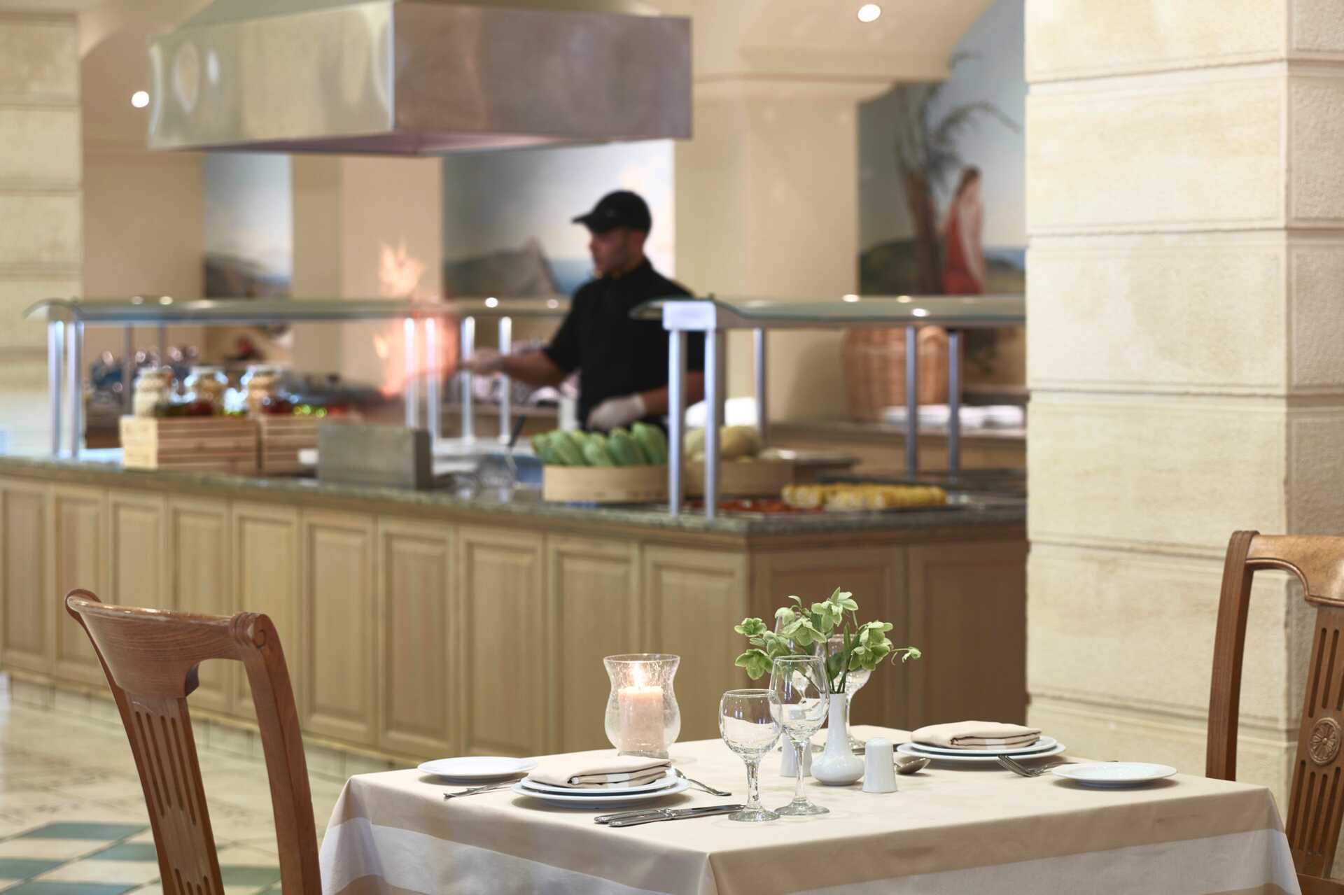 För gäster som stannar en vecka ingår en middag i någon av restaurangerna Thalassa eller L’Osteria. Stannar du två veckor på hotellet ingår två middagar. Observera att ändringar kan förekomma. Som identifikation är det obligatoriskt att bära hotellets armband. All Inclusive gäller till kl. 12.00 på avresedagen.