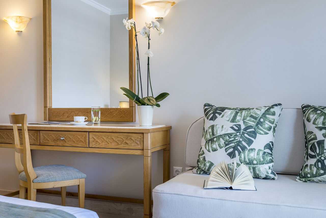 Dubbelrum med balkong eller terrass, vissa med havsutsikt. En dubbelsäng eller två enkelsängar. Möjlighet till extrabädd i bäddsoffa. Wifi, luftkonditionering och deponering ingår. Minibar med vatten, läsk och öl ingår - fylls på varannan dag. Vattenkokare samt kaffe och te. Tv med internationella kanaler. Badrockar och tofflor. Hårtork. Badrum med badkar eller dusch samt wc. Städning 7 ggr/vecka.