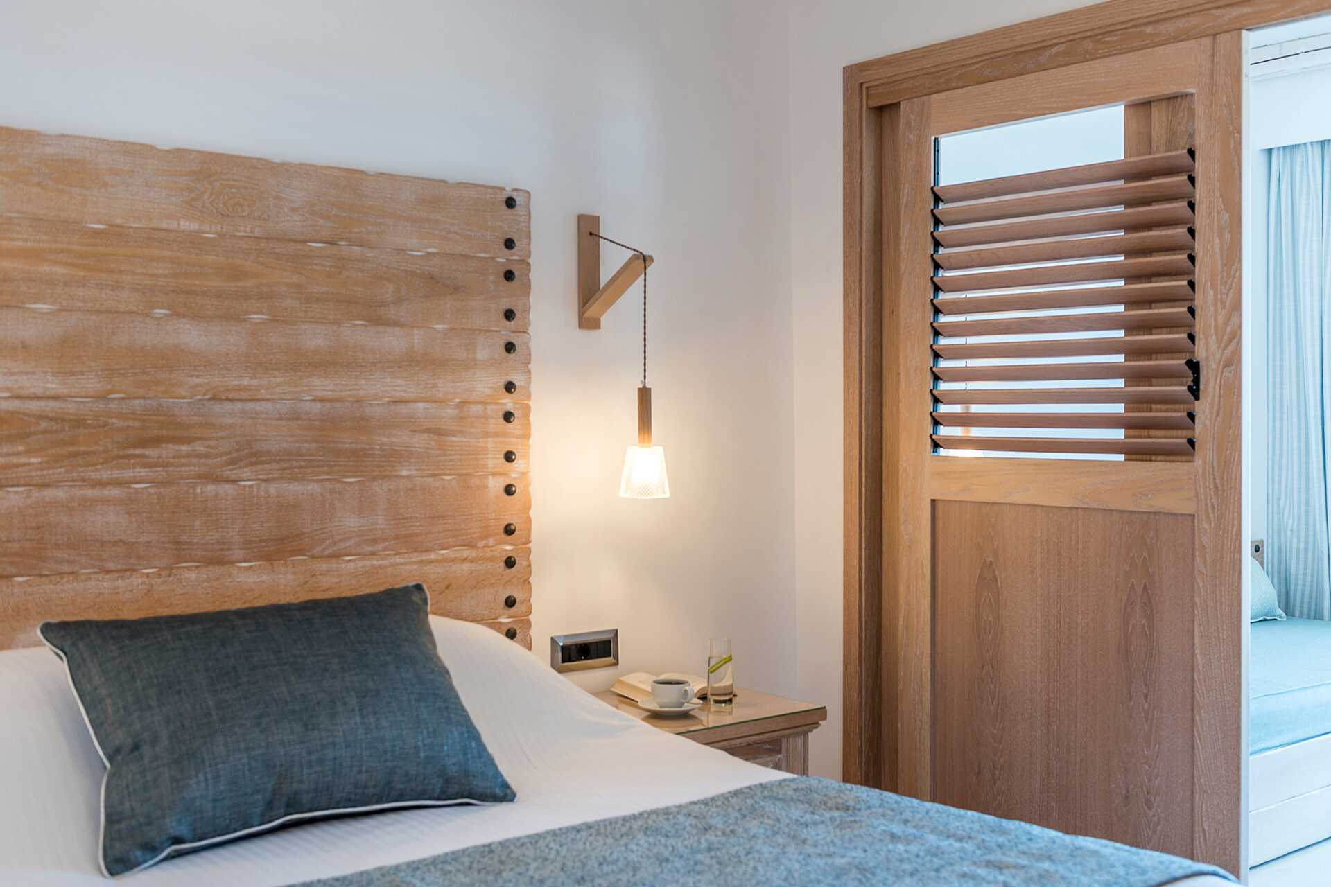 Dubbelrum med balkong eller terrass och havsutsikt. En dubbelsäng eller två enkelsängar. Möjlighet till extrabädd i enkelsäng eller i bäddsoffa. Wifi, luftkonditionering och deponering ingår. Minibar - vatten och läsk ingår och fylls på varannan dag. Vattenkokare samt kaffe och te. Tv med internationella kanaler. Badrockar och tofflor. Hårtork. Badrum med badkar och wc. Städning 7 ggr/vecka. Barn under två år räknas in i maxantalet personer i rummet.